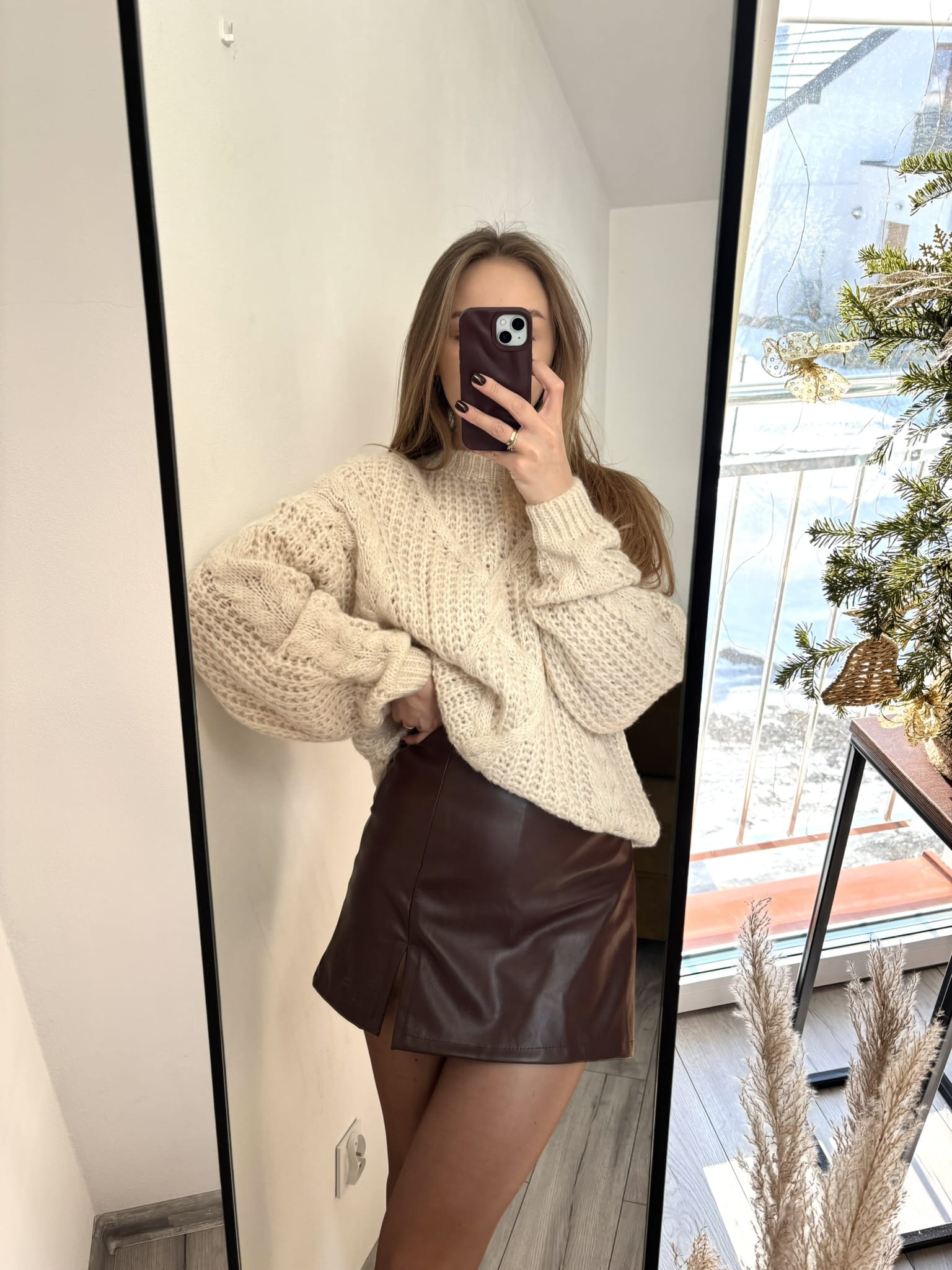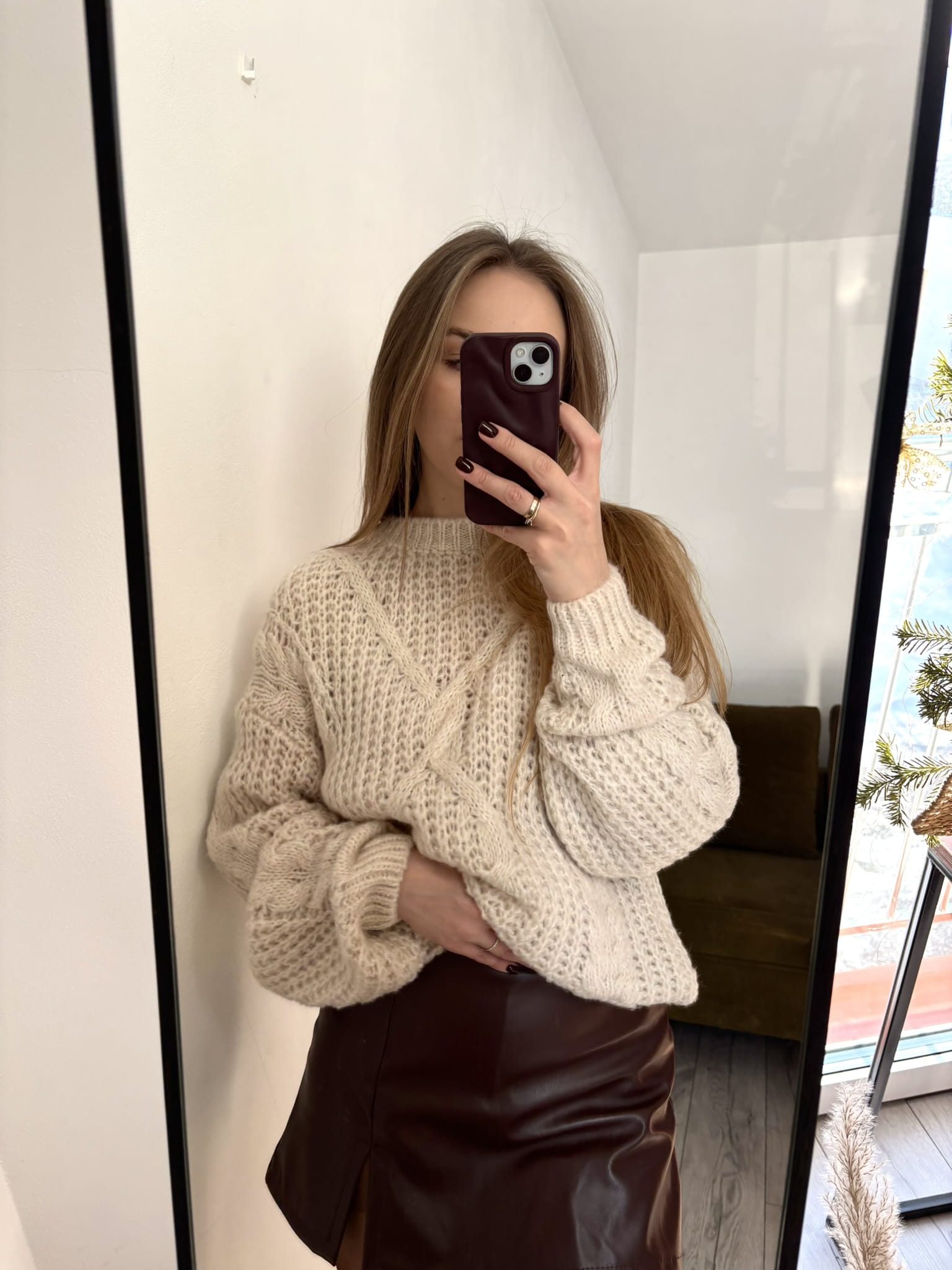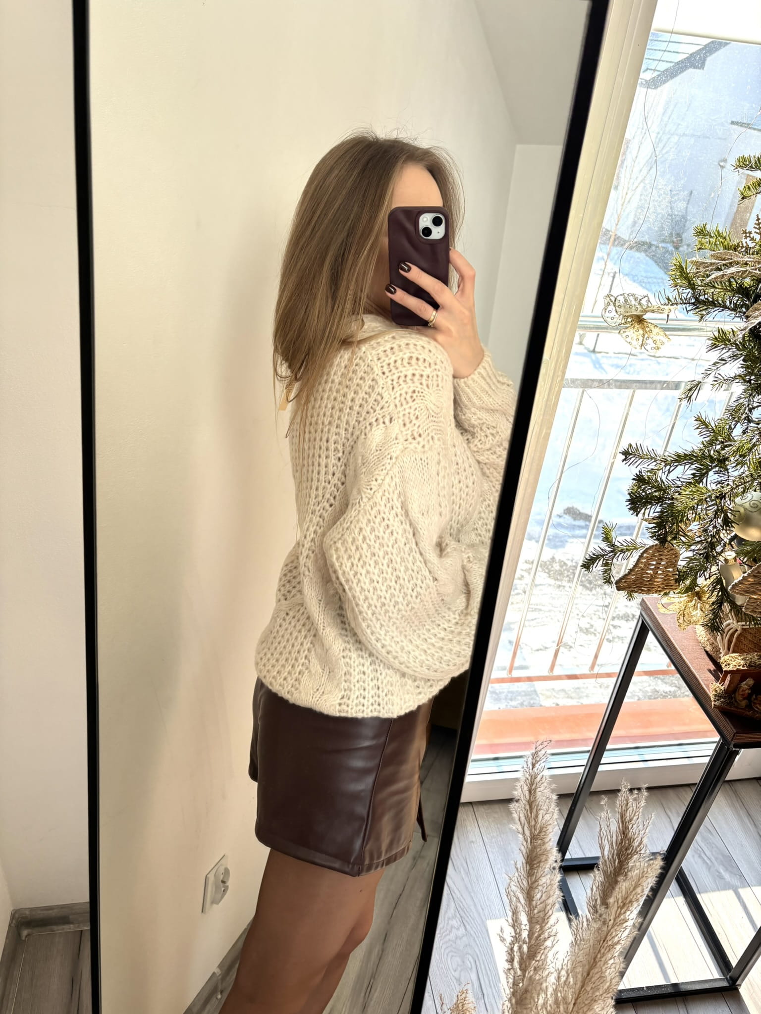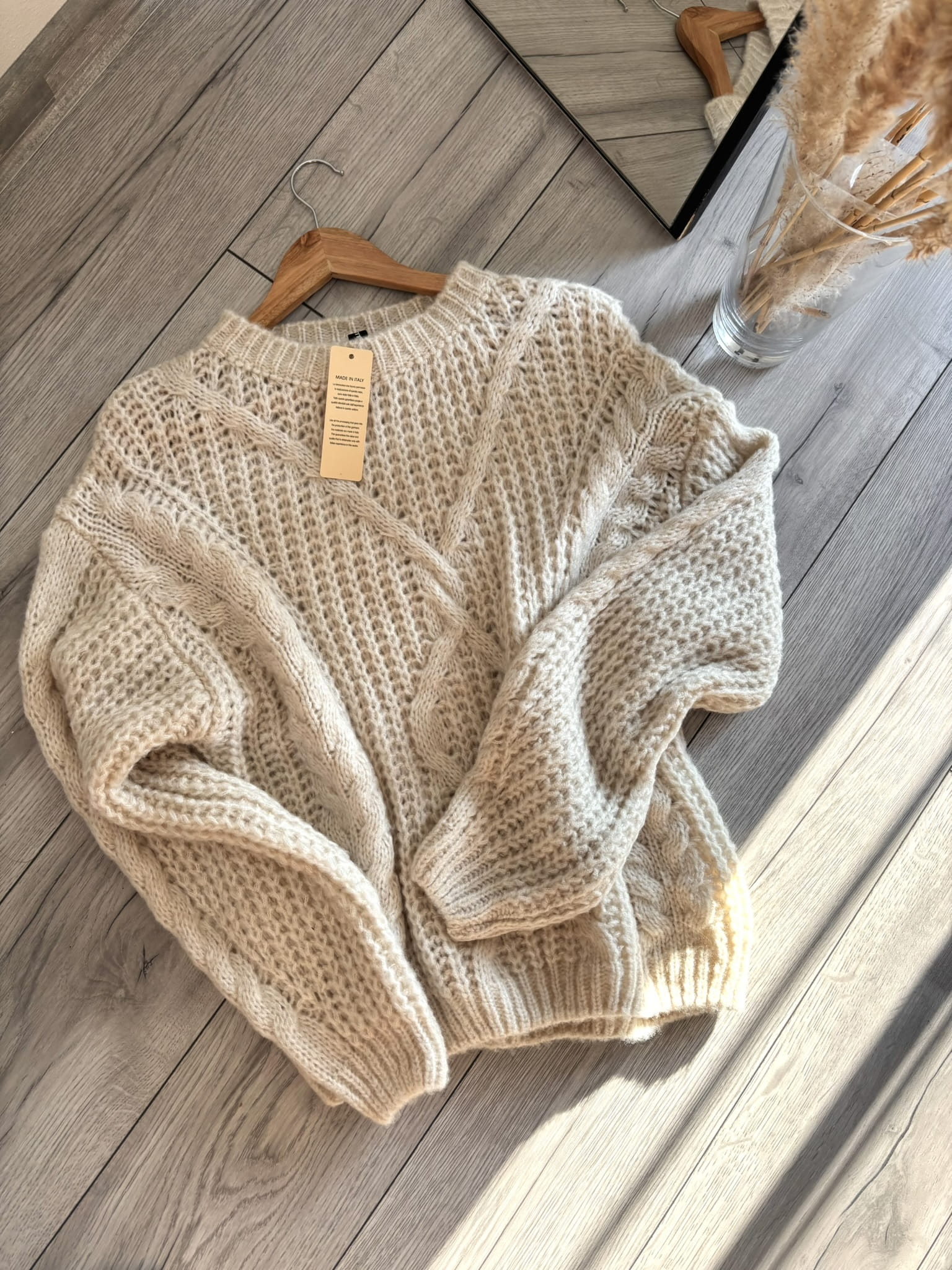 Beżowo kremowy sweter w warkocze New Collection w rozmiarze uniwersalnym, oversize