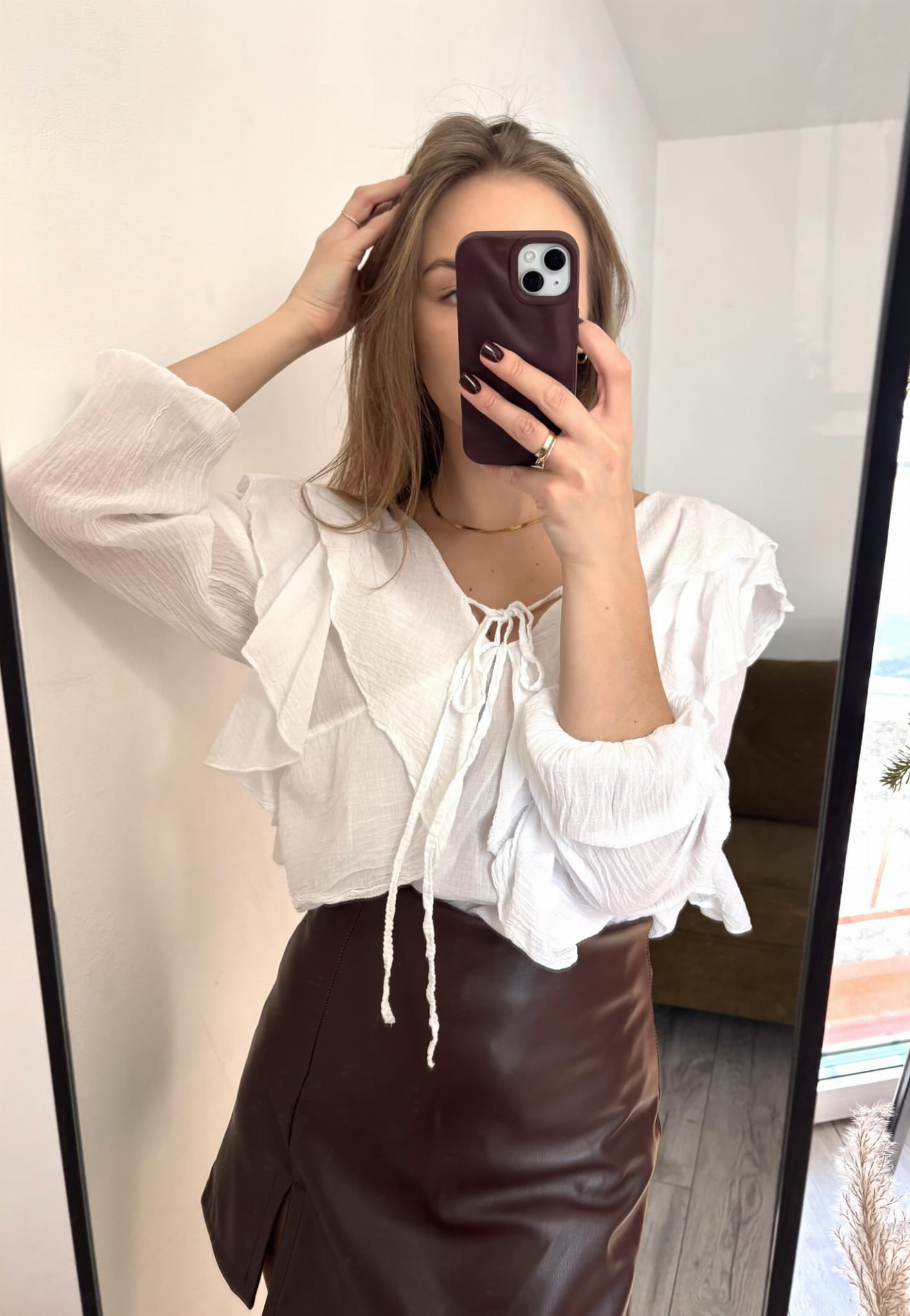 Biała, bawełniana koszula z falbankami Milady New Collection
