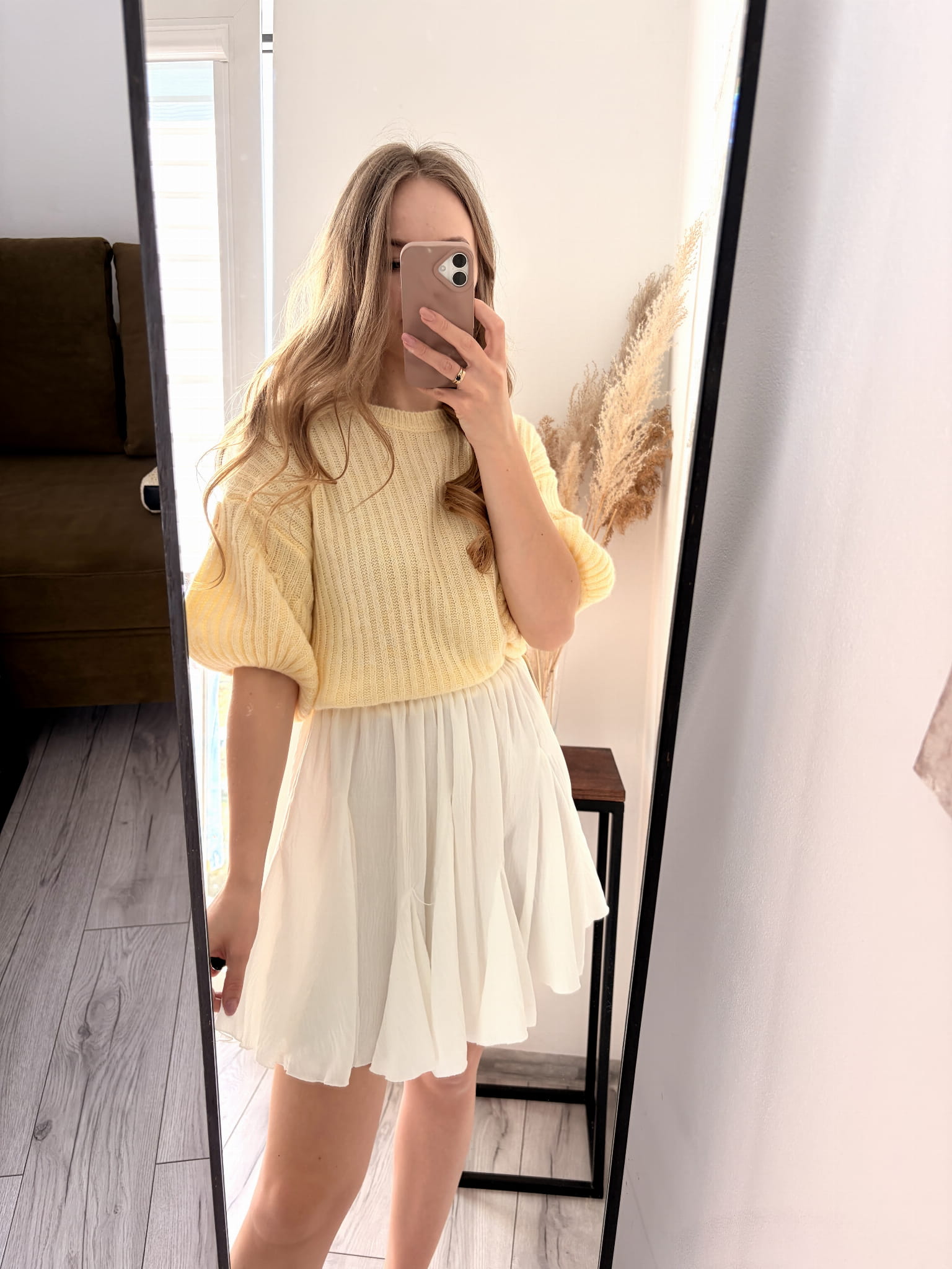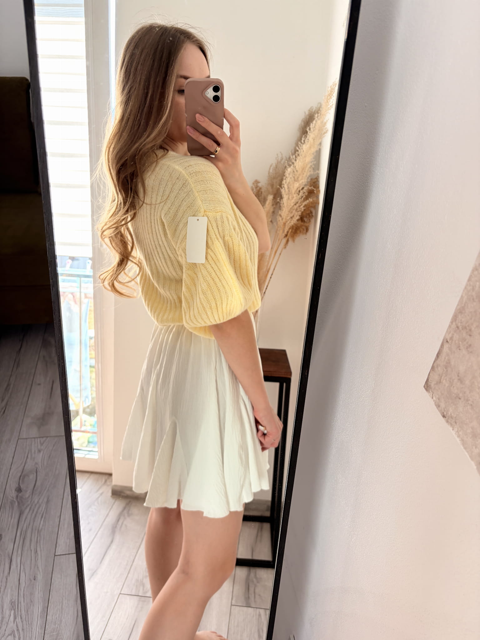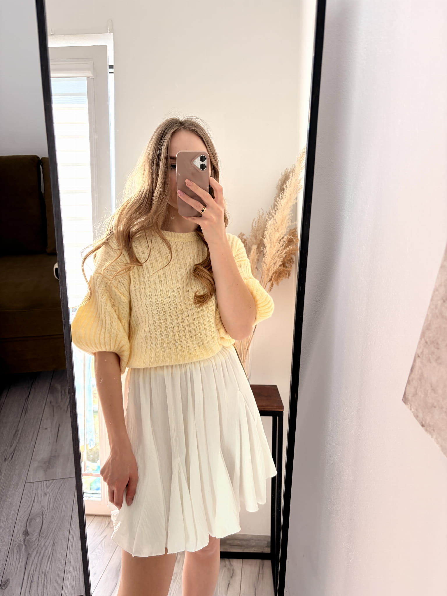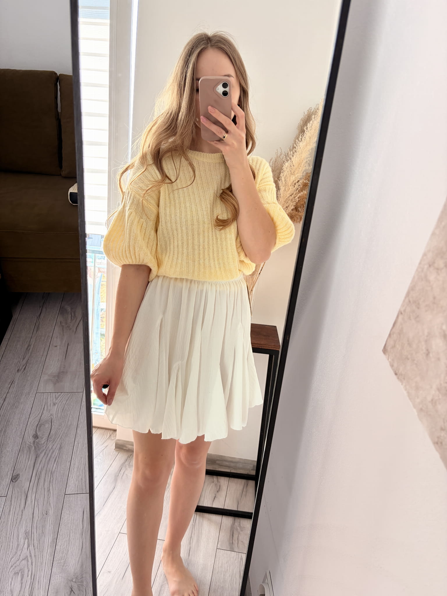 Biała, wiosenna krótka spódnica z falbankami, rozkloszowana, rozmiar uniwersalny