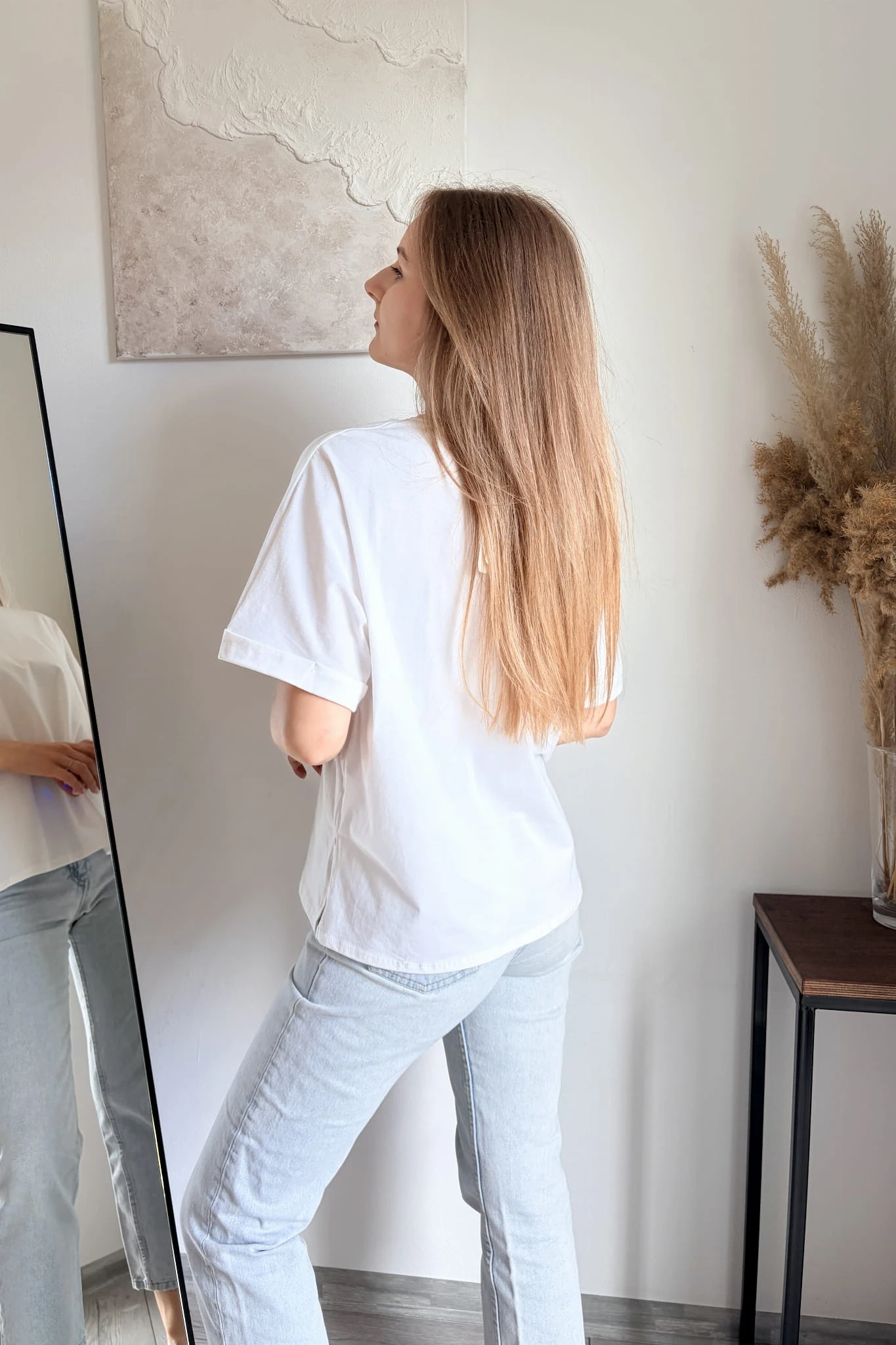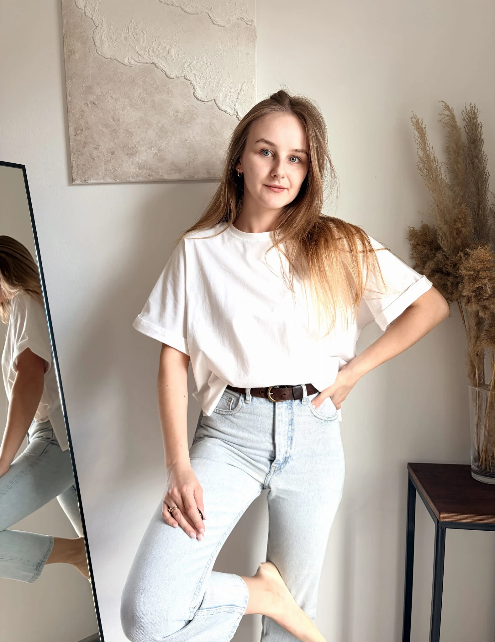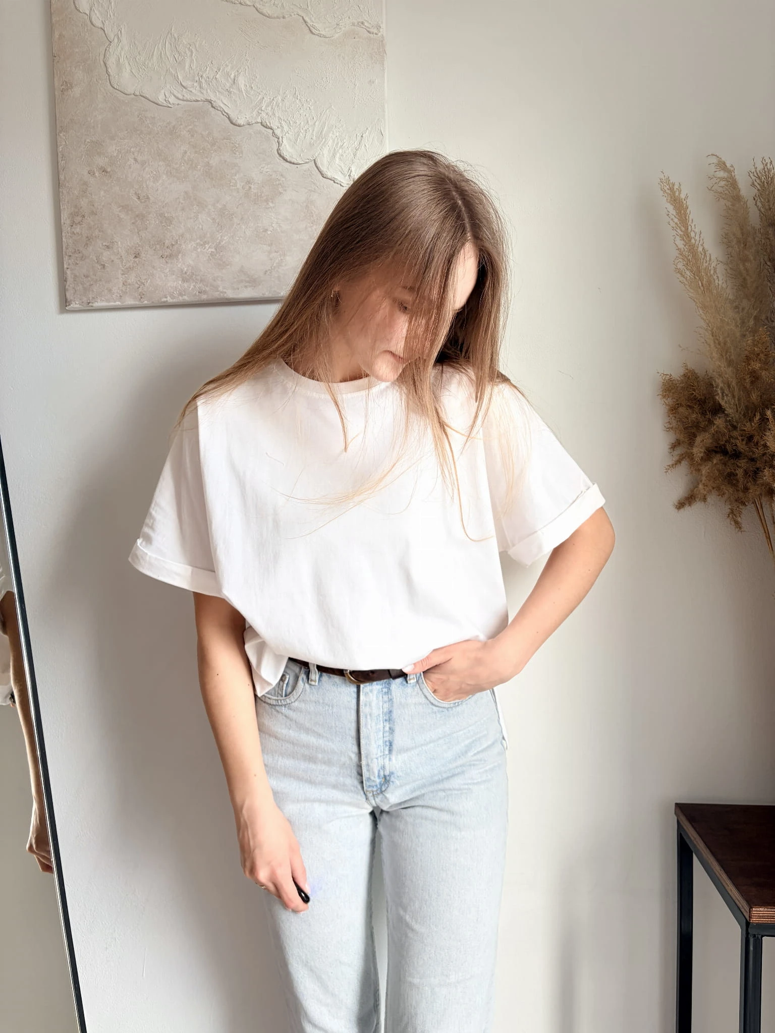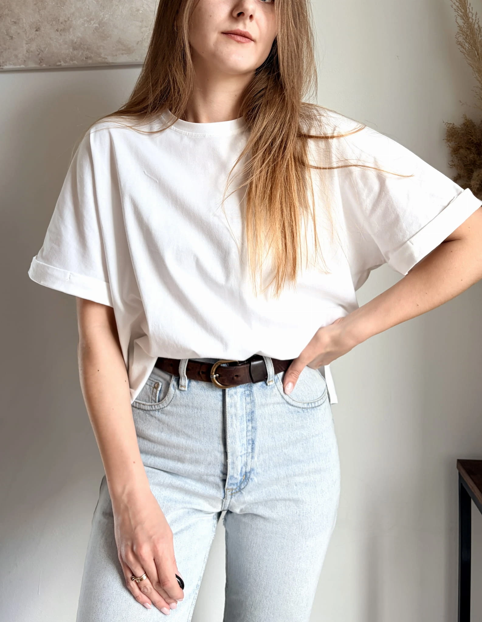 Biały, bawełniany T-shirt oversize, gładki, Azara, rozmiar uniwersalny