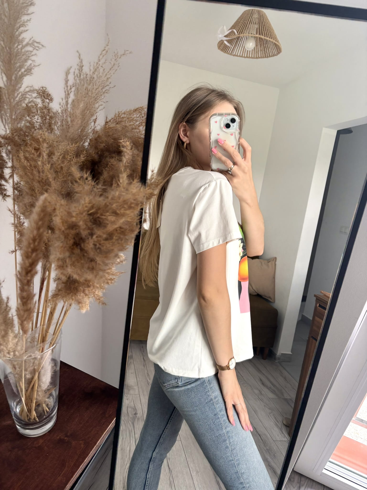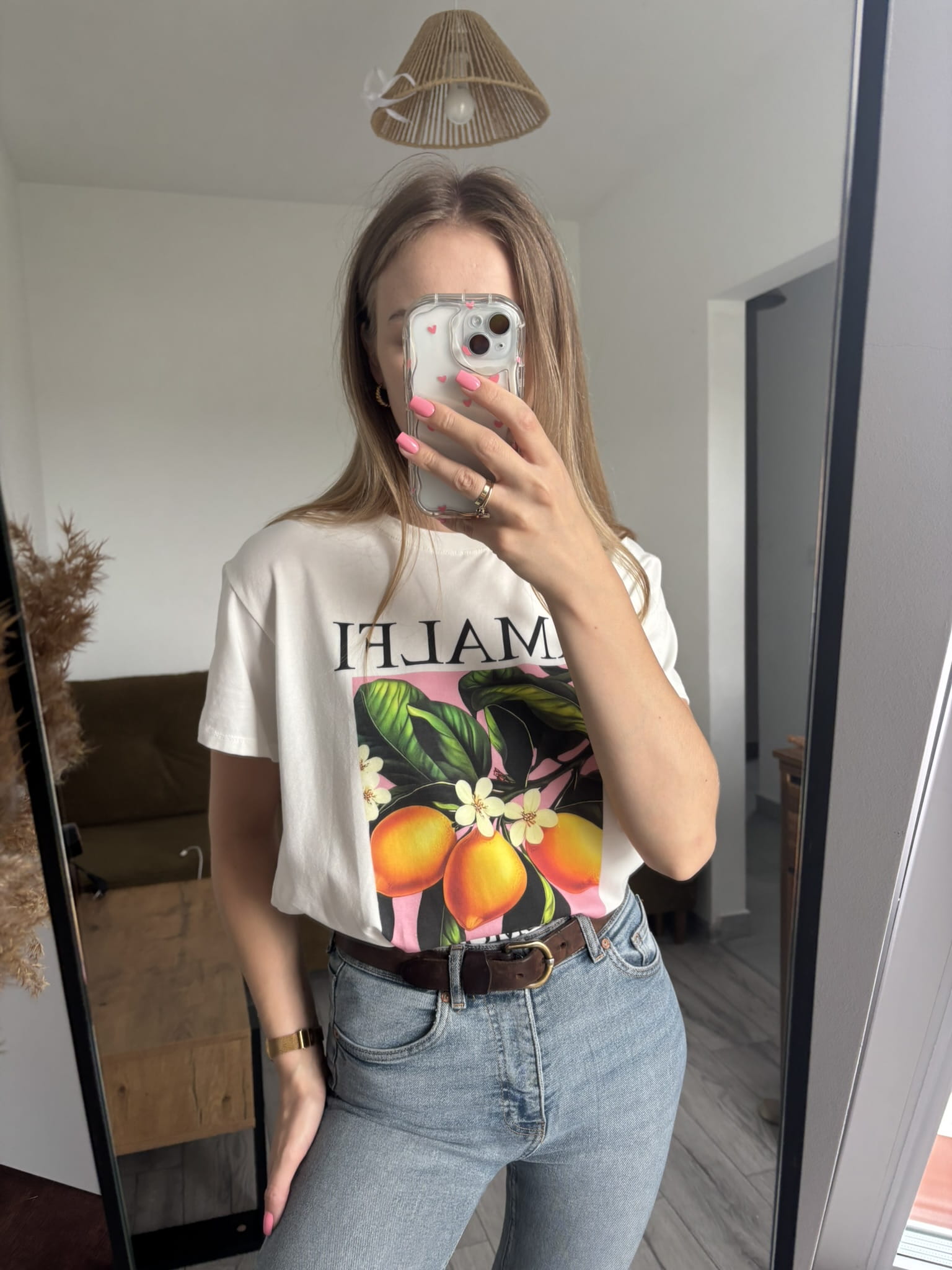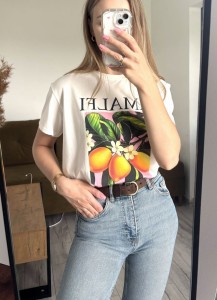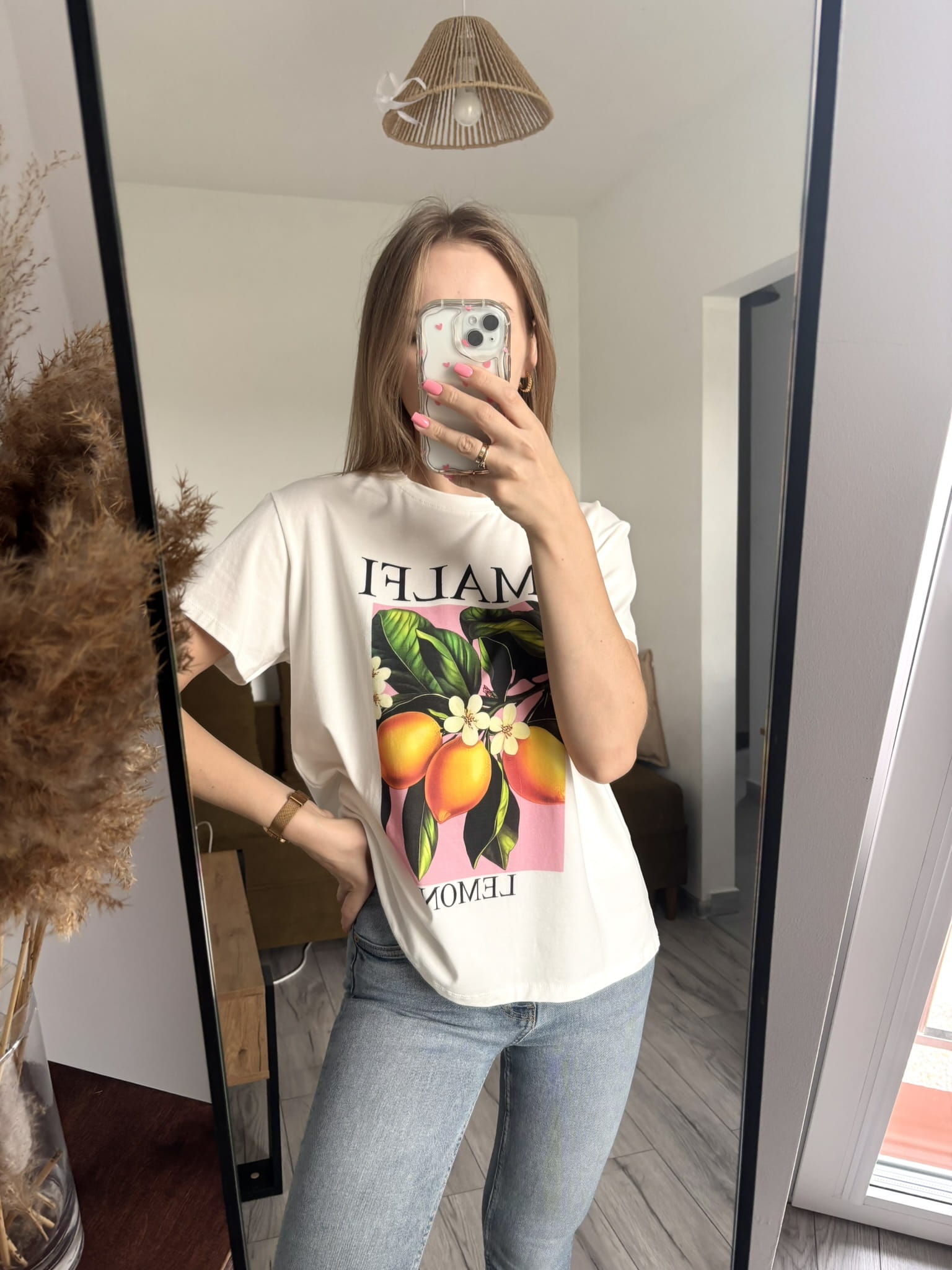 Biały T-shirt w cytrynki z napisem Amalfi Lemon. Rozmiar uniwersalny.