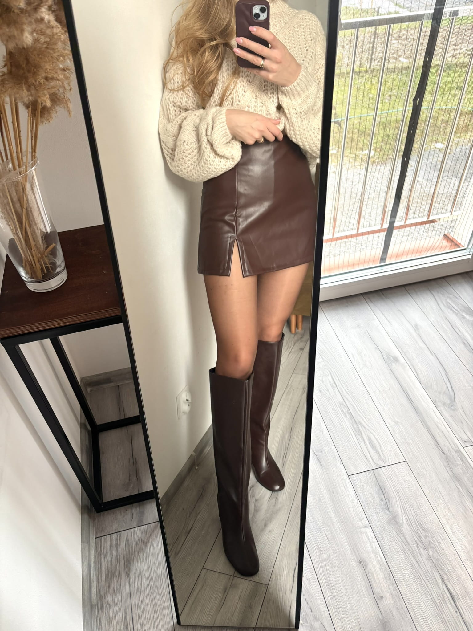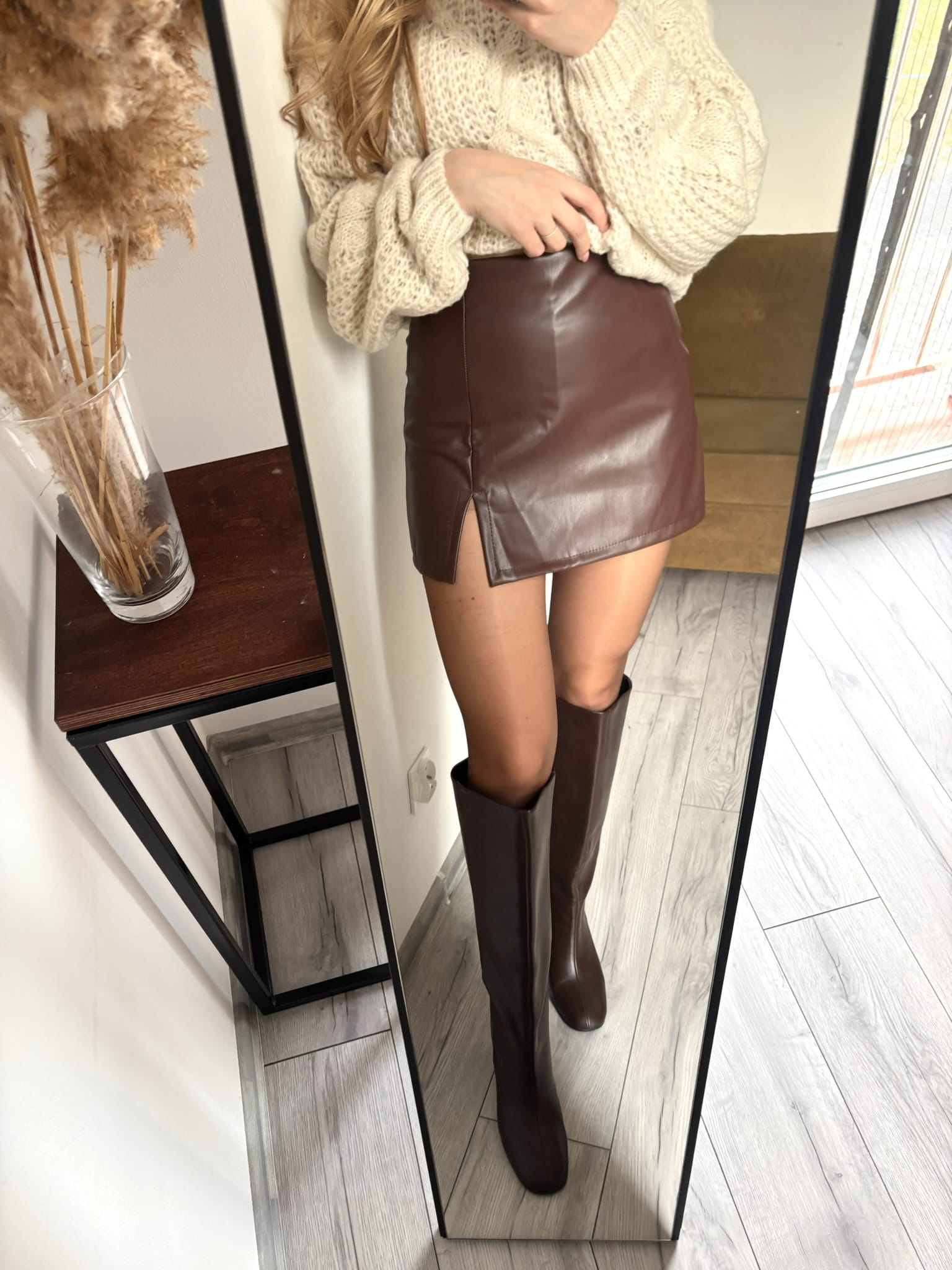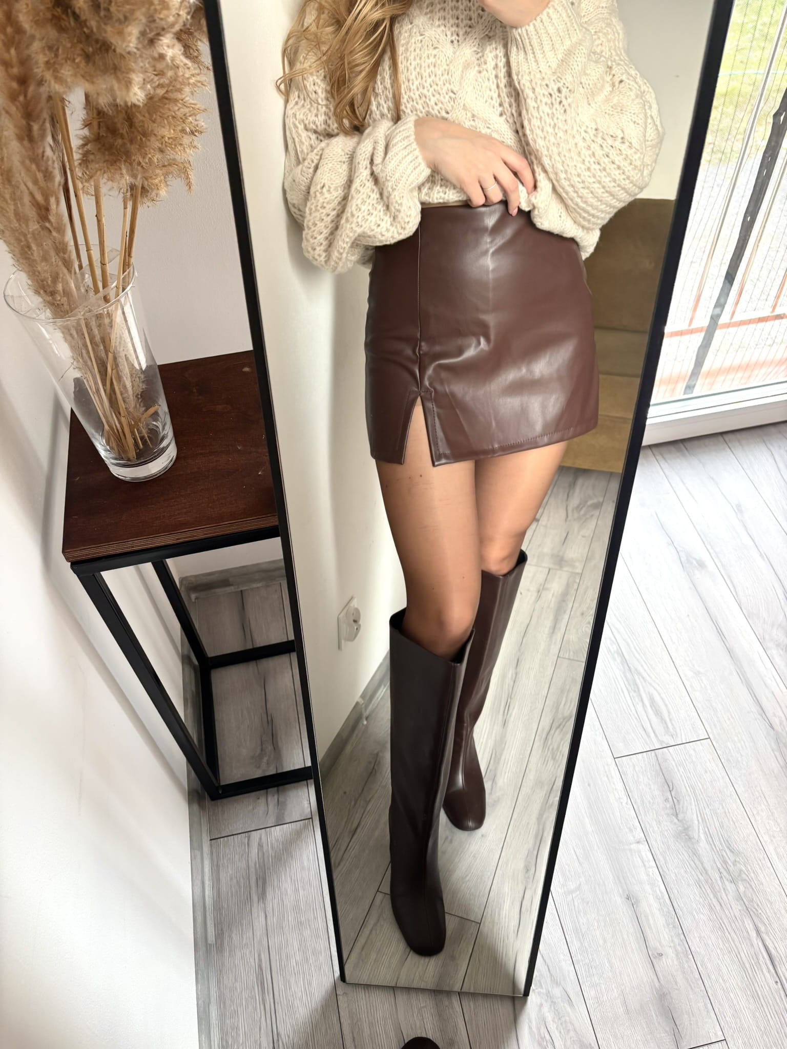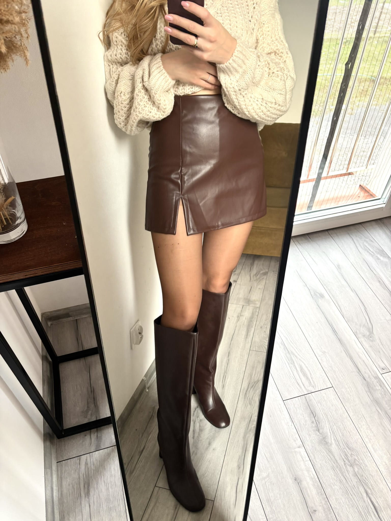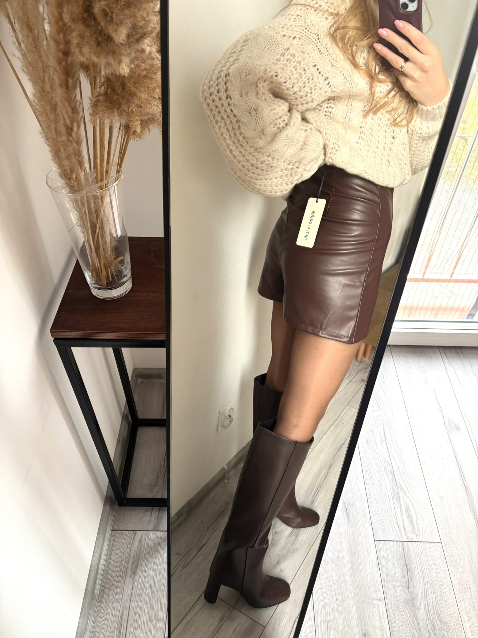 Brązowe skórzane spódnico-spodenki z wysokim stanem i rozporkiem, Styled in Italy