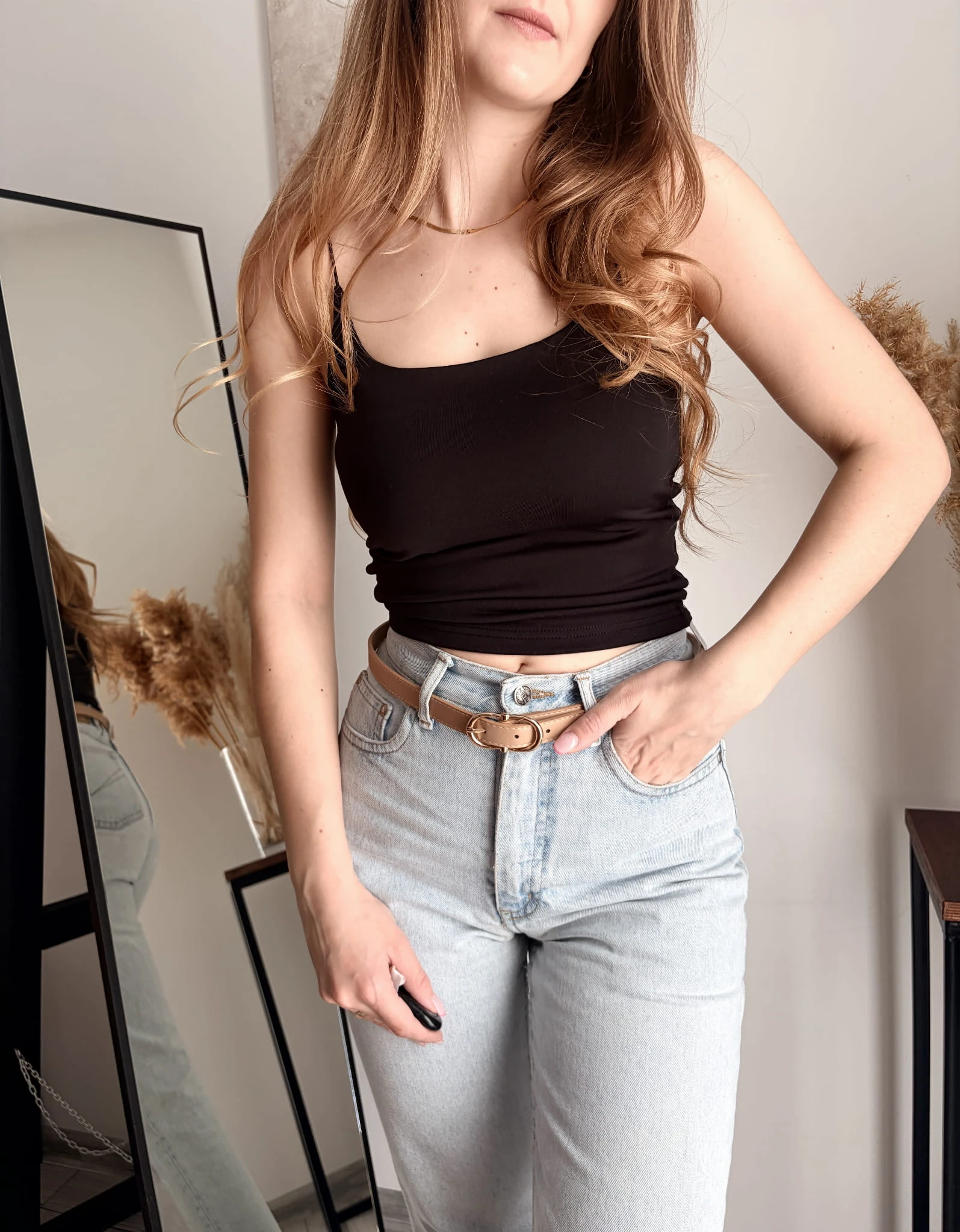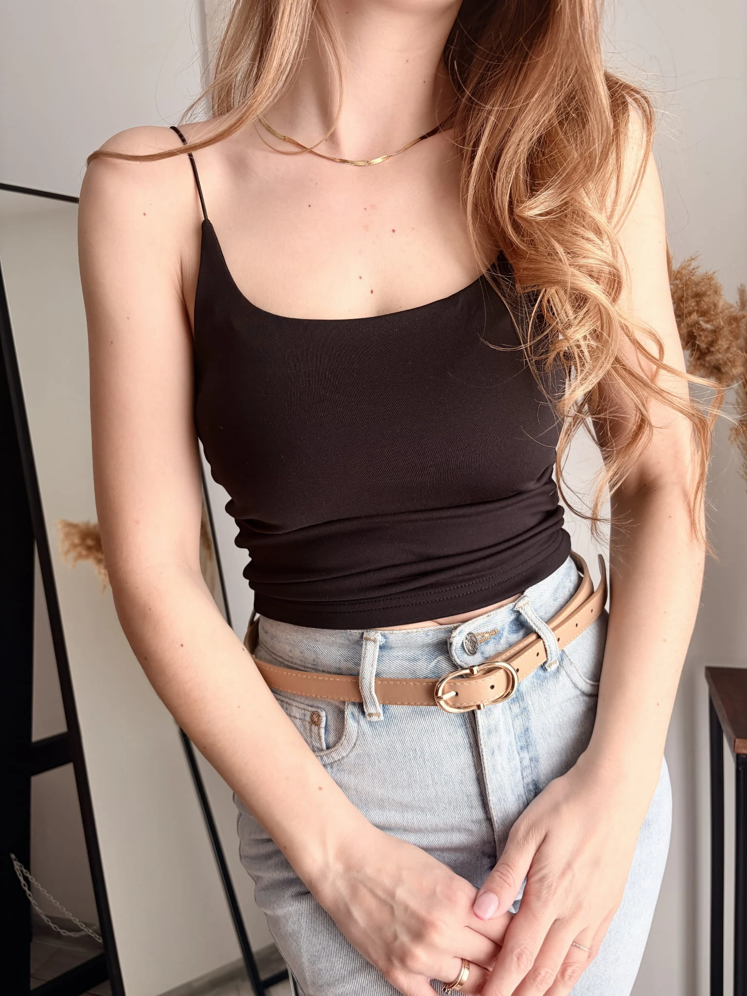 Czarny, klasyczny top na ramiączkach Mojo, rozmiar uniwersalny