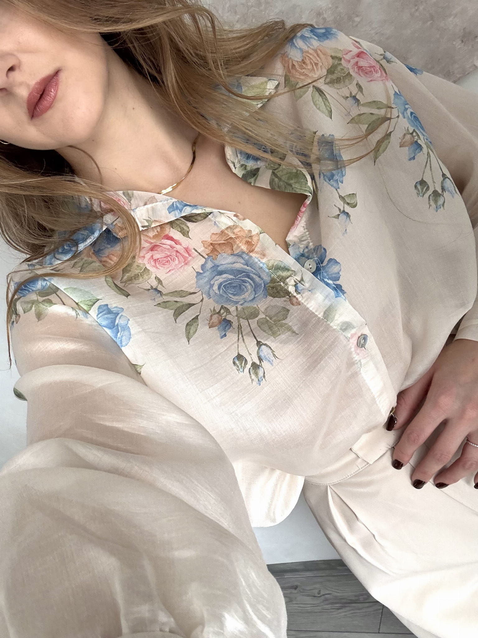 Delikatna koszula wiosenna w niebieskie kwiaty New Collection rozmiar uniwersalny.