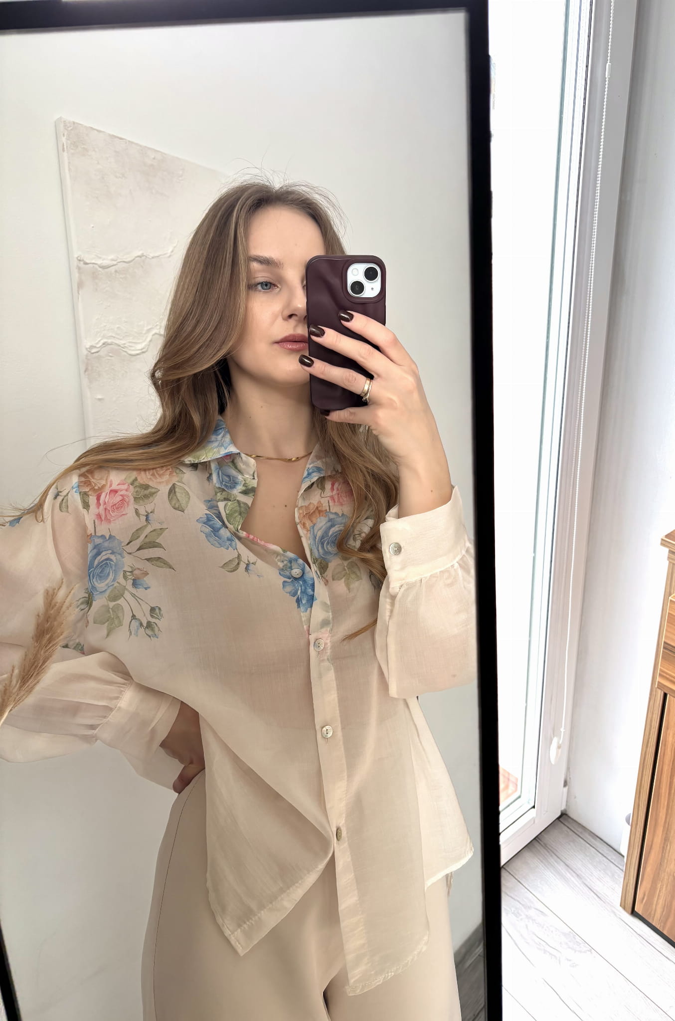 Delikatna koszula wiosenna w niebieskie kwiaty New Collection rozmiar uniwersalny