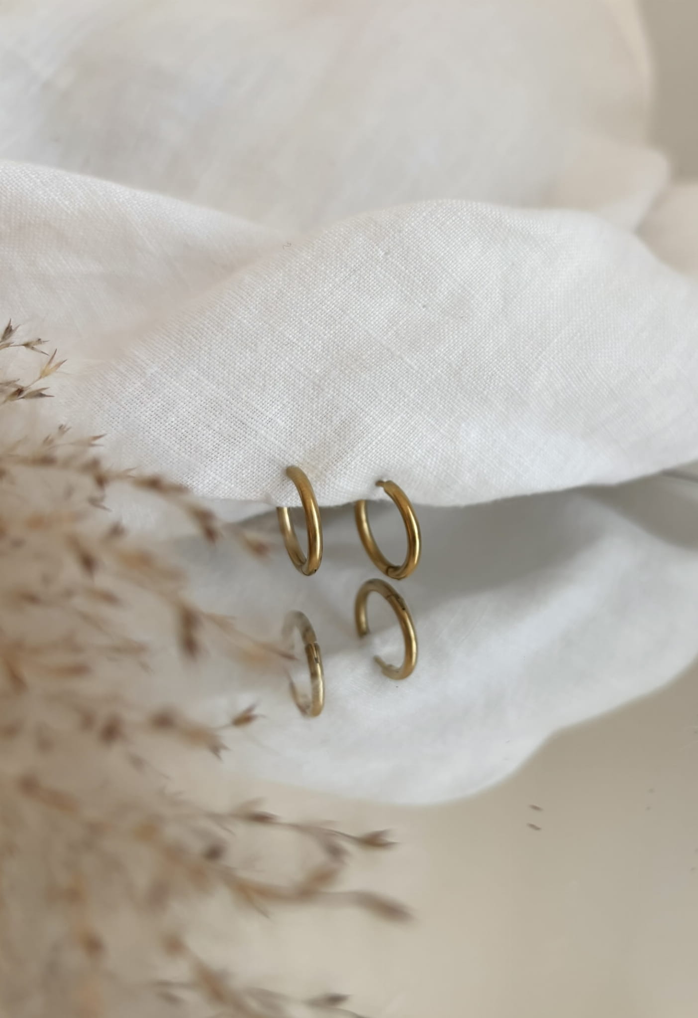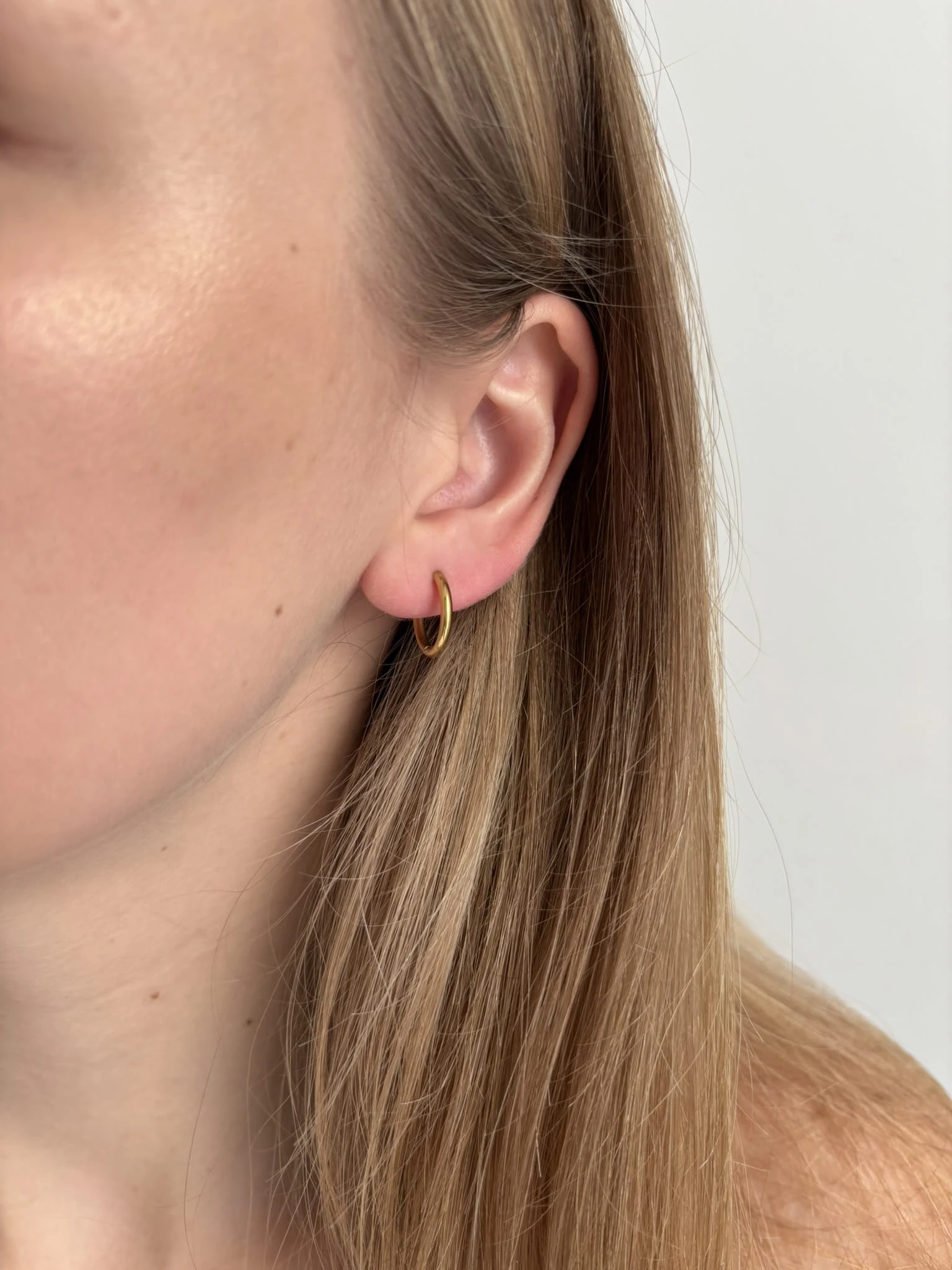 Delikatne kolczyki koła w złotym kolorze wykonane ze stali chirurgicznej.