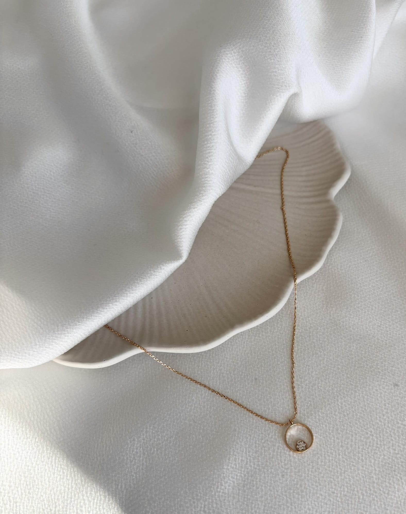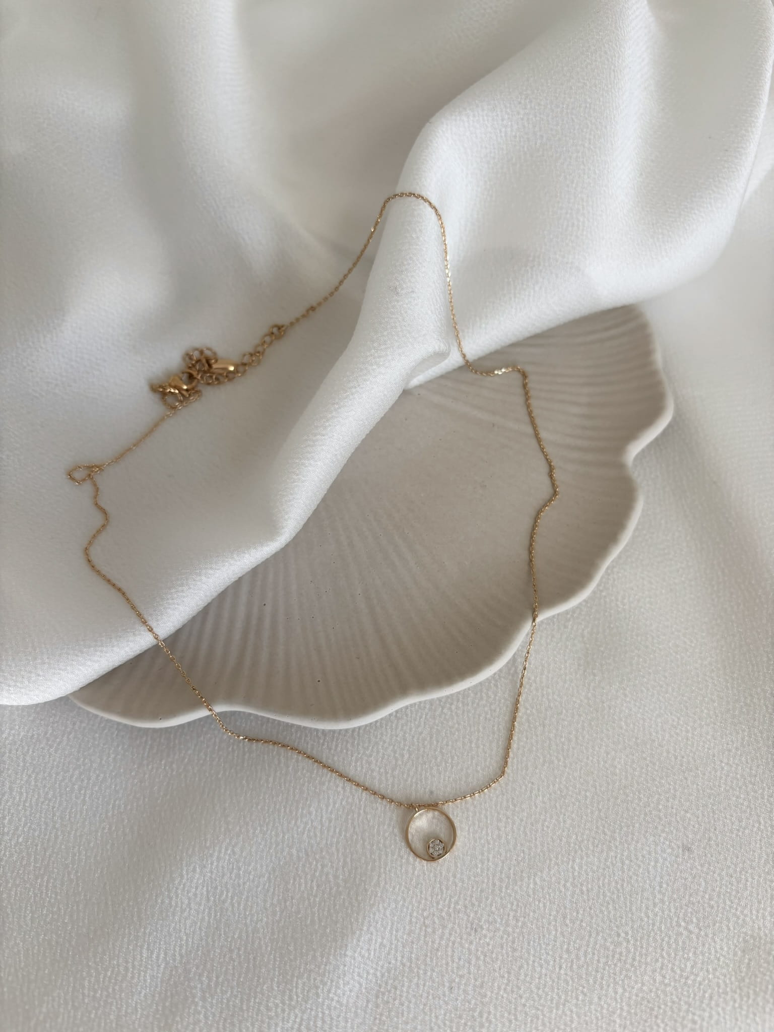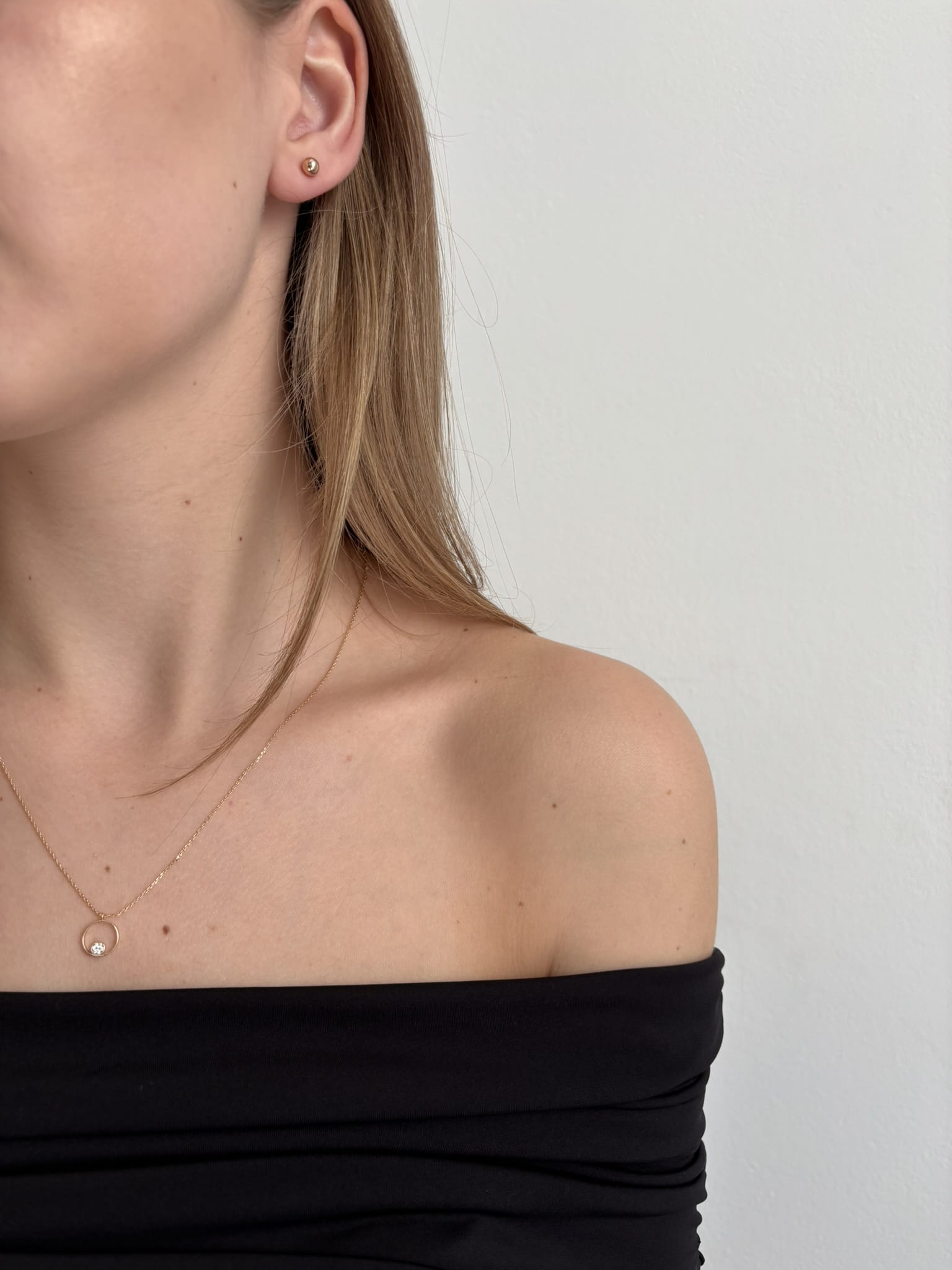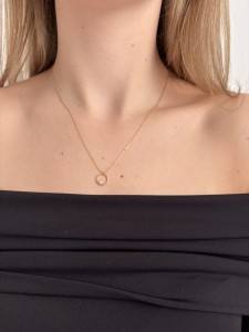 Delikatny naszyjnik w kolorze różowego złota wykonany ze stali chirurgicznej z ozdobnym kółeczkiem.