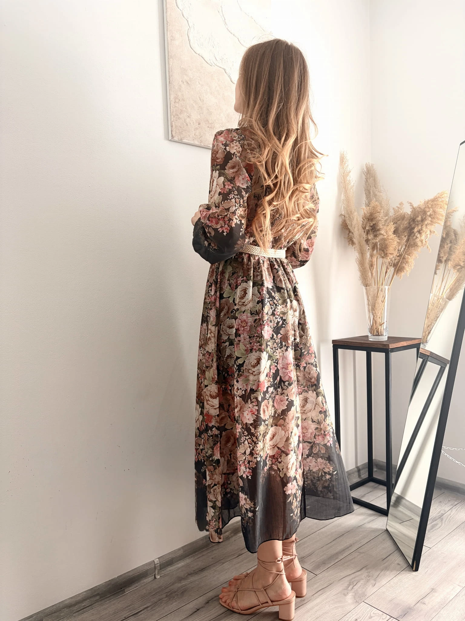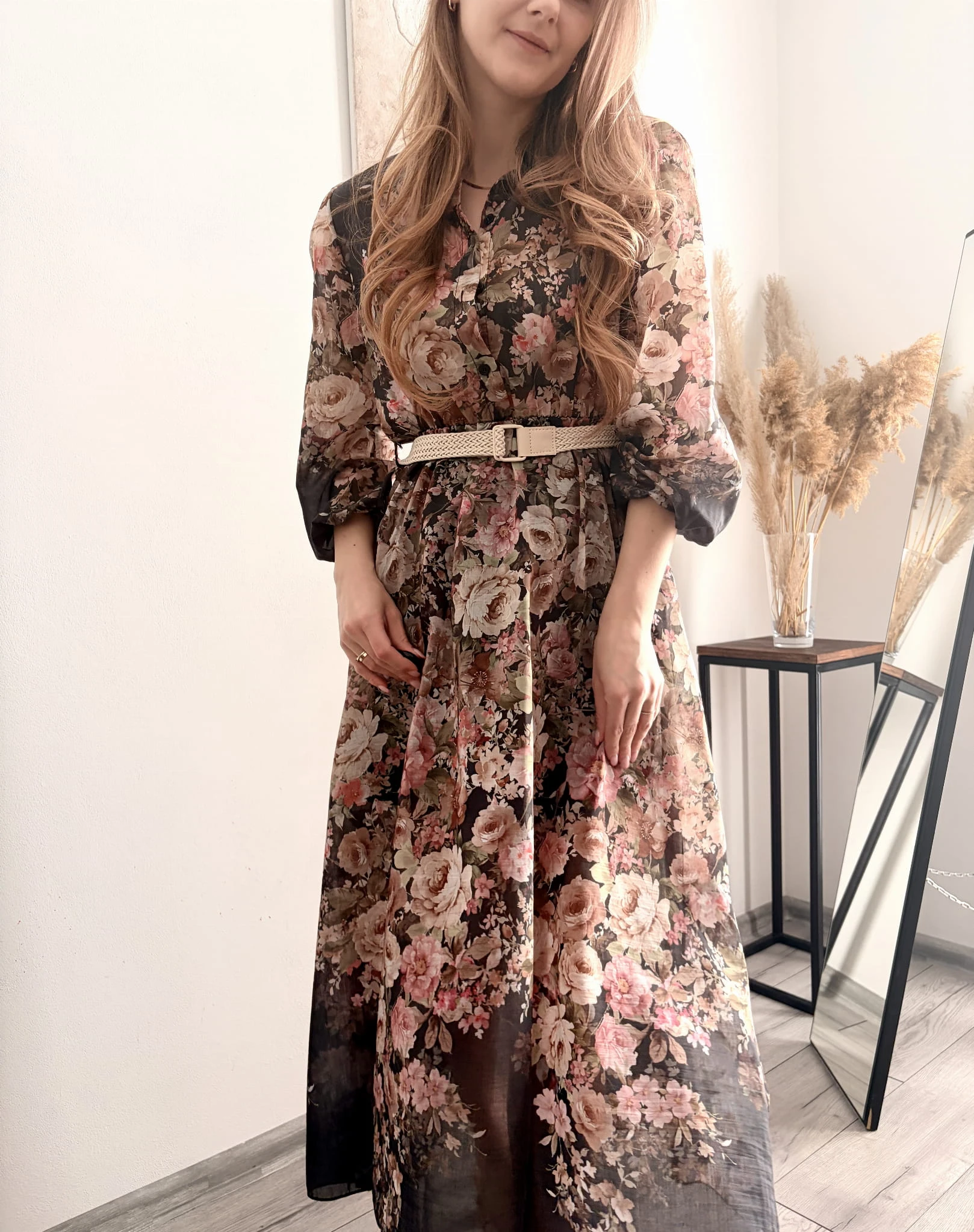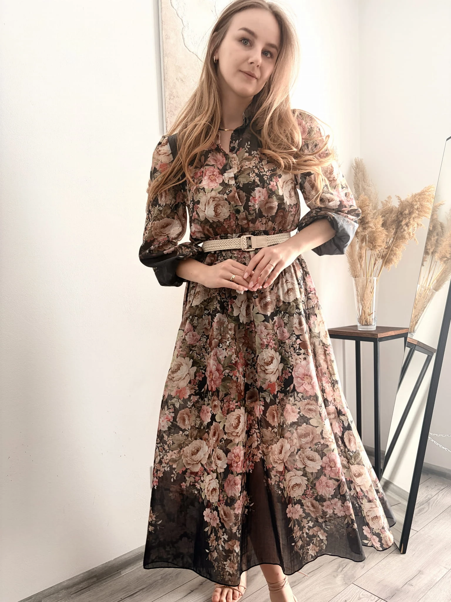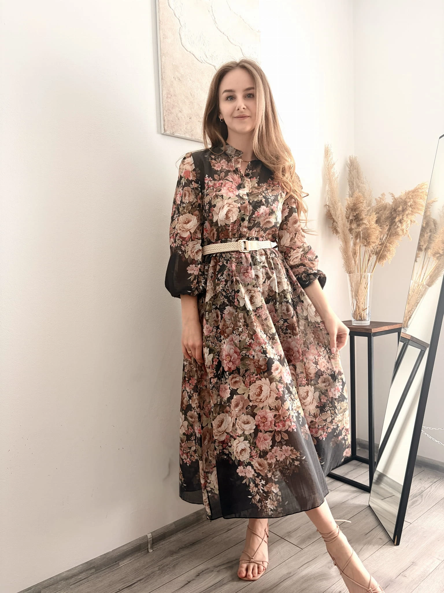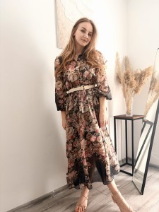 Elegancka sukienka w kwiaty midi na komunię chrzciny New Collection rozmiar uniwersalny