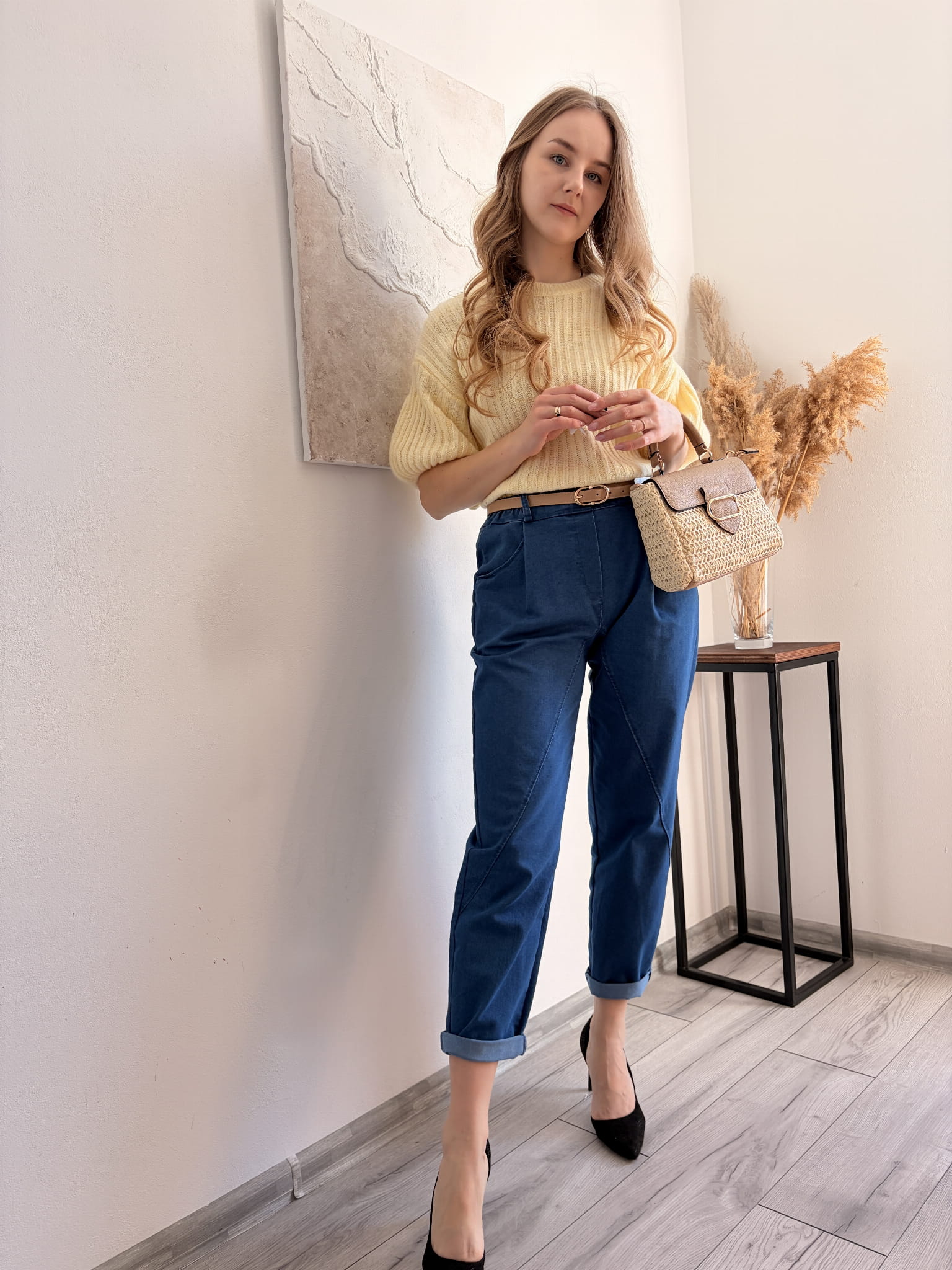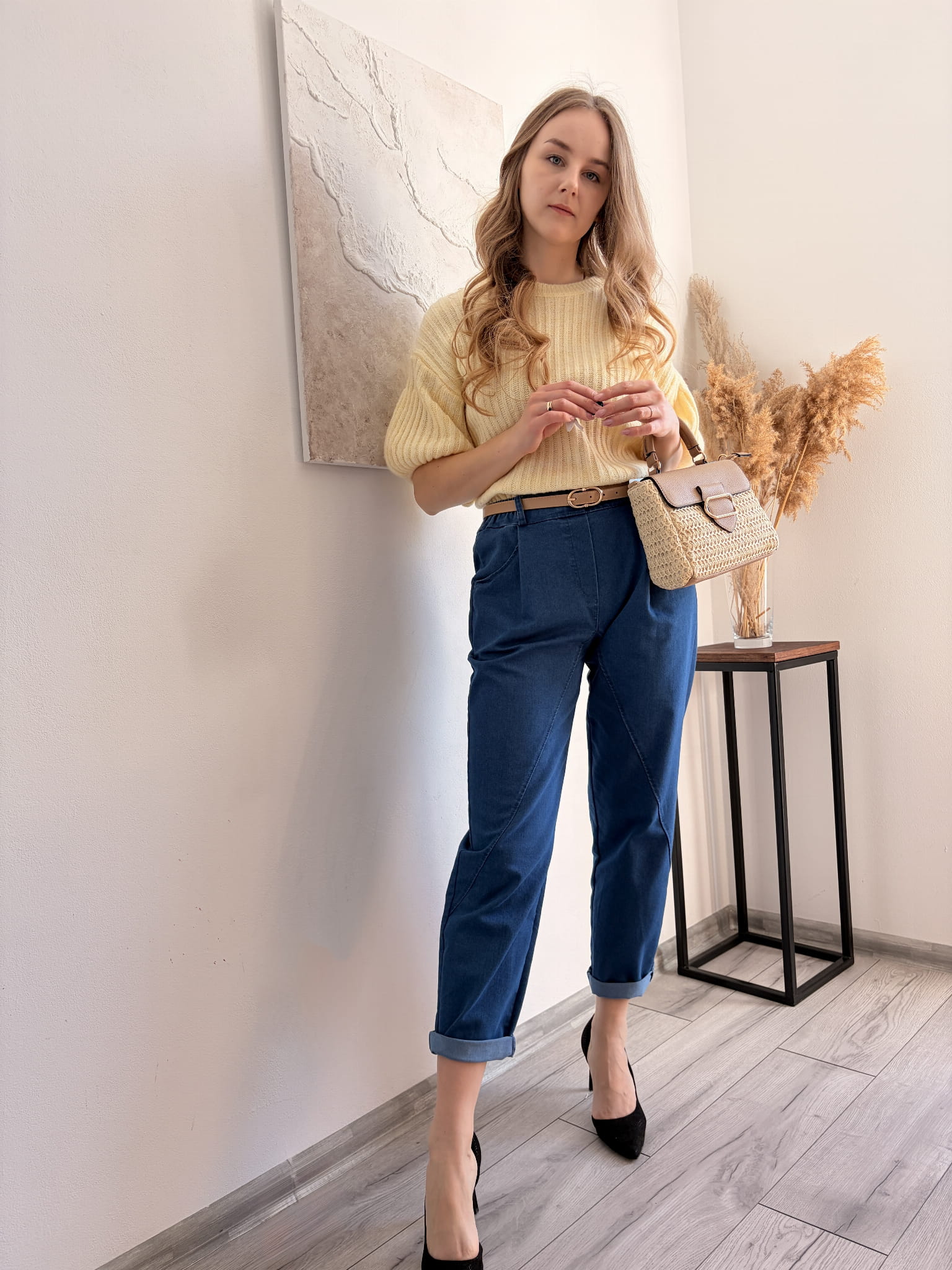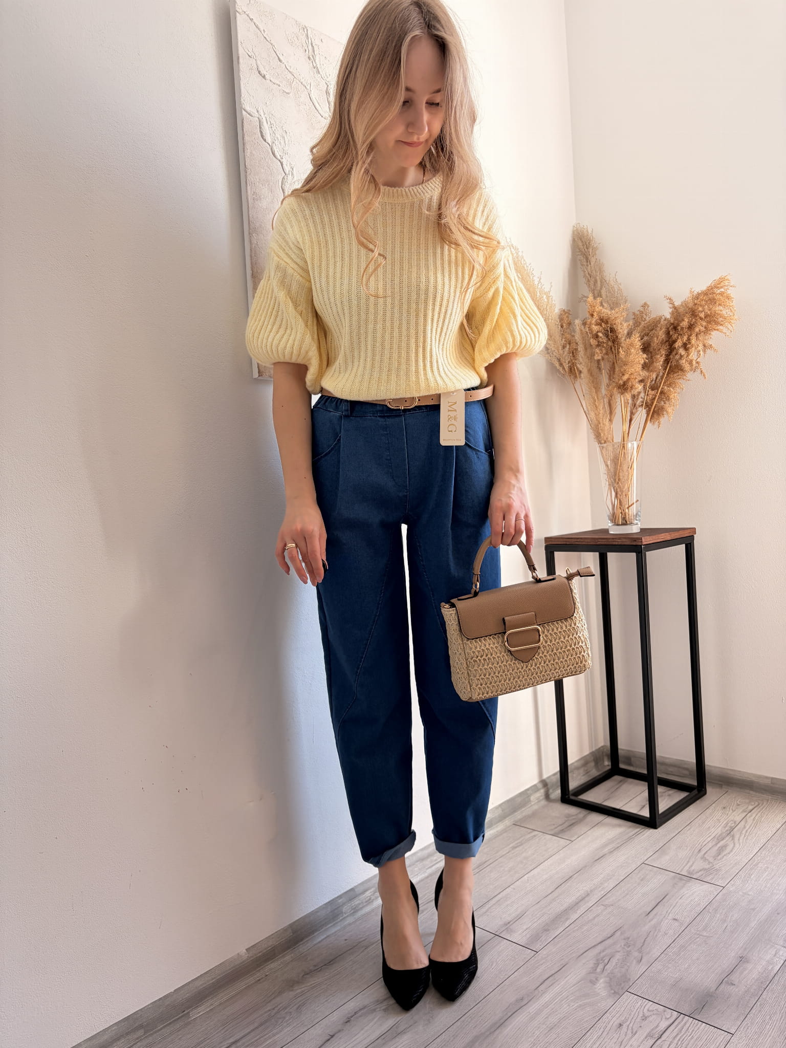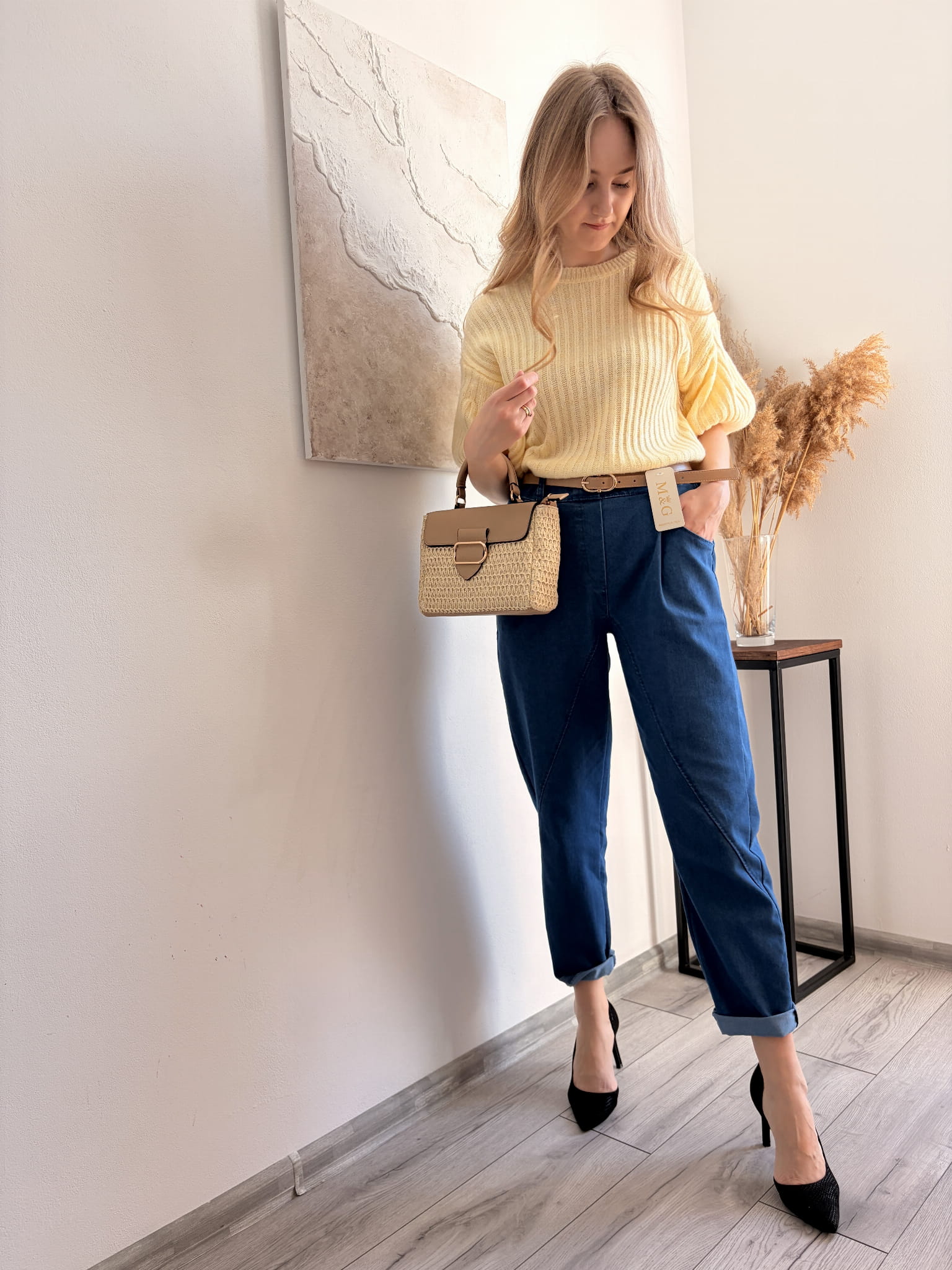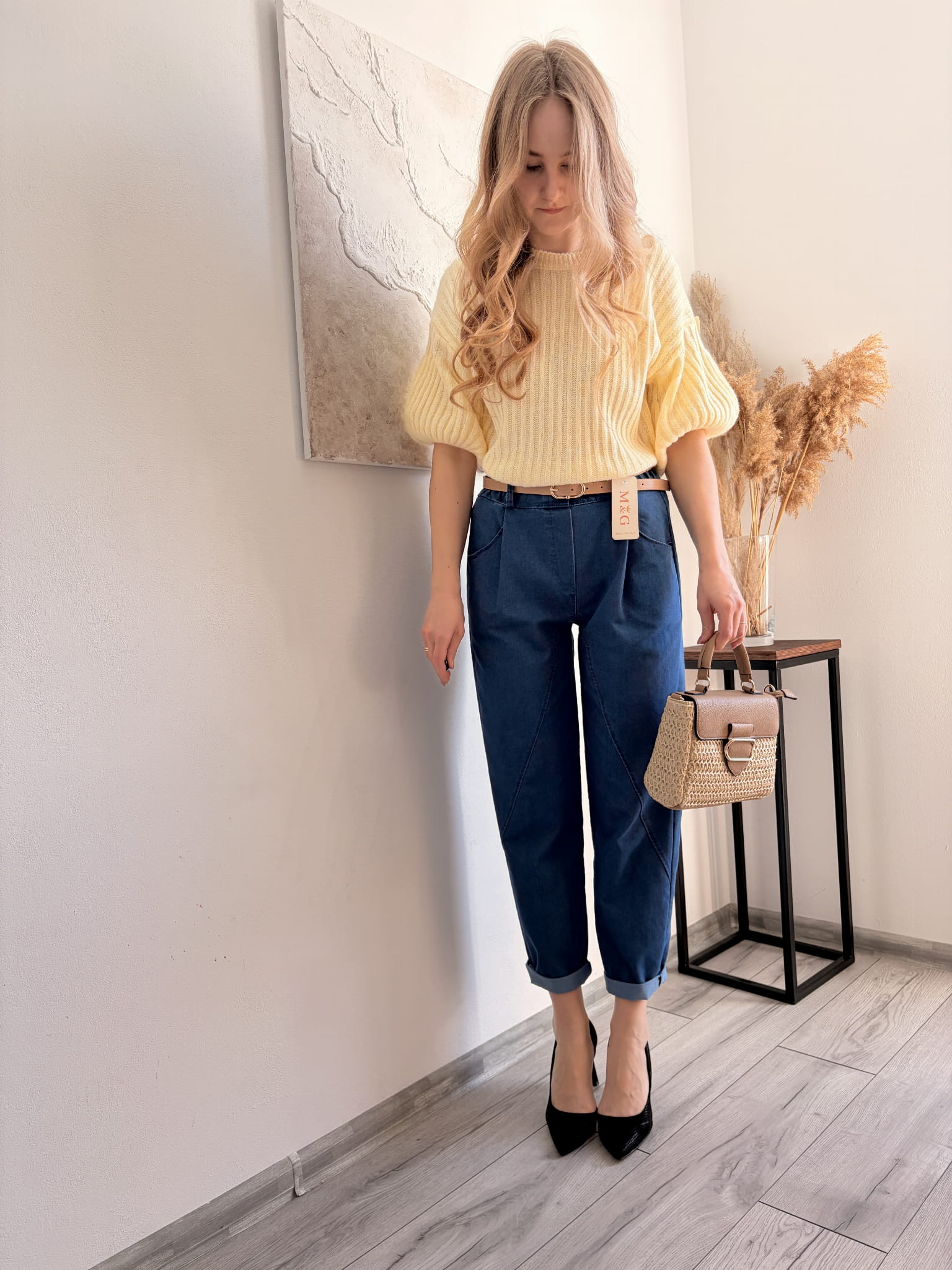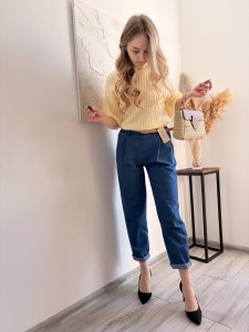 Granatowe spodnie w kroju mommy jeans M&G, rozmiar uniwersalny