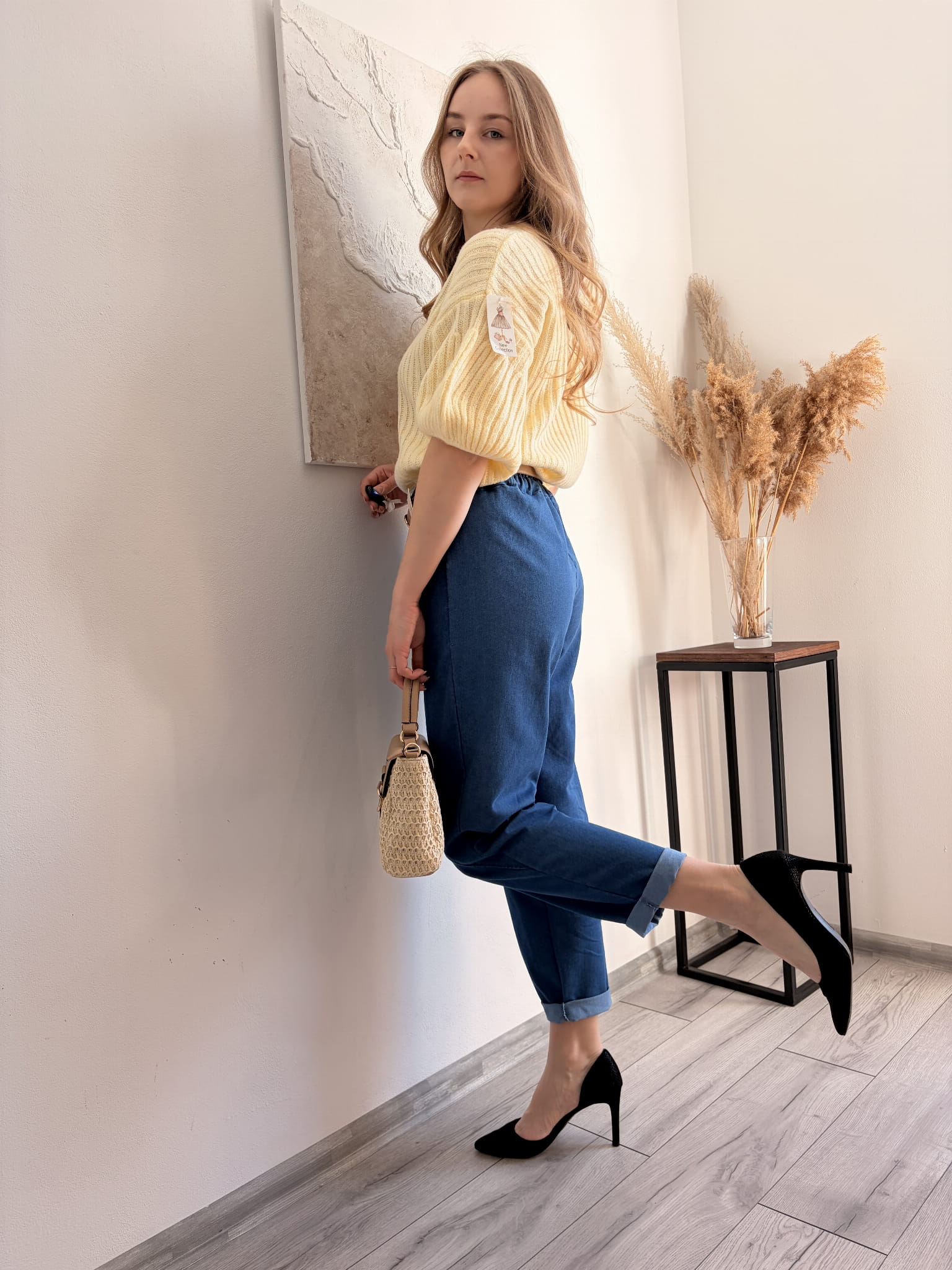 Modelka ma 171cm wzrostu i nosi rozmiar XS/S.