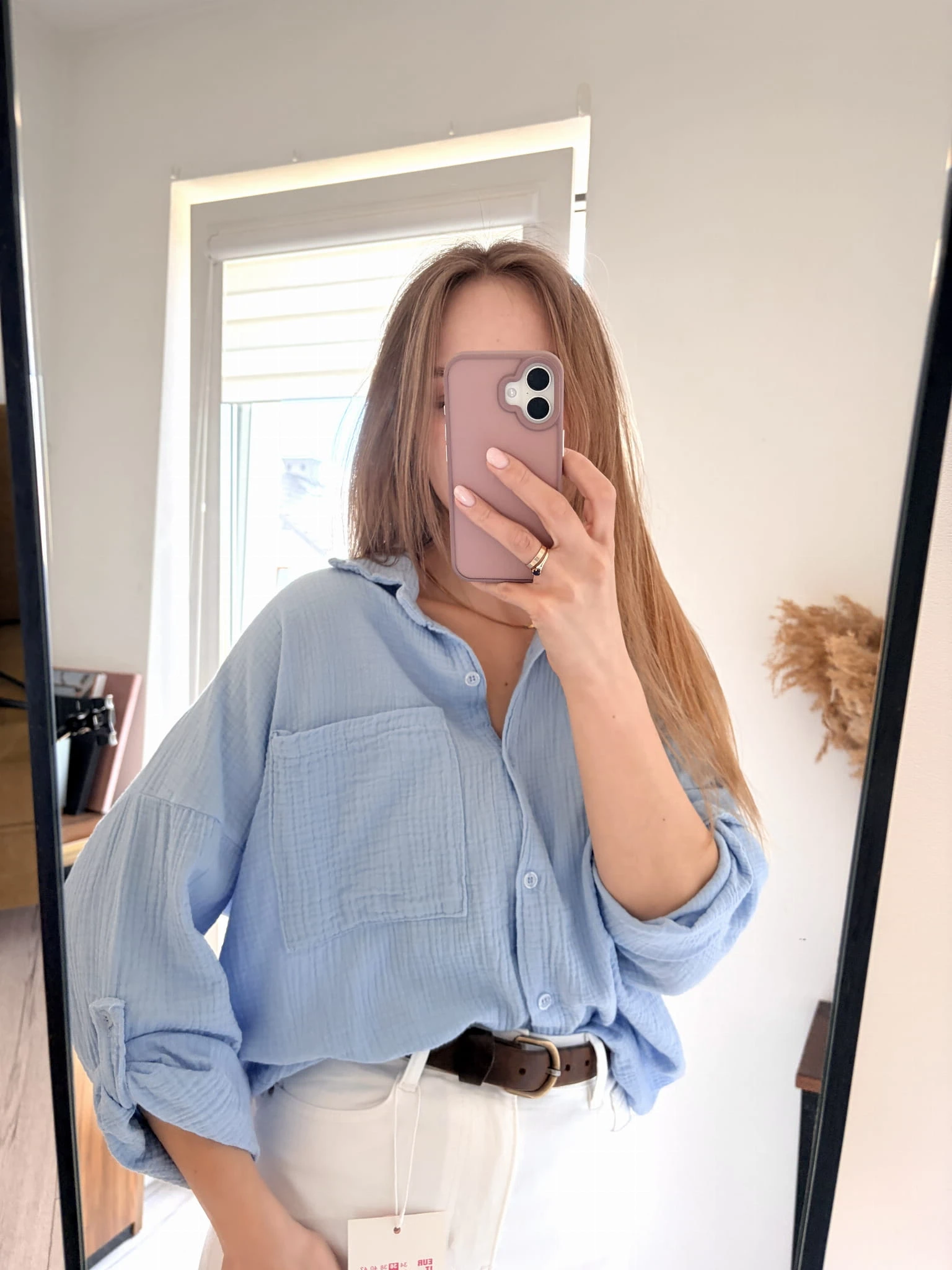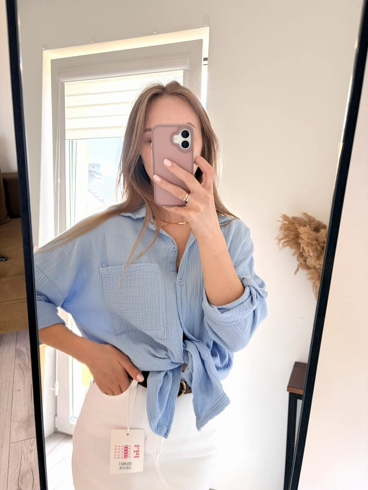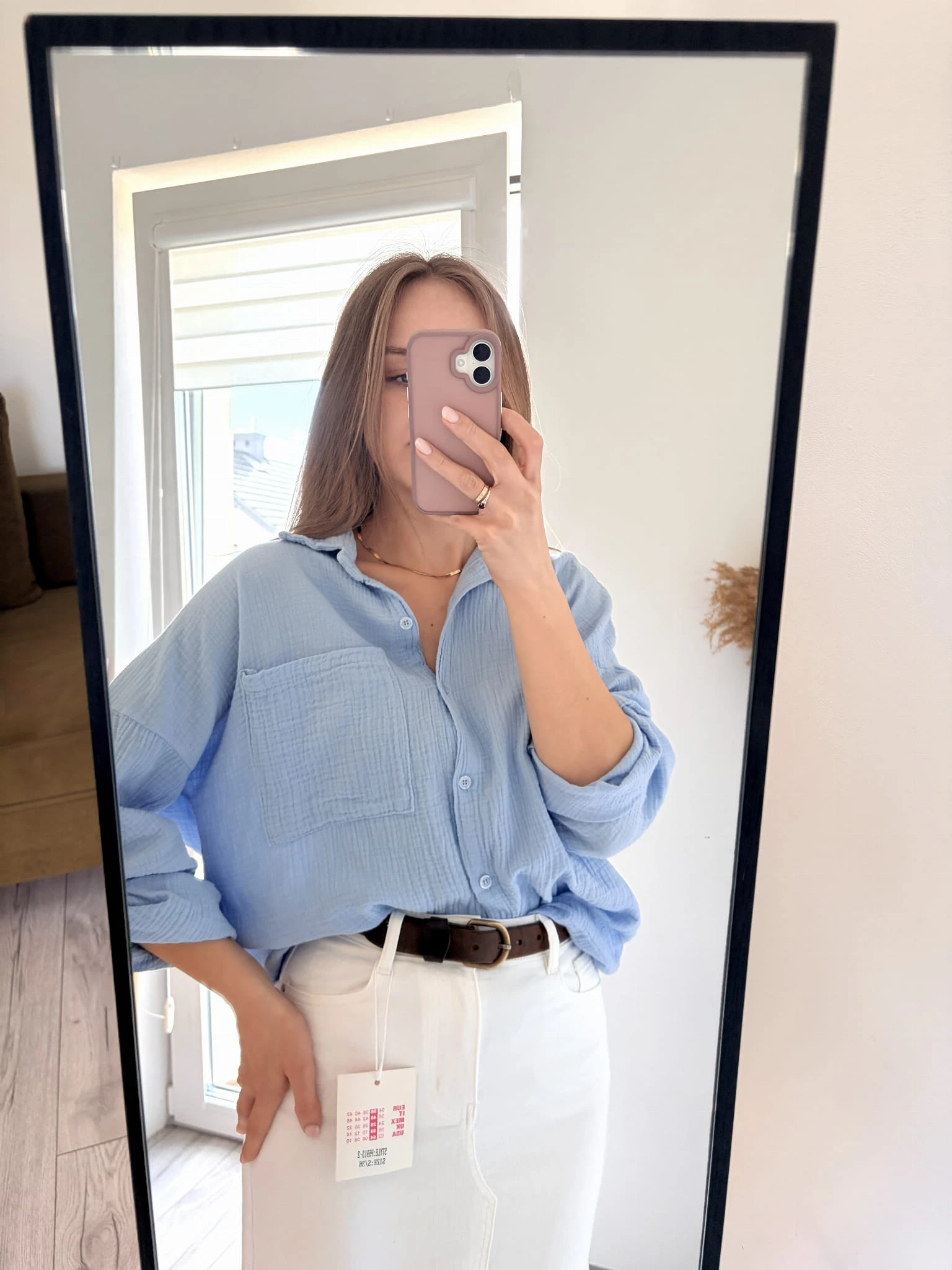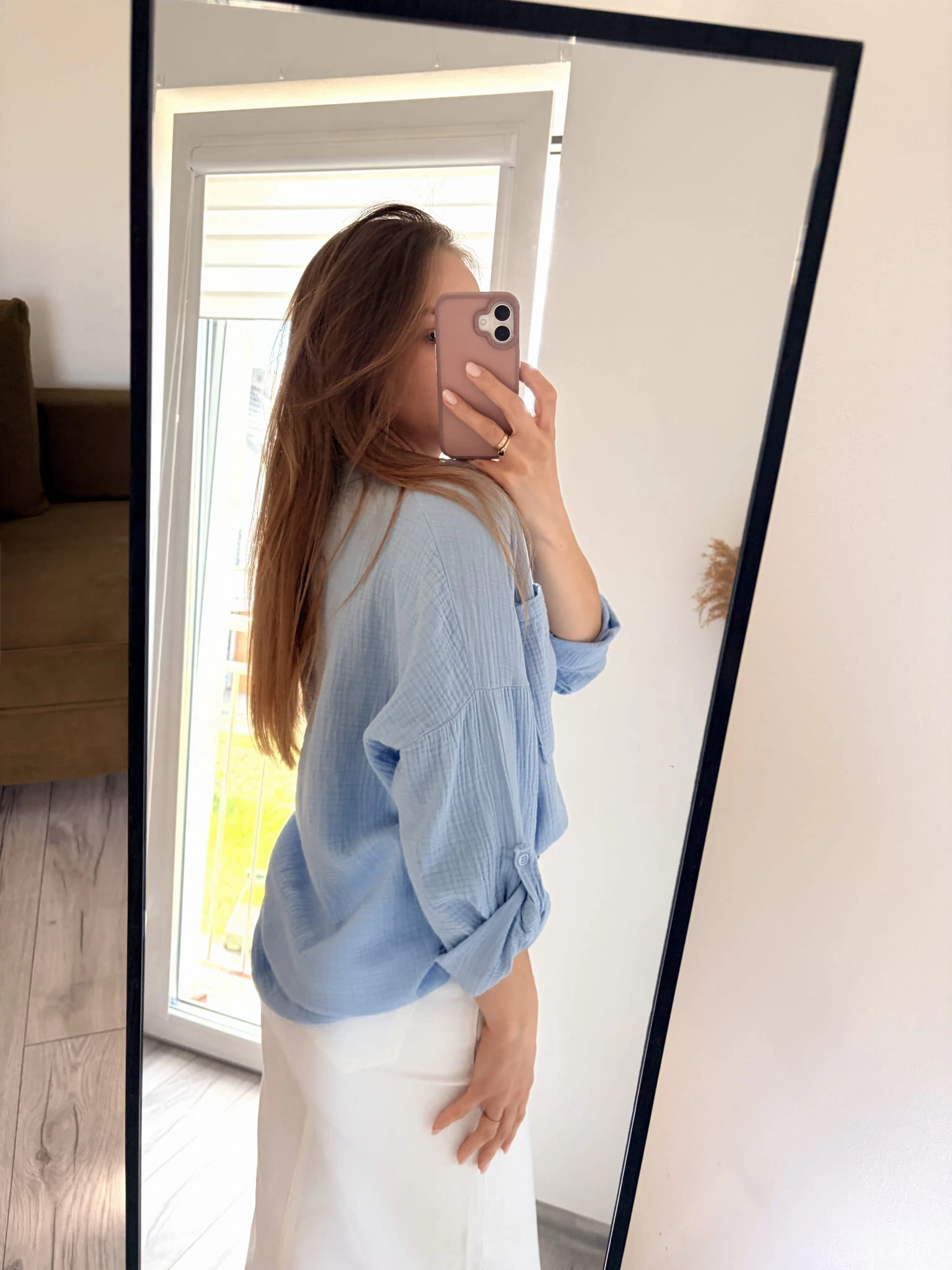 Jasnoniebieska, bawełniana koszula letnia, muślinowa, New Collection, rozmiar uniwersalny