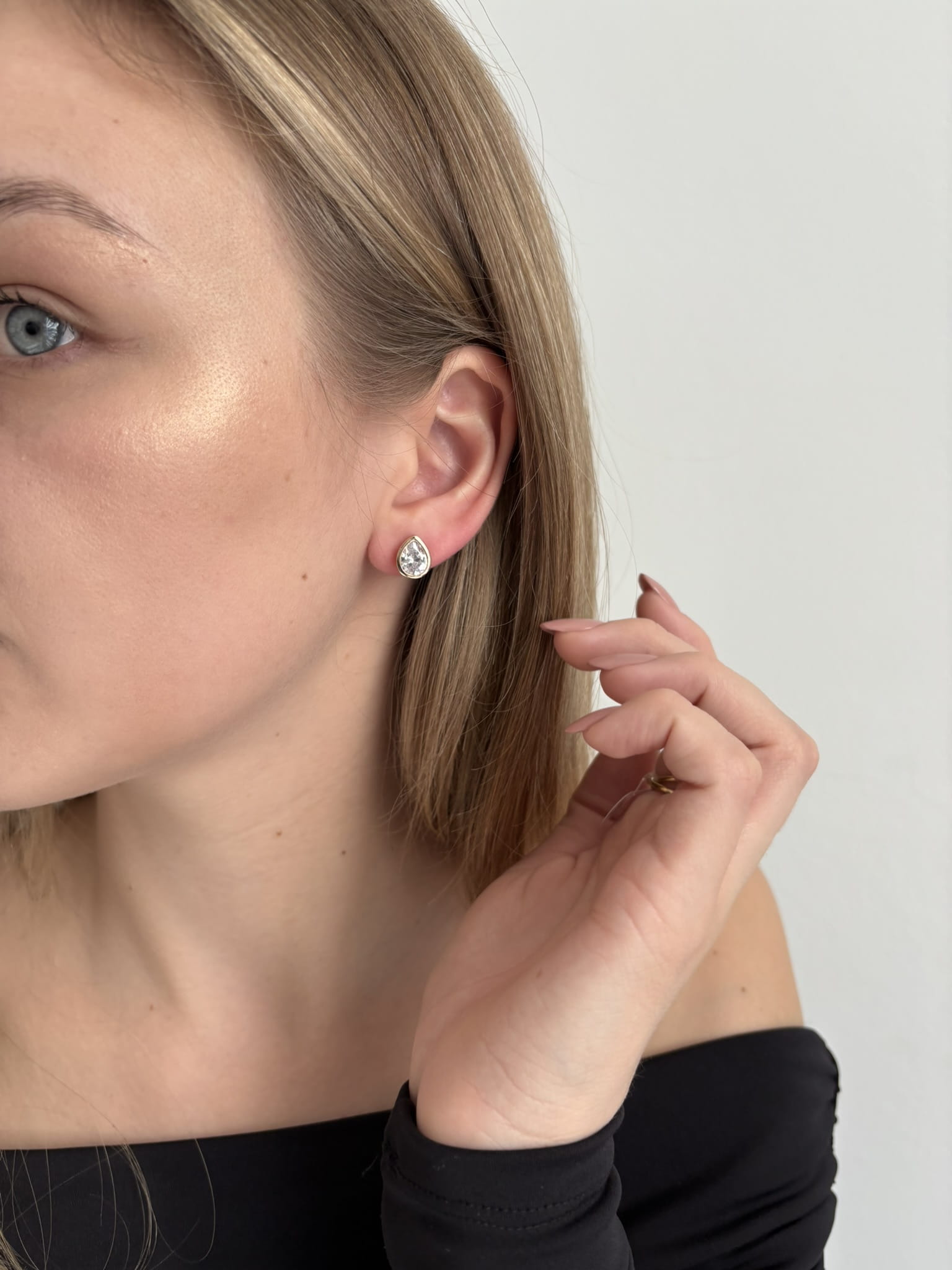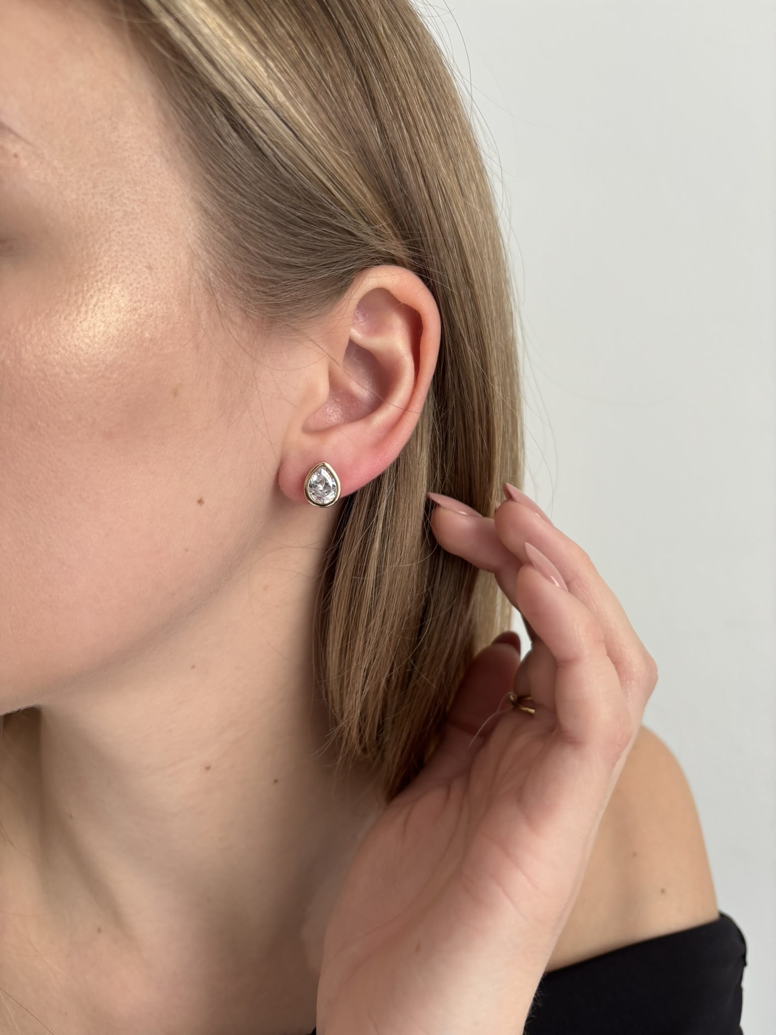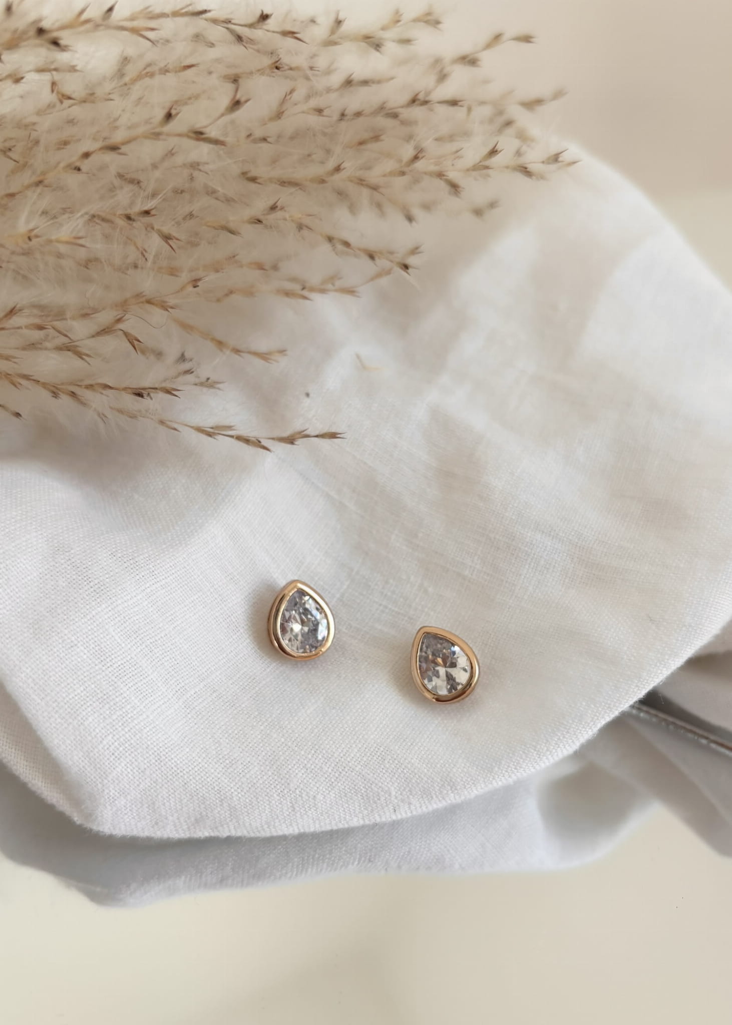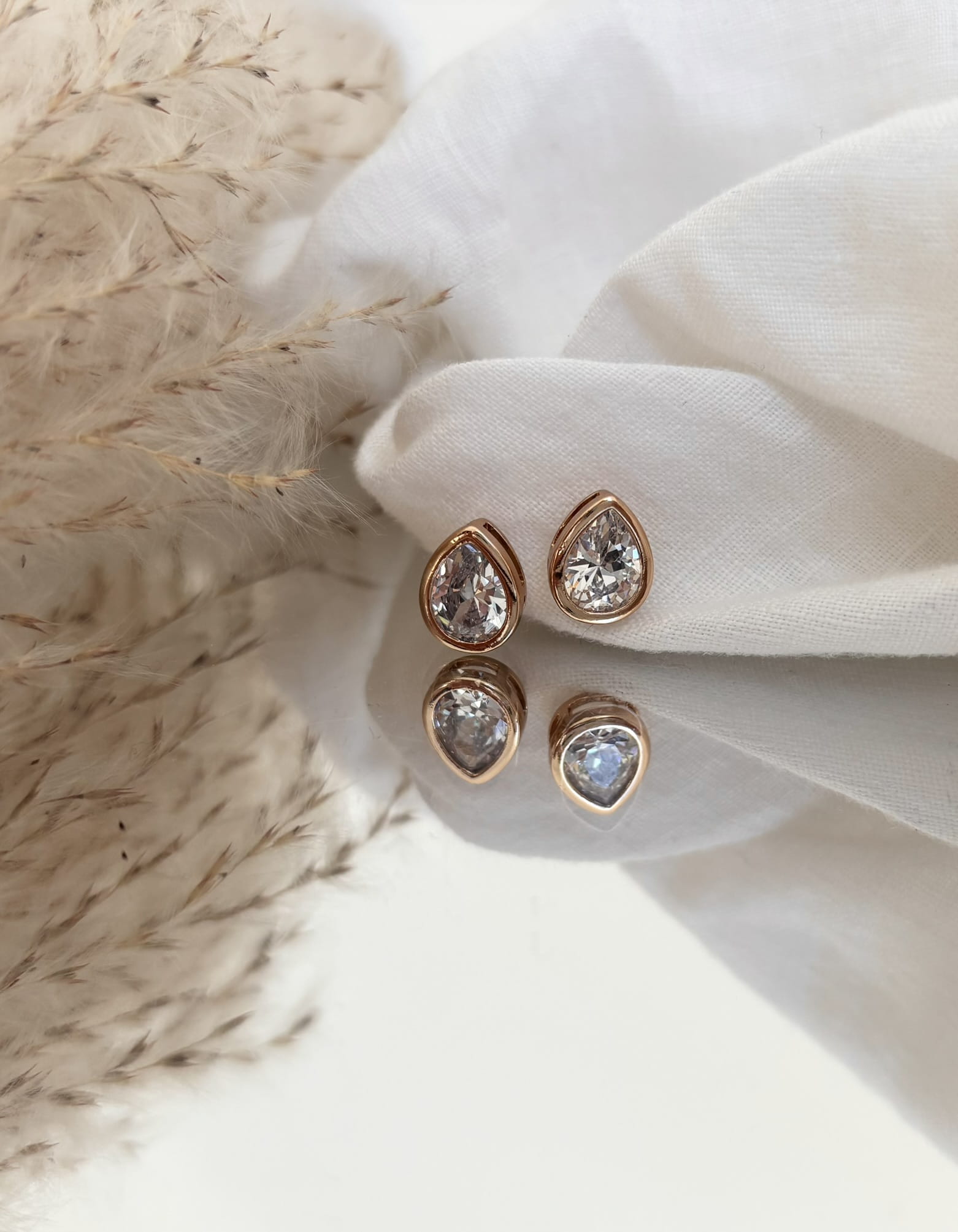 Błyszczące kolczyki diamenciki w kolorze różowego złota, wykonane ze stali chirurgicznej.