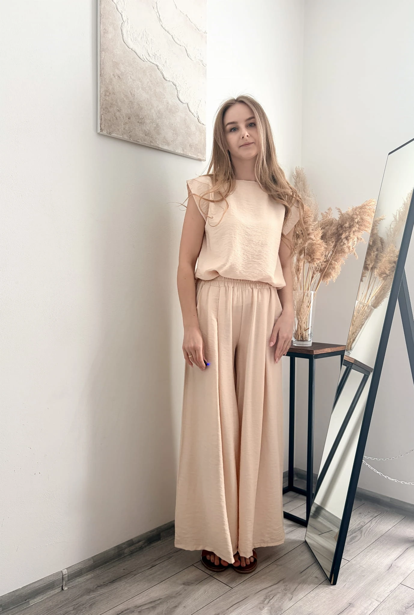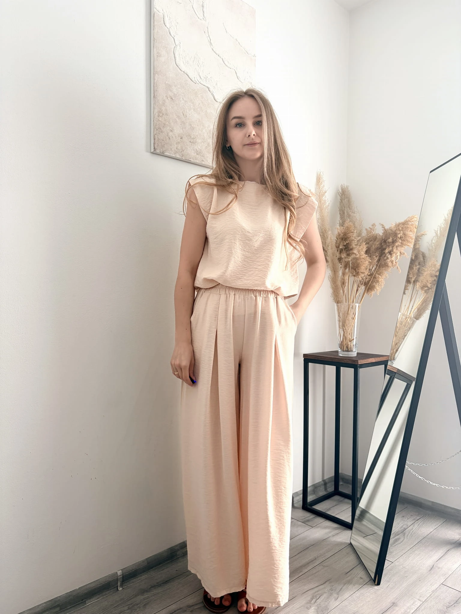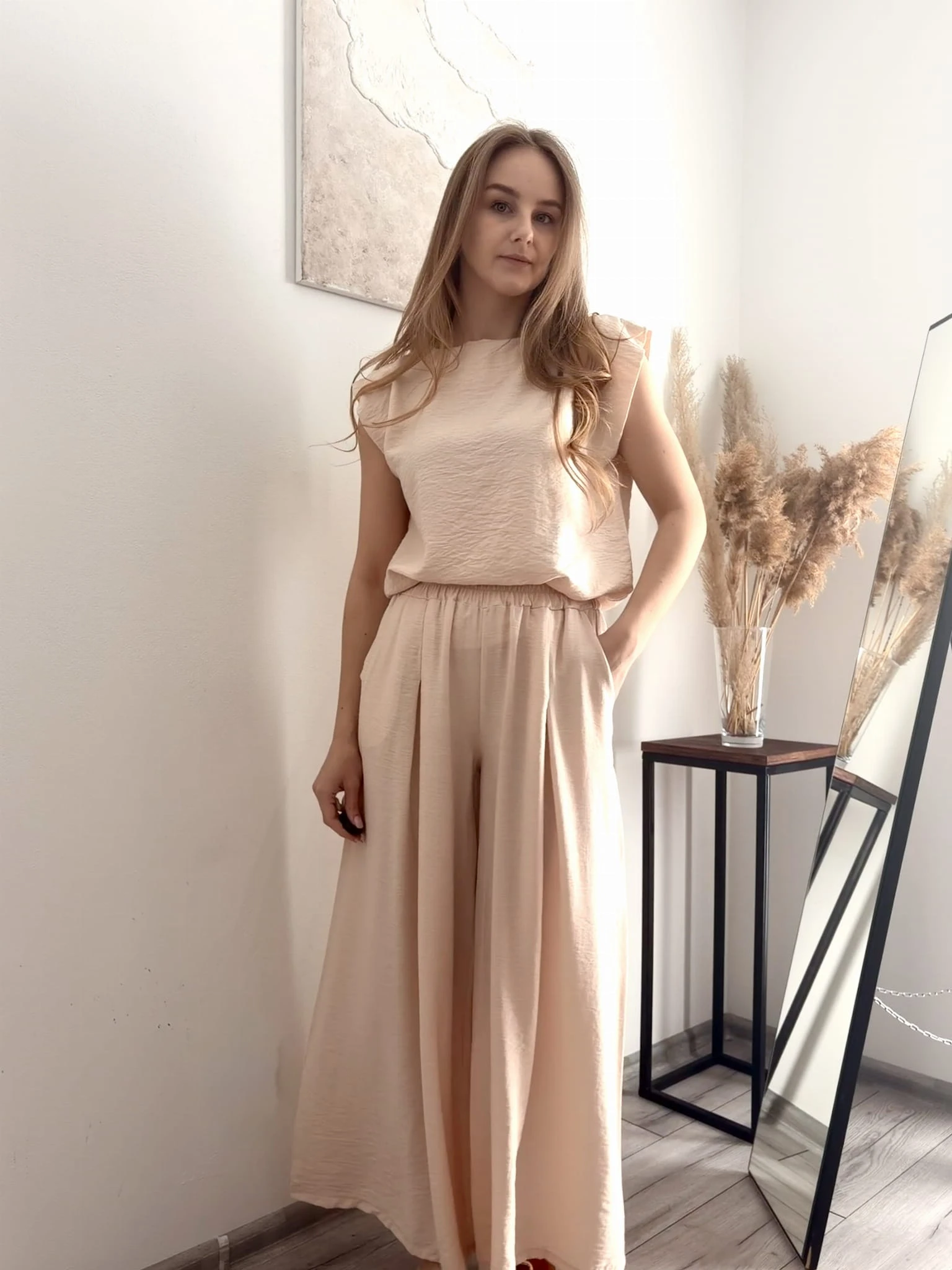 Kremowy dwuczęściowy komplet z wiskozy, letni, rozmiar uniwersalny