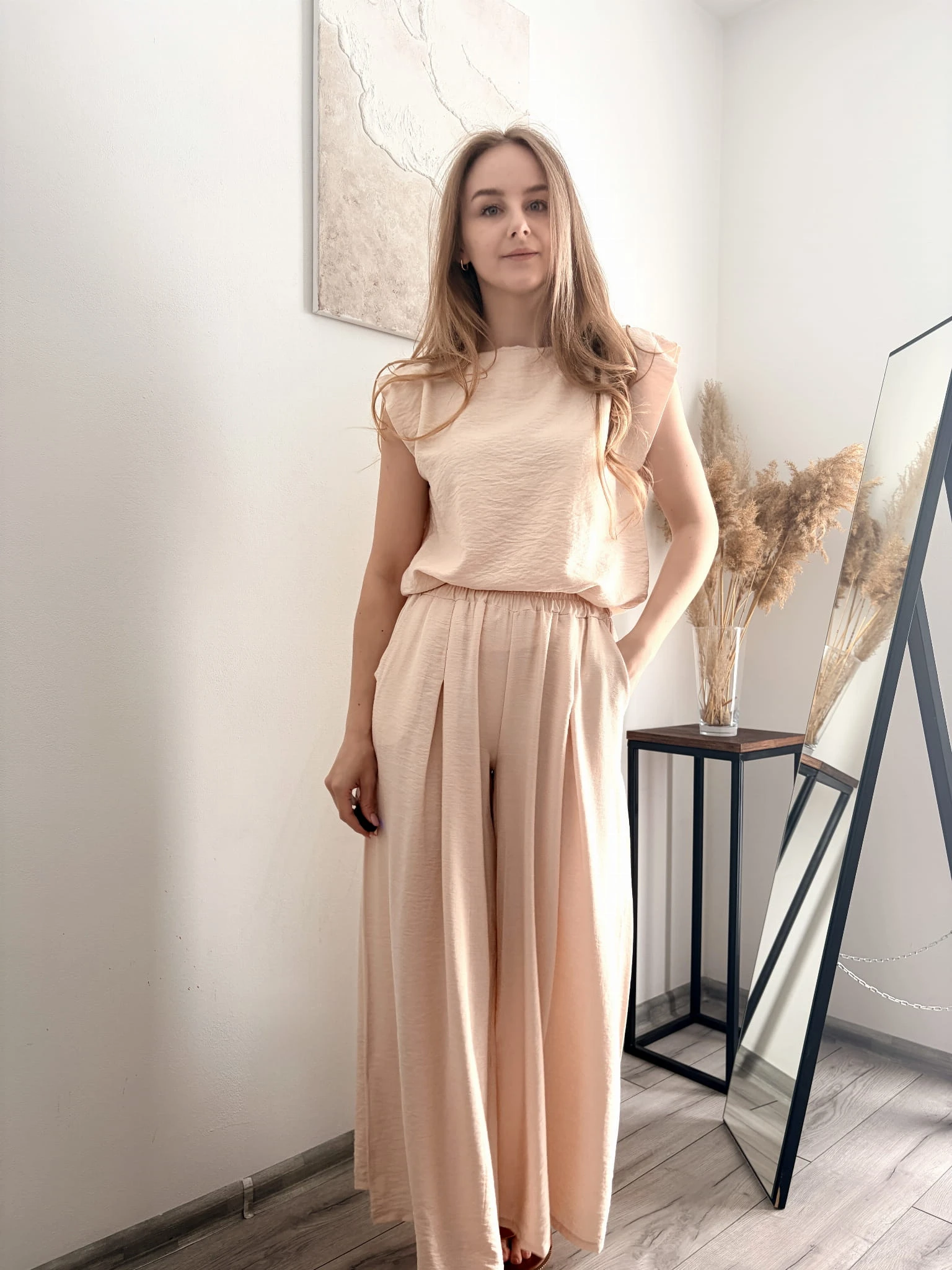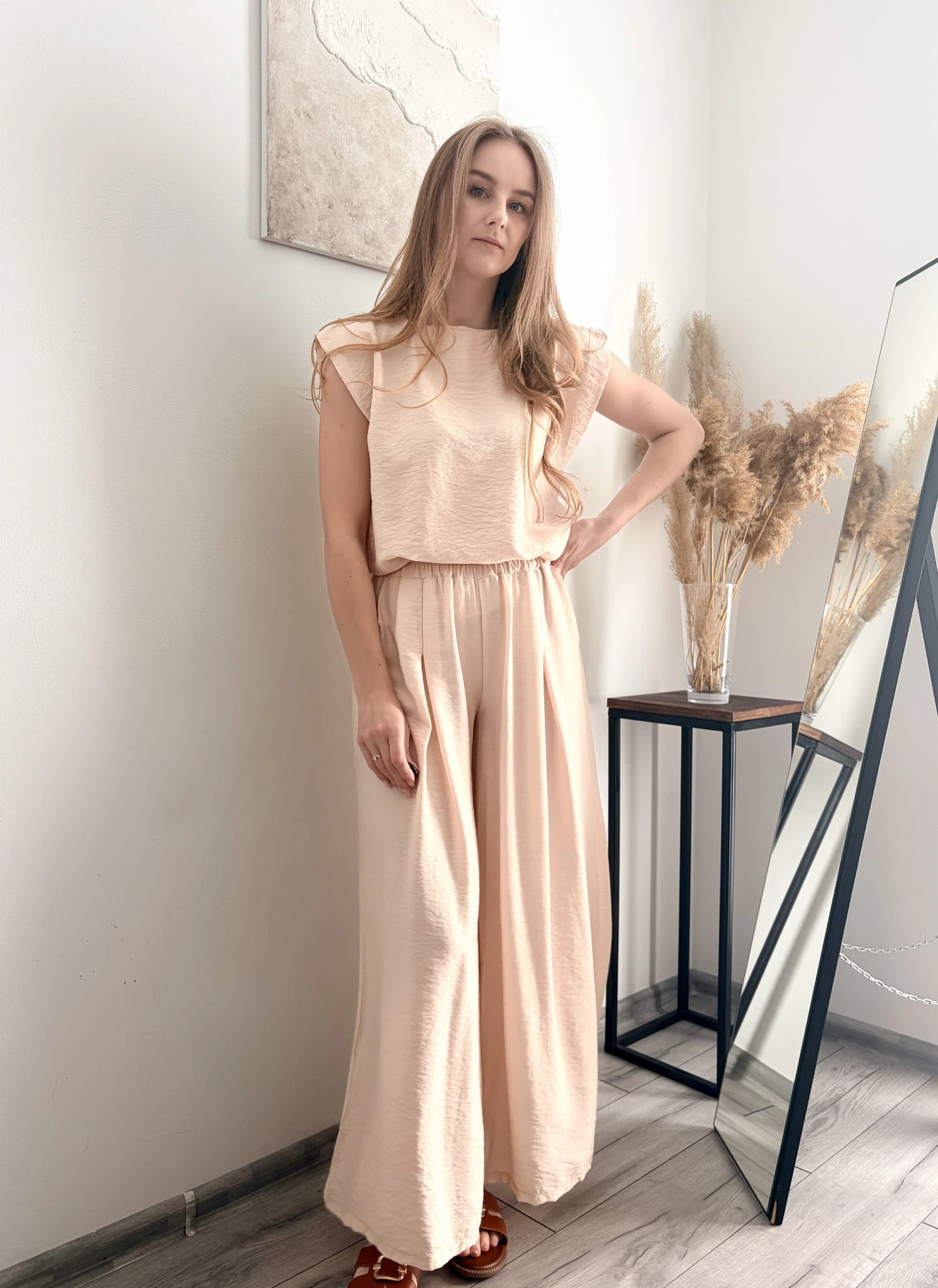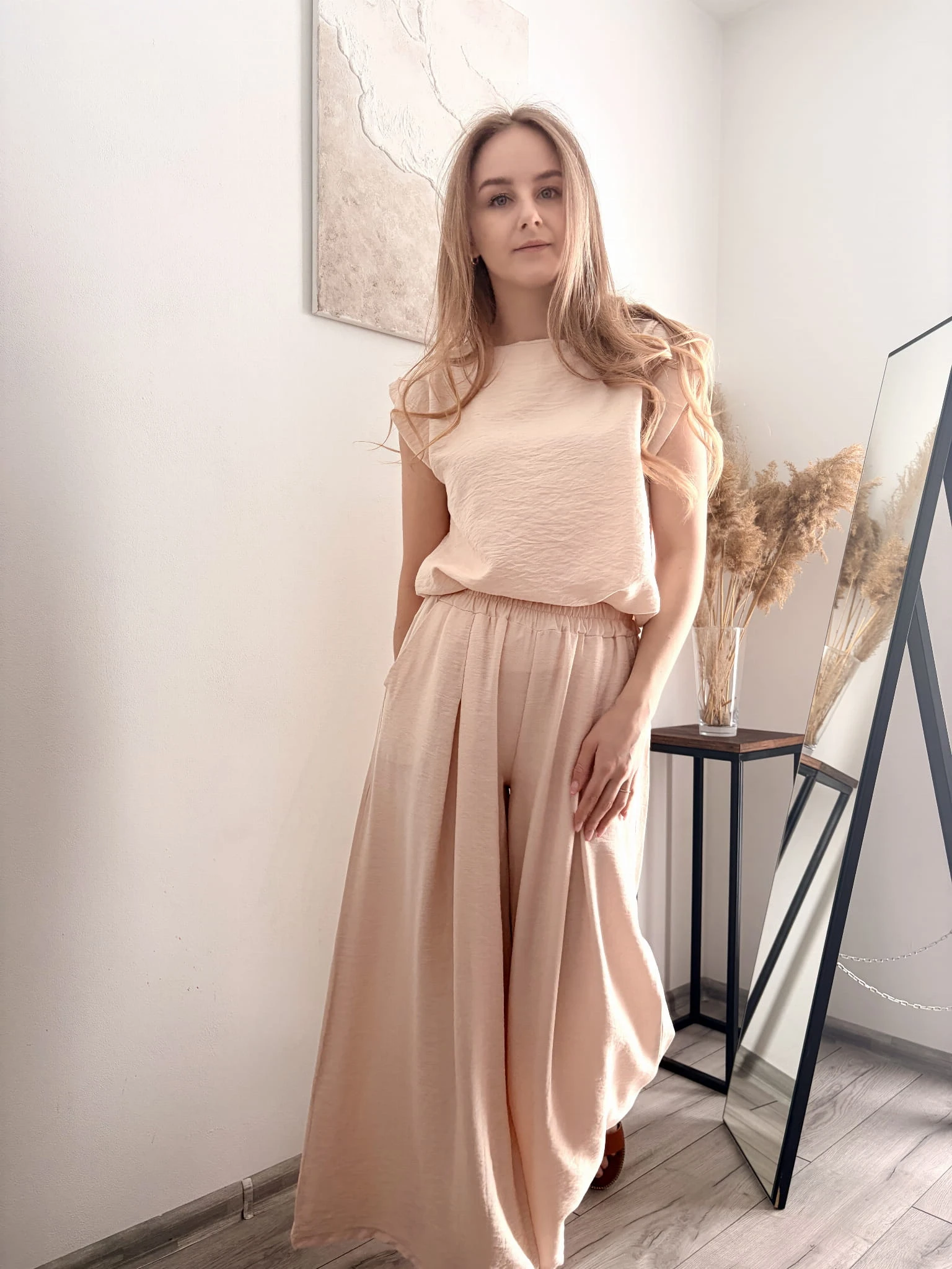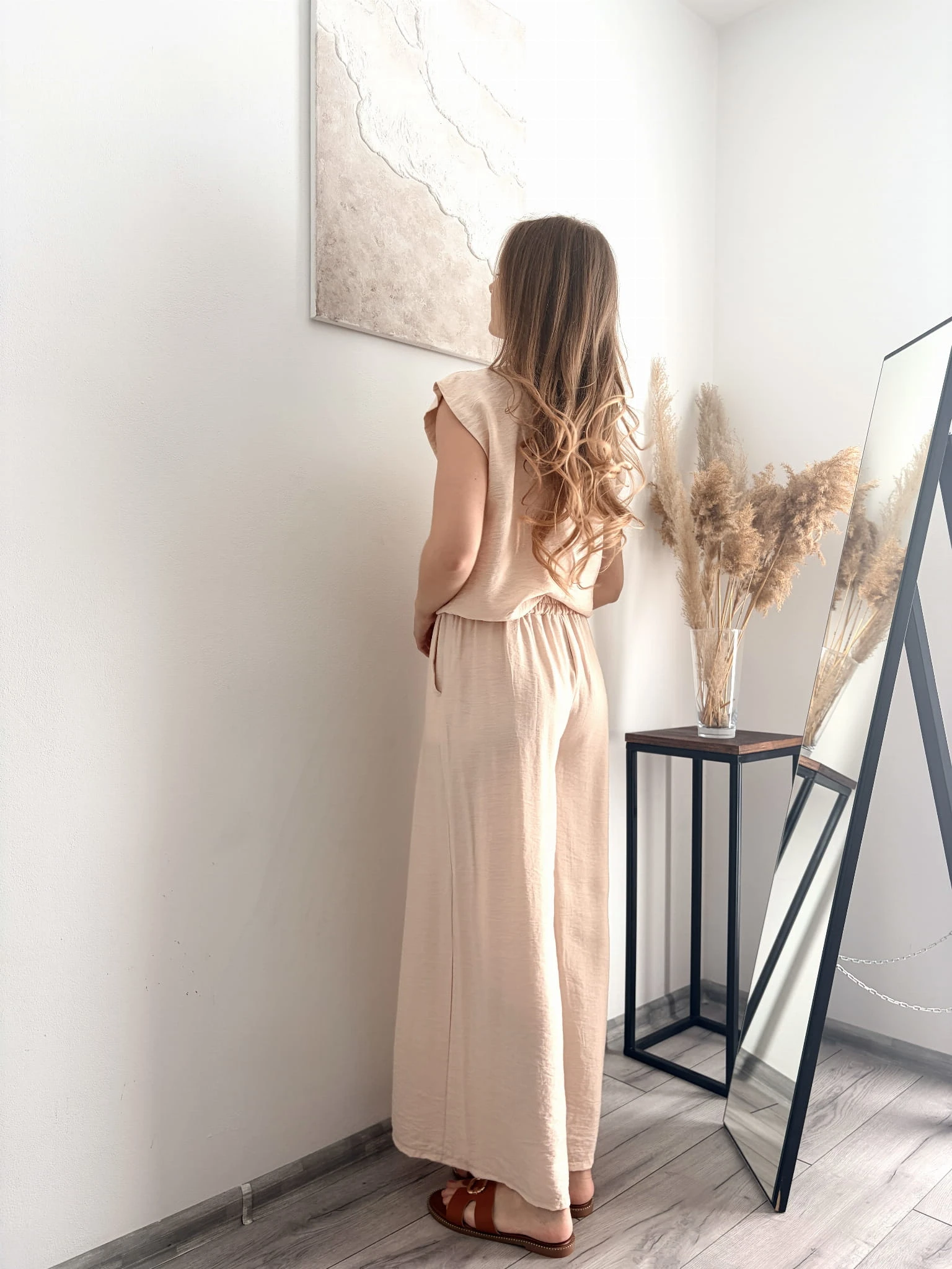 Kremowy dwuczęściowy komplet z wiskozy, letni, rozmiar uniwersalny