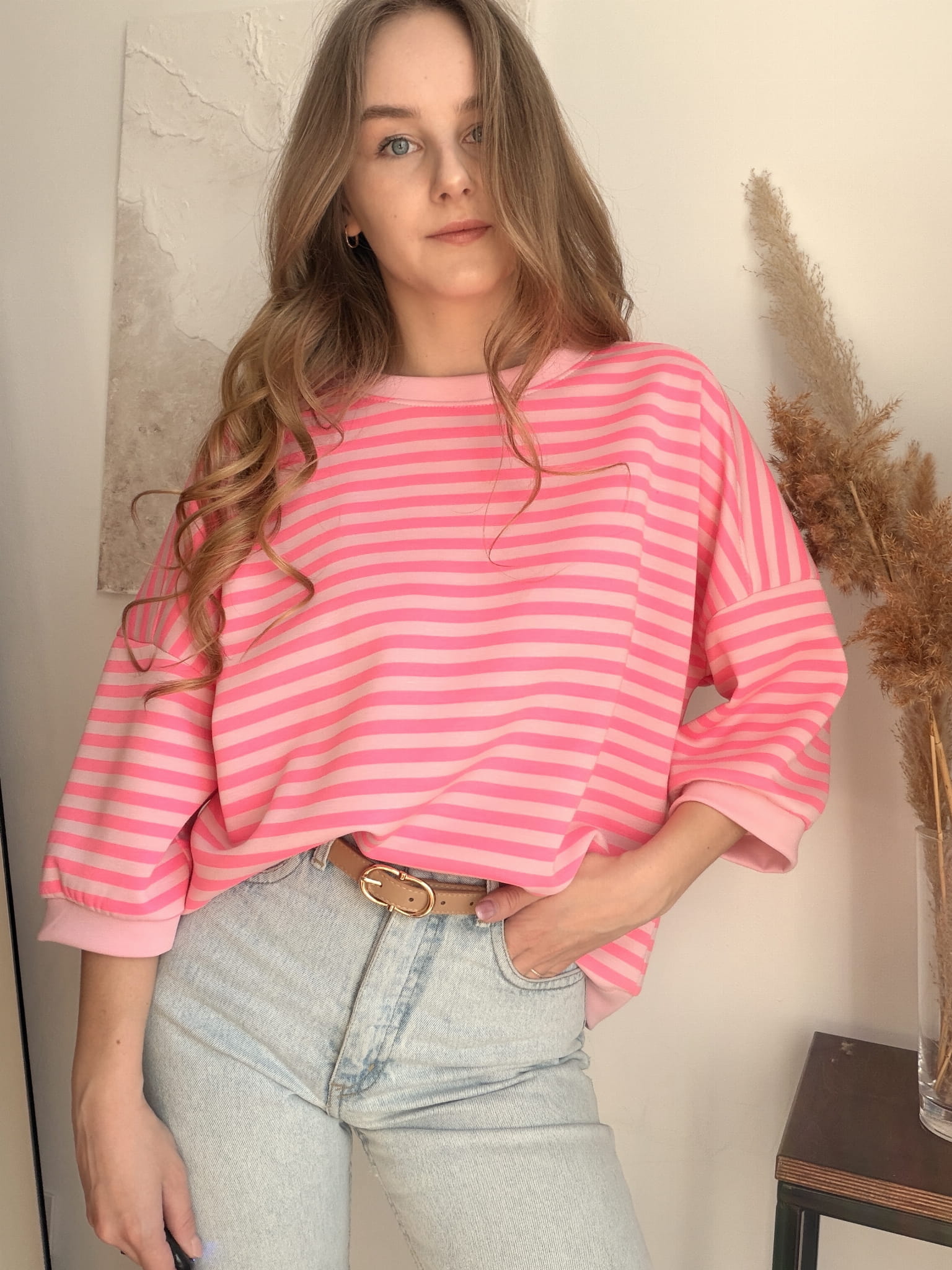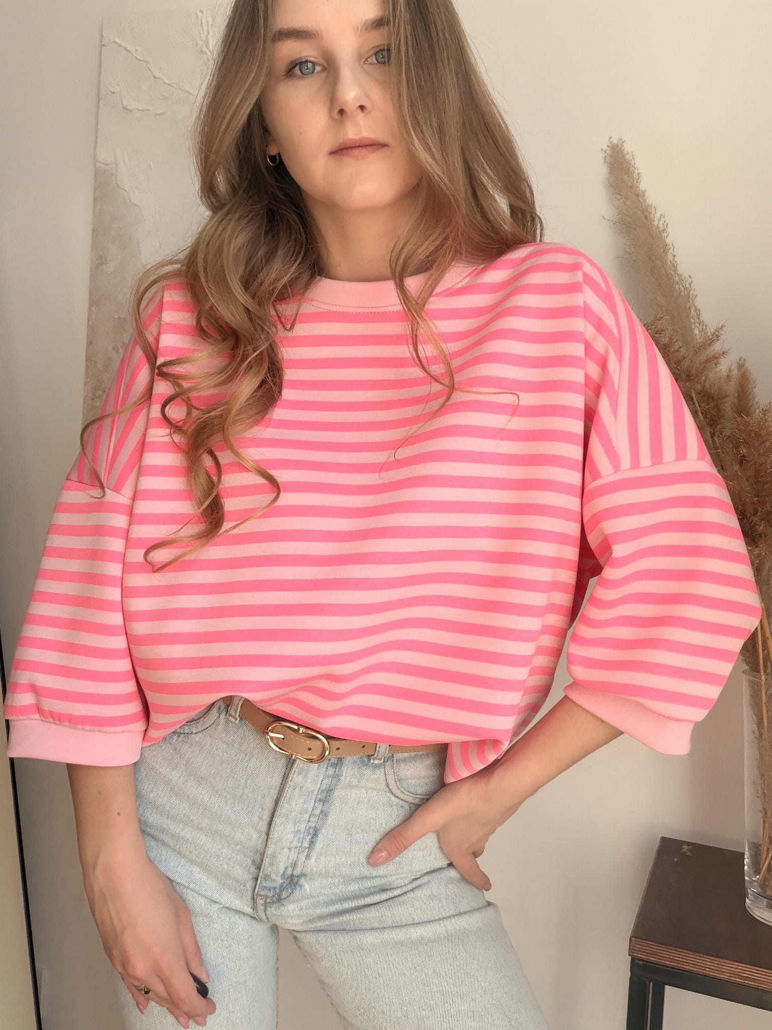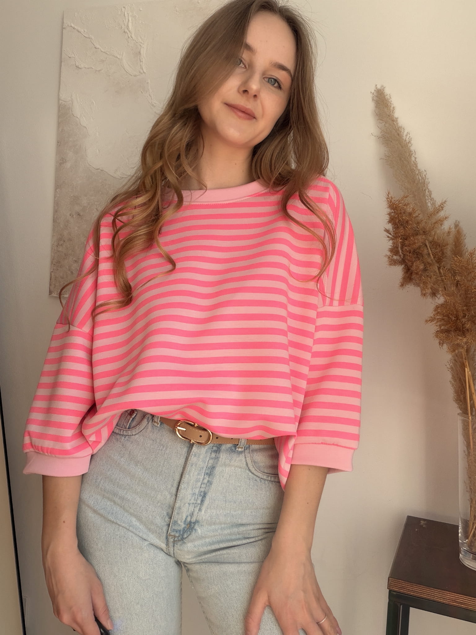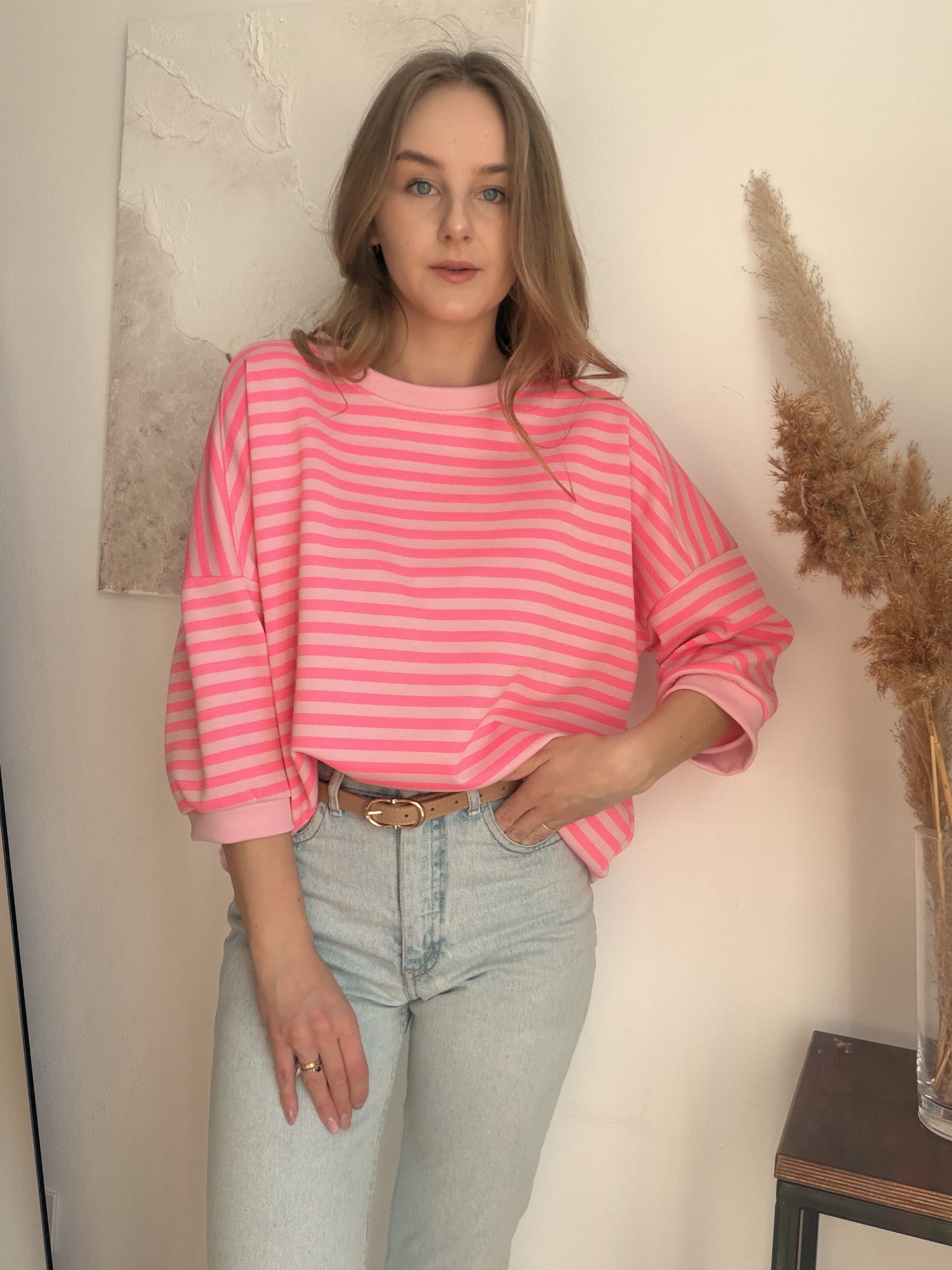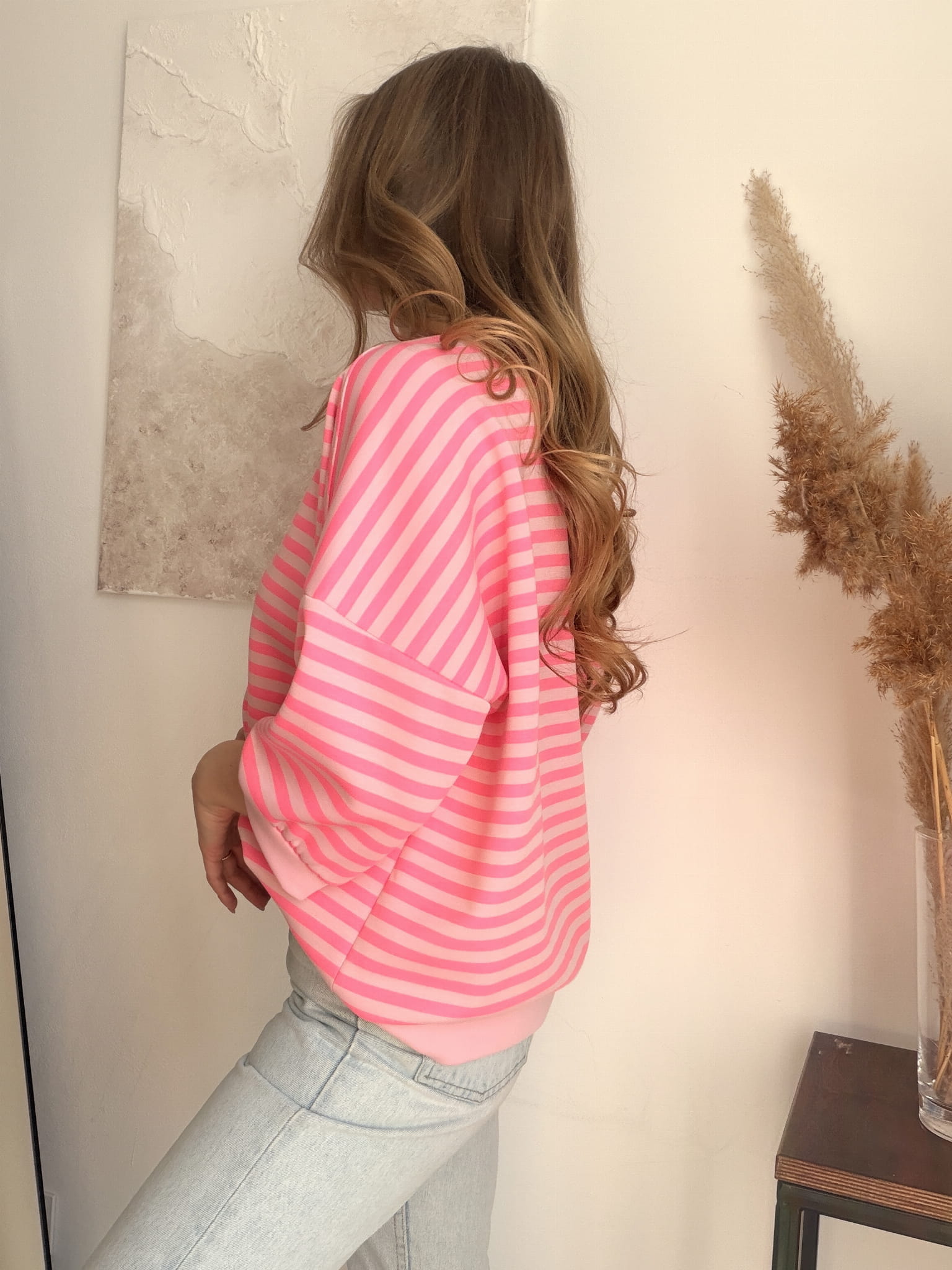 Miękka bluza w neonowe różowe paski New Collection rozmiar uniwersalny