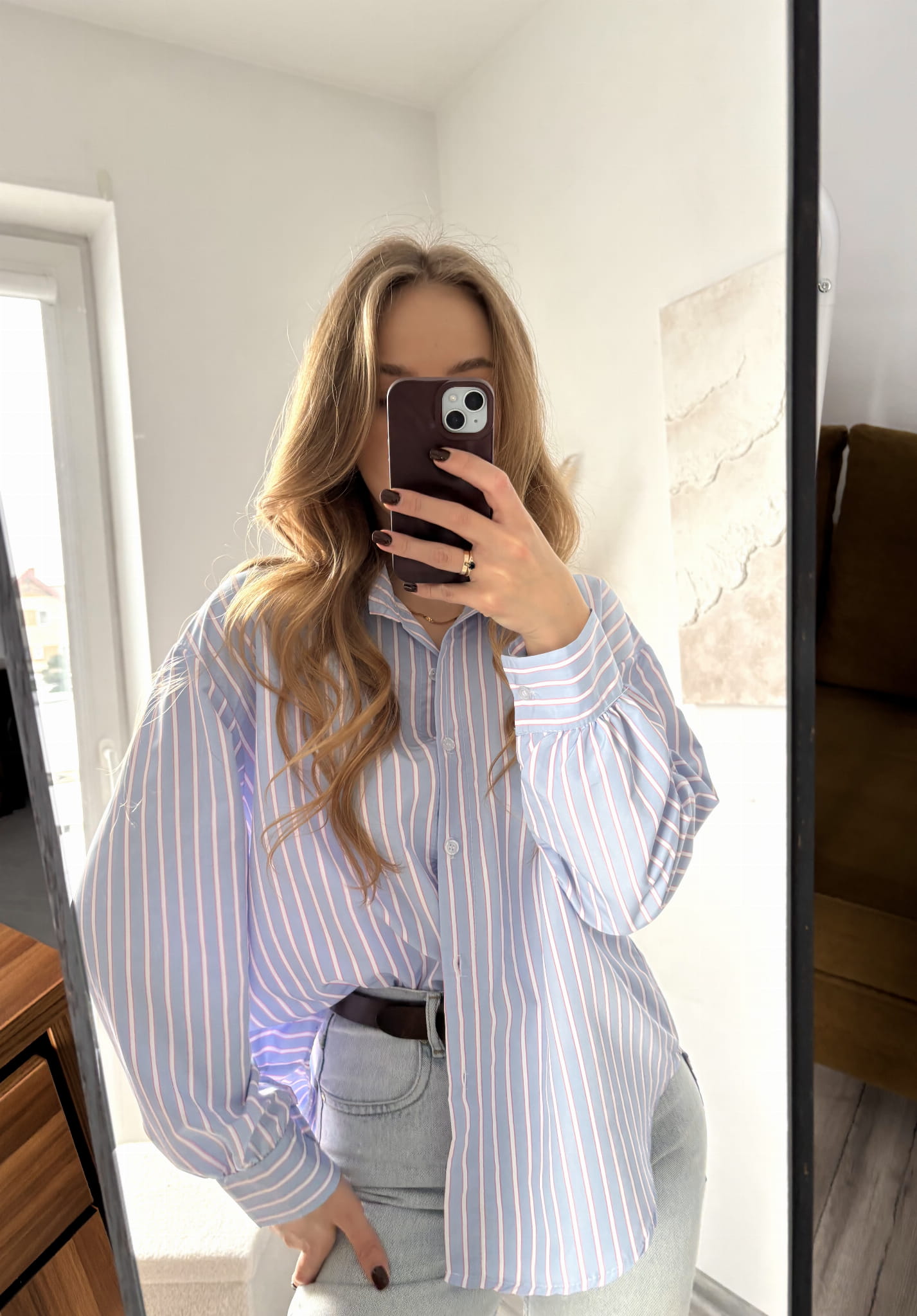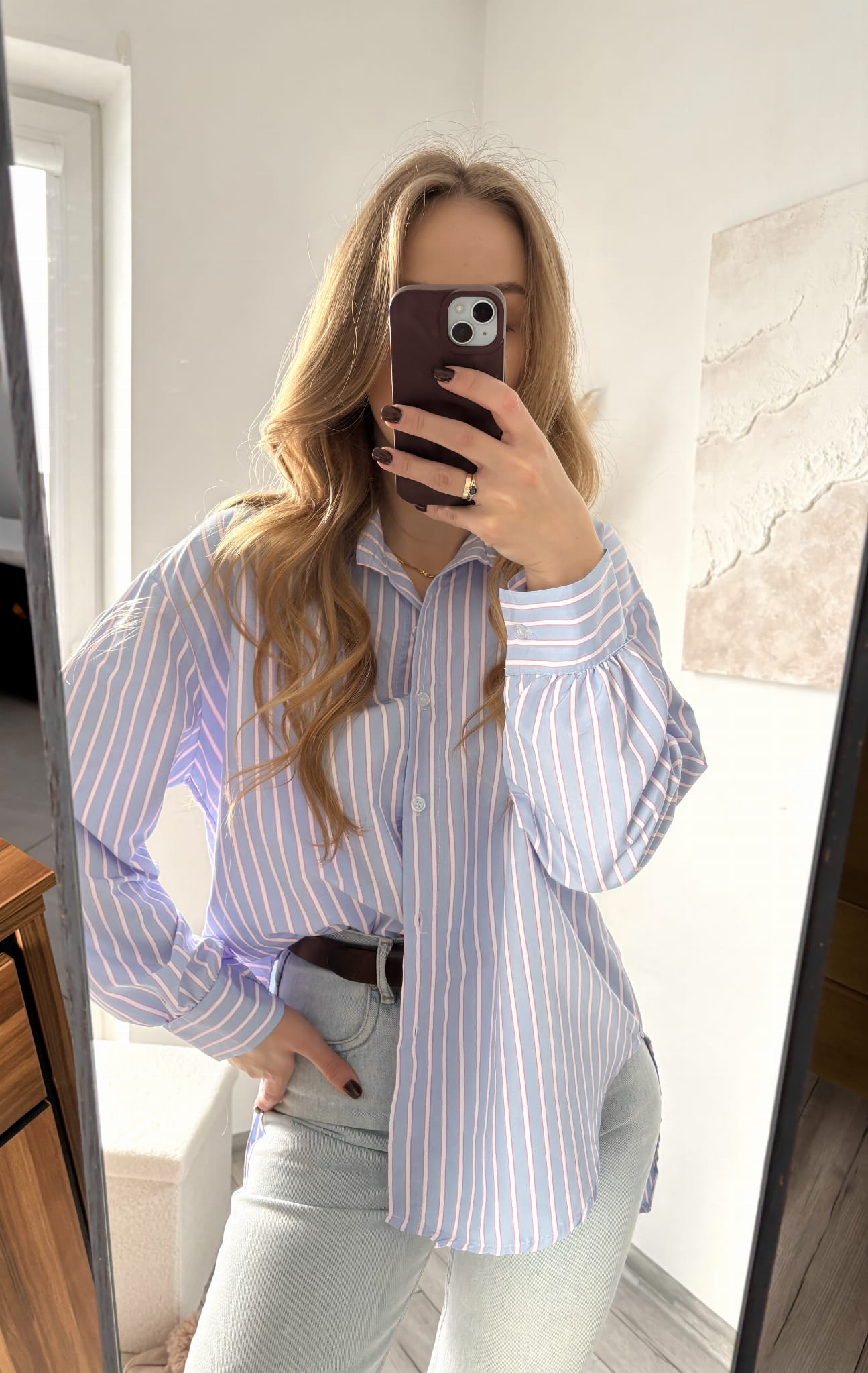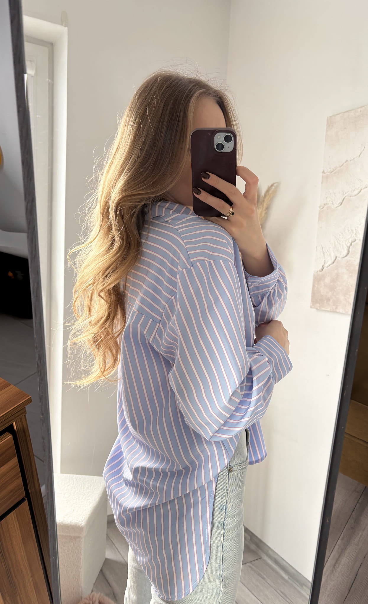 Jasnoniebieska koszula w paski z elementami różu Milady, rozmiar uniwersalny.