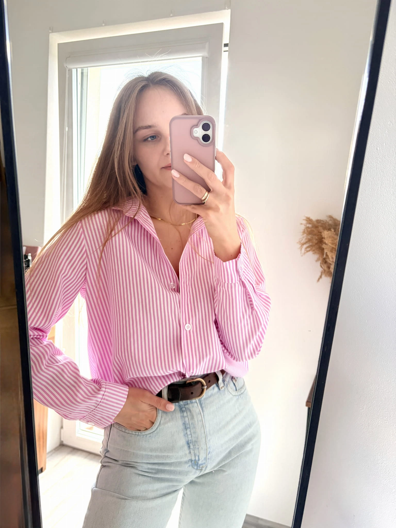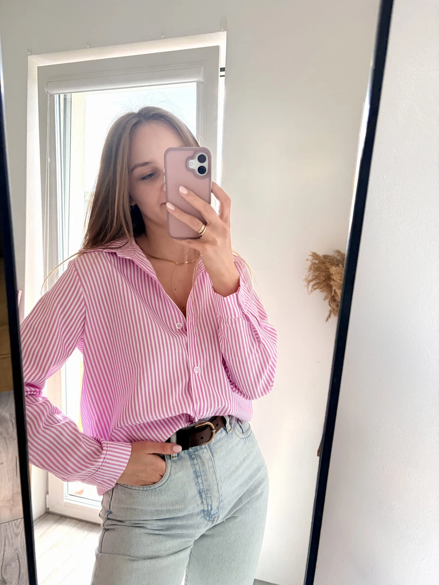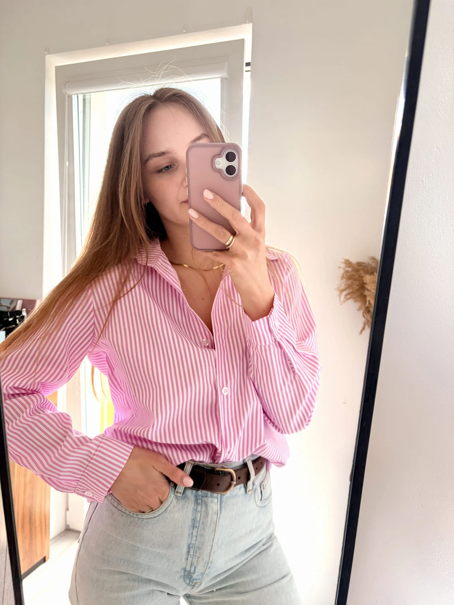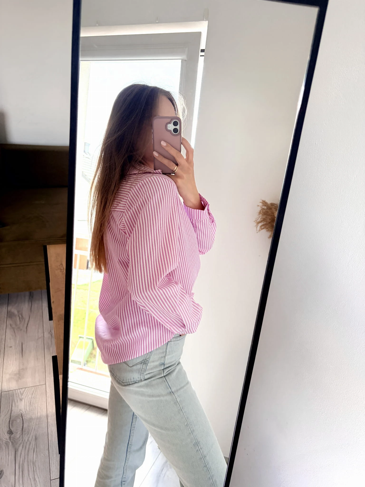 Różowa koszula letnia w paski, Maya Fashion, rozmiar uniwersalny