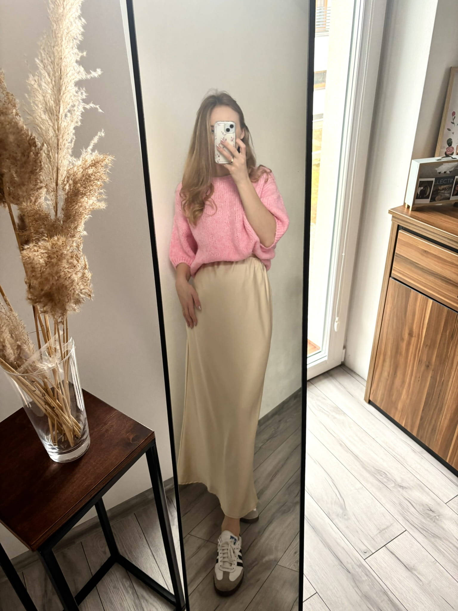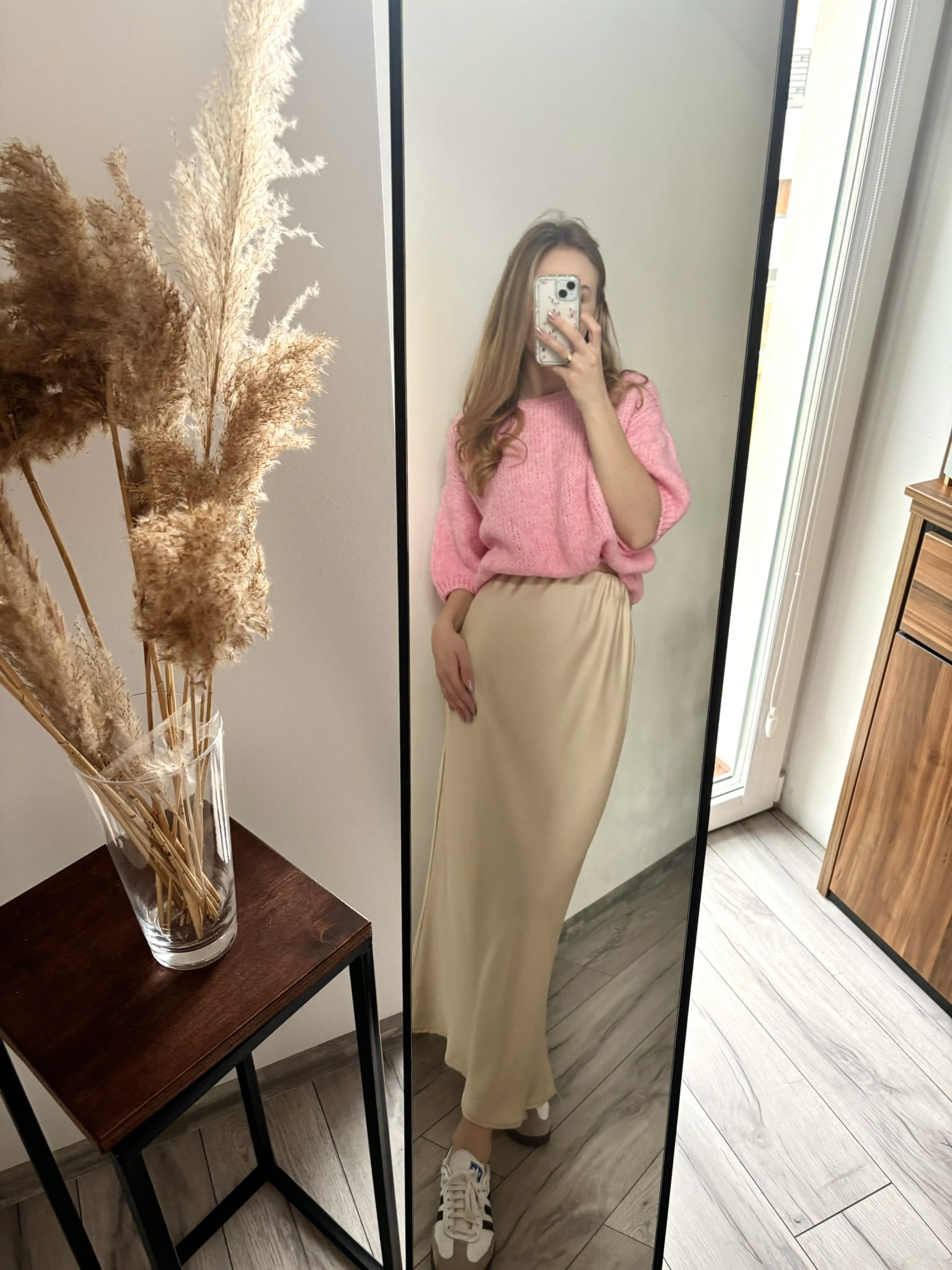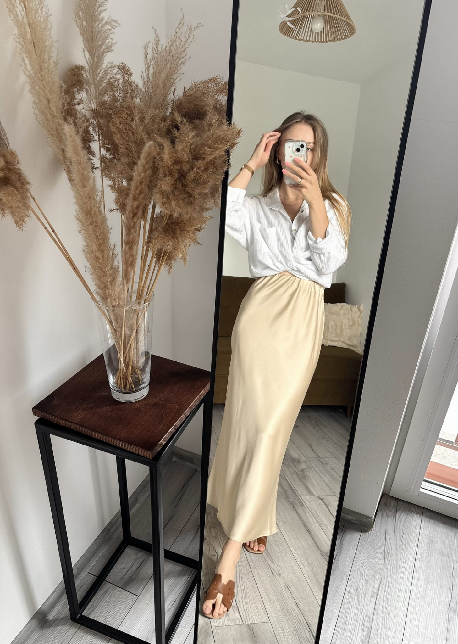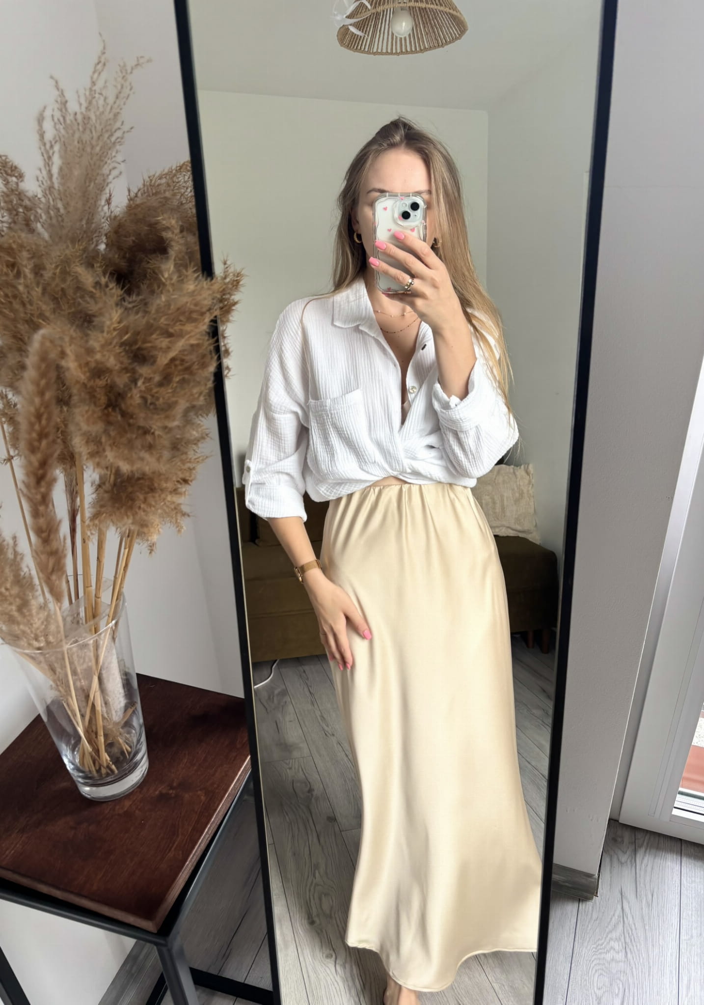 Satynowa spódnica midi w kolorze kremowym