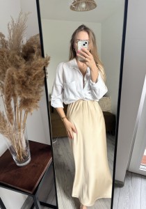 Satynowa spódnica midi w kolorze kremowym. Rozmiar uniwersalny.