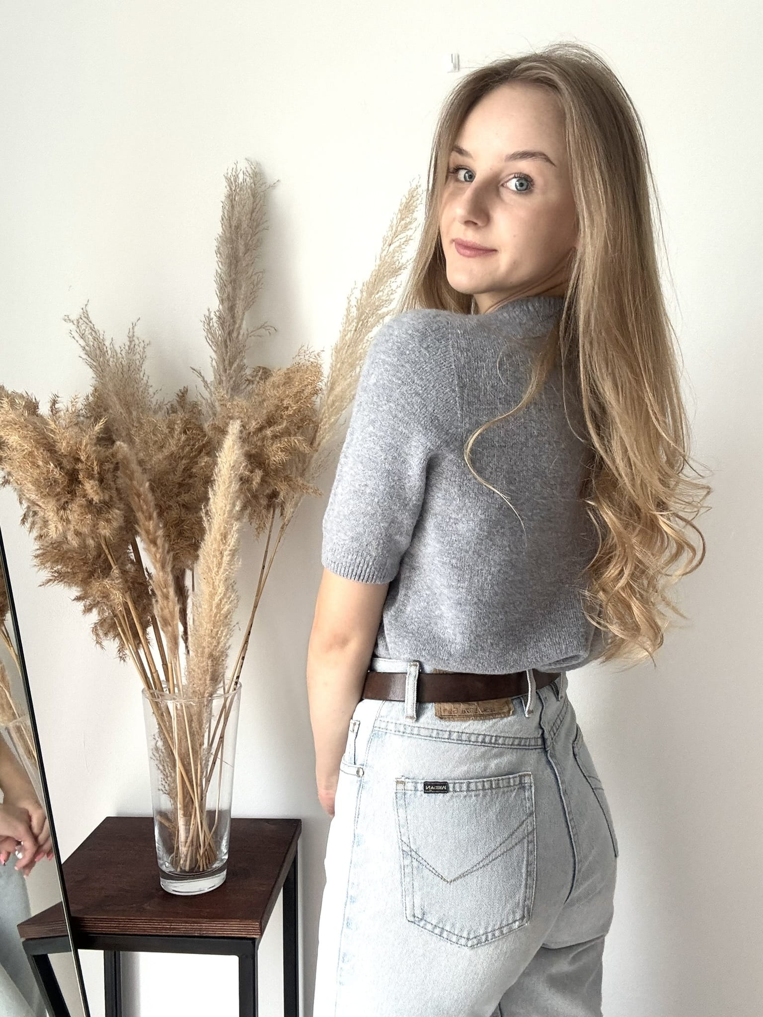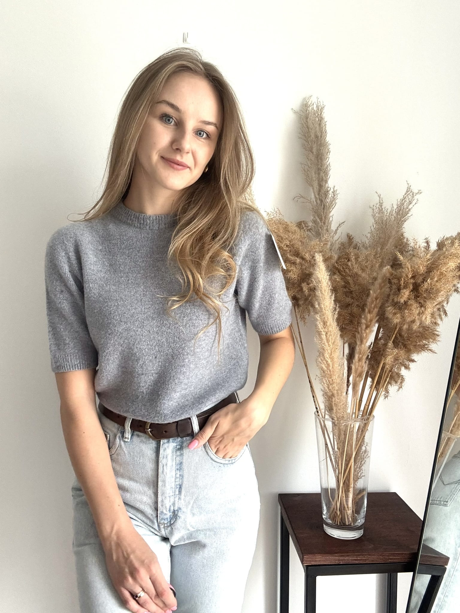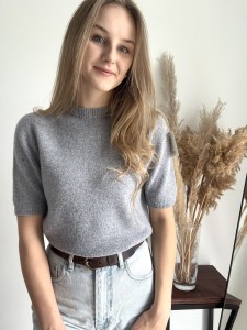 Szary mięciutki sweter Baby Alpaka z krótkim rękawem