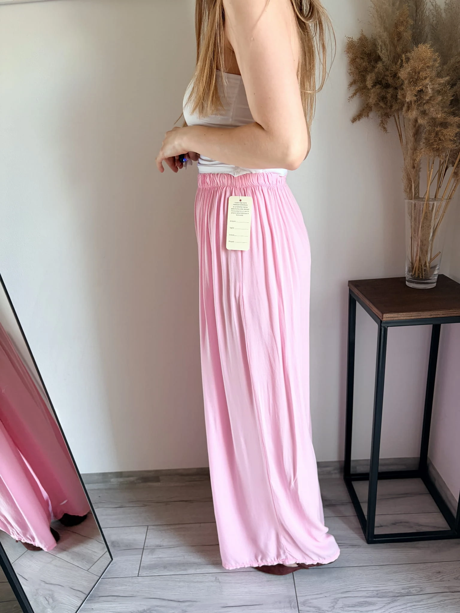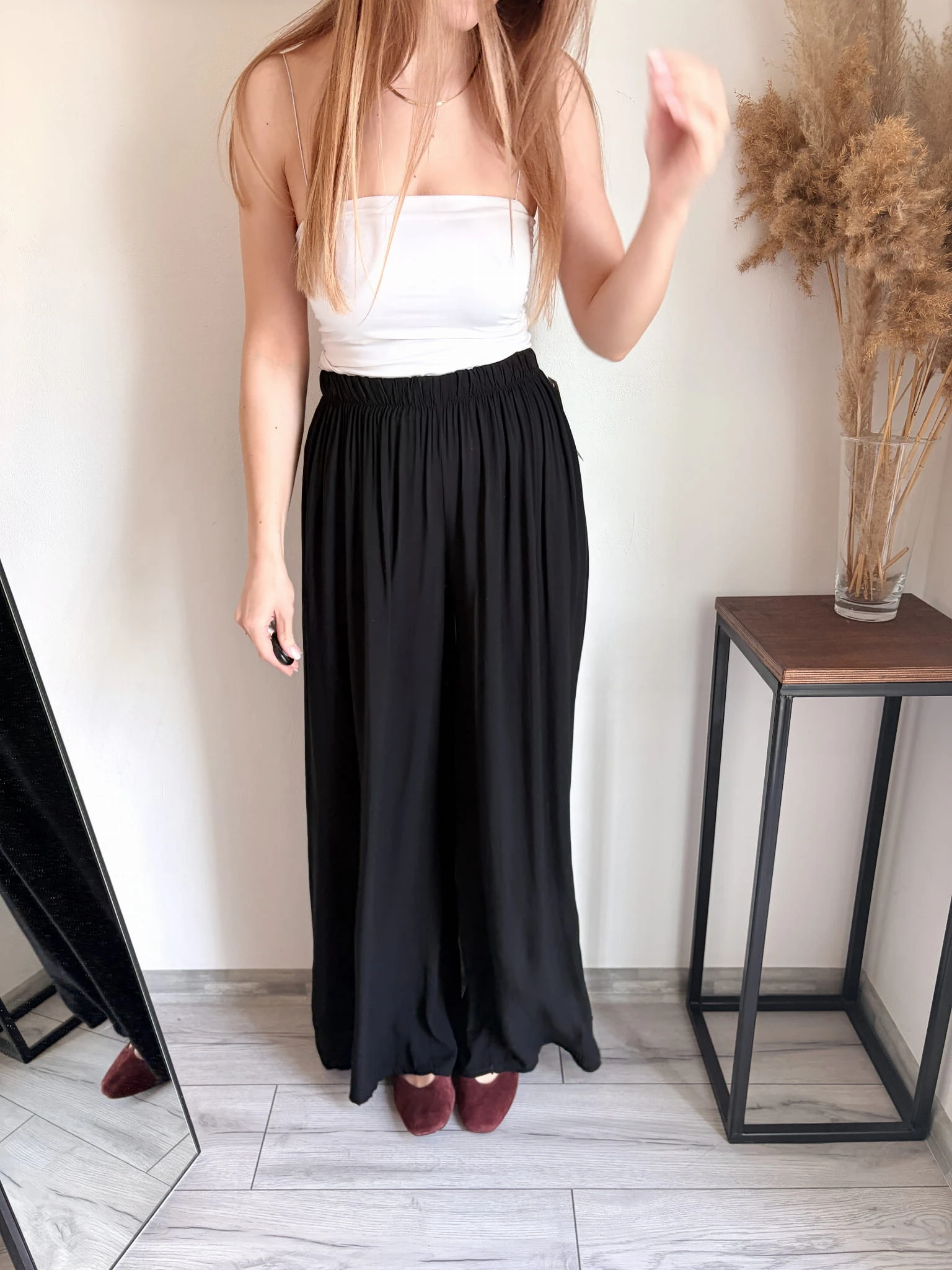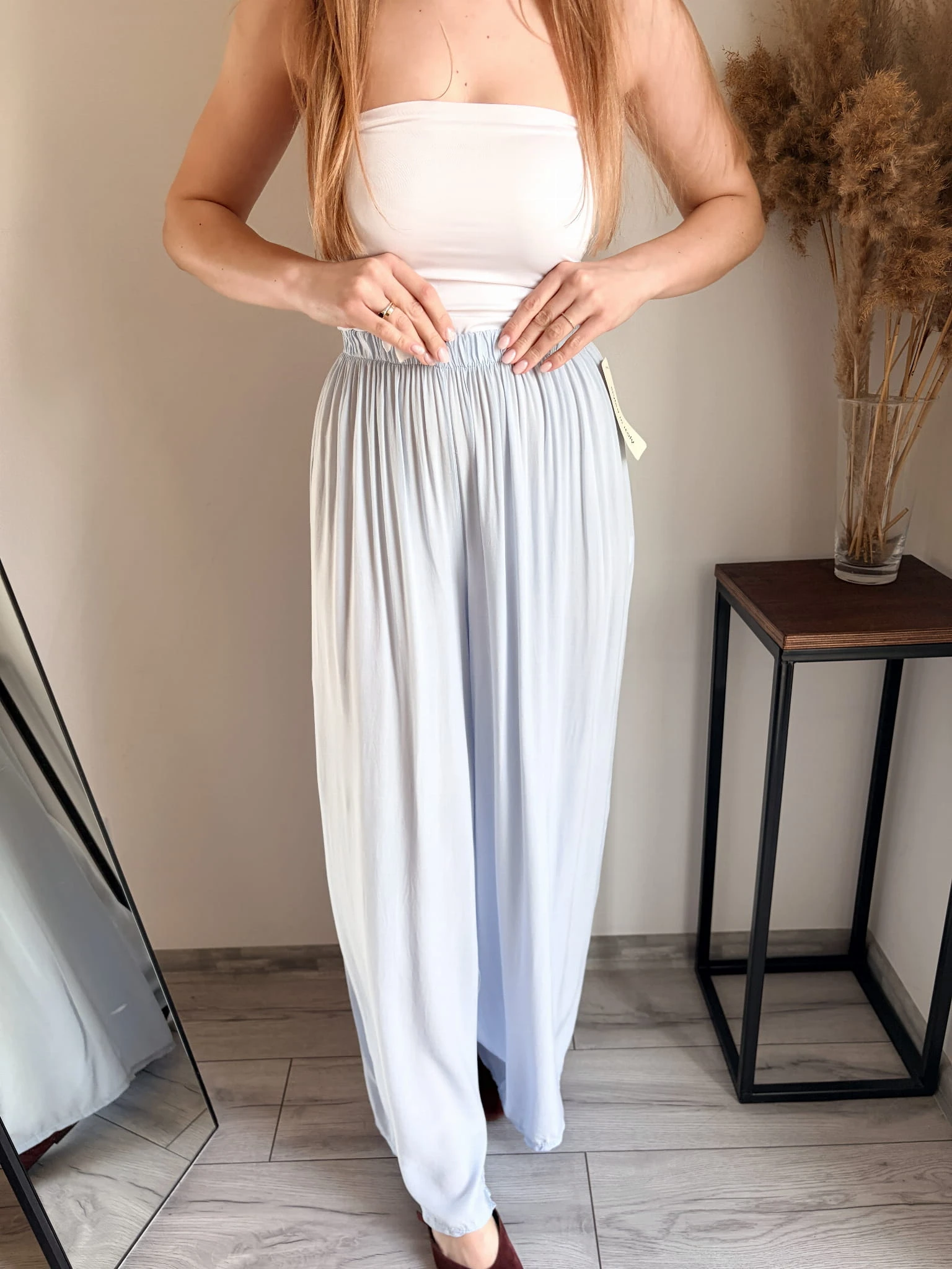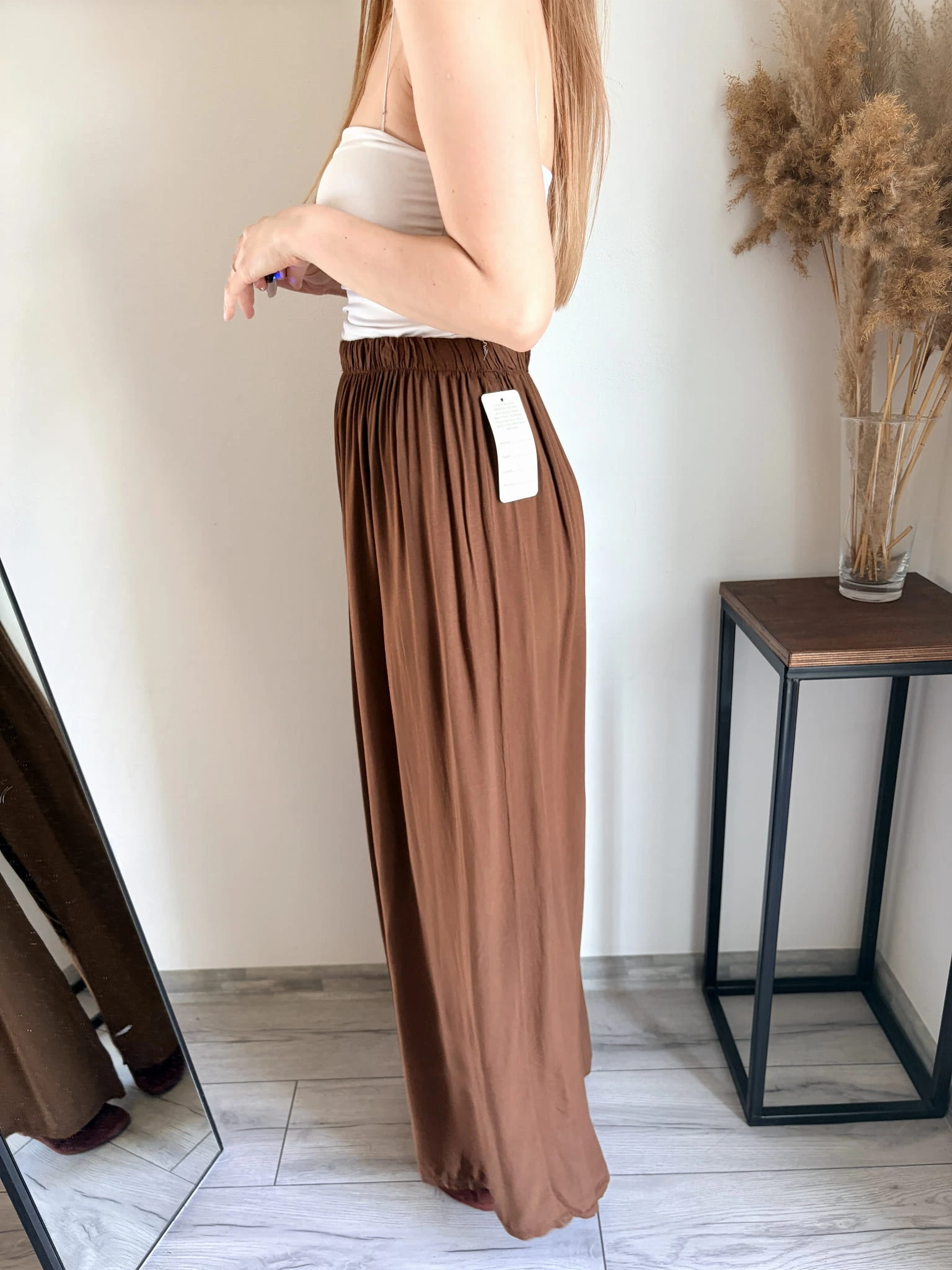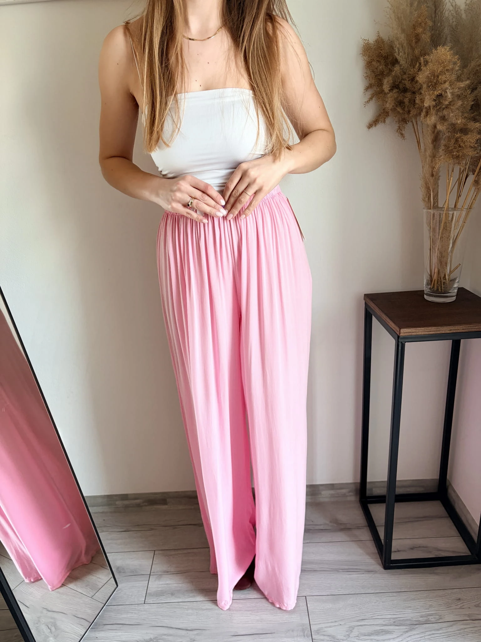 Szerokie spodnie letnie z cienkiej wiskozy, idealne na cieplejsze dni. Marka Styled in Italy, rozmiar uniwersalny. W pasie gumka. Dostępne w kilku kolorach.