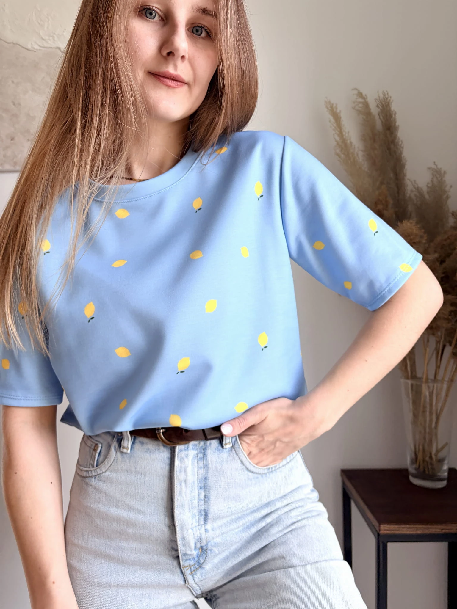 Wiosenny T-shirt w cytrynki, w różnych kolorach, Fabbricato in Italia