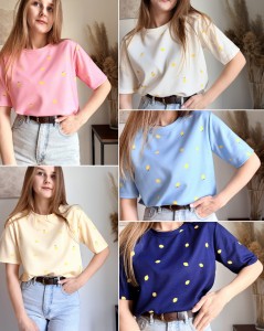 Wiosenny T-shirt w cytrynki, wiosenny w różnych kolorach, Fabbricato in Italia, dostępny w 5 kolorach.