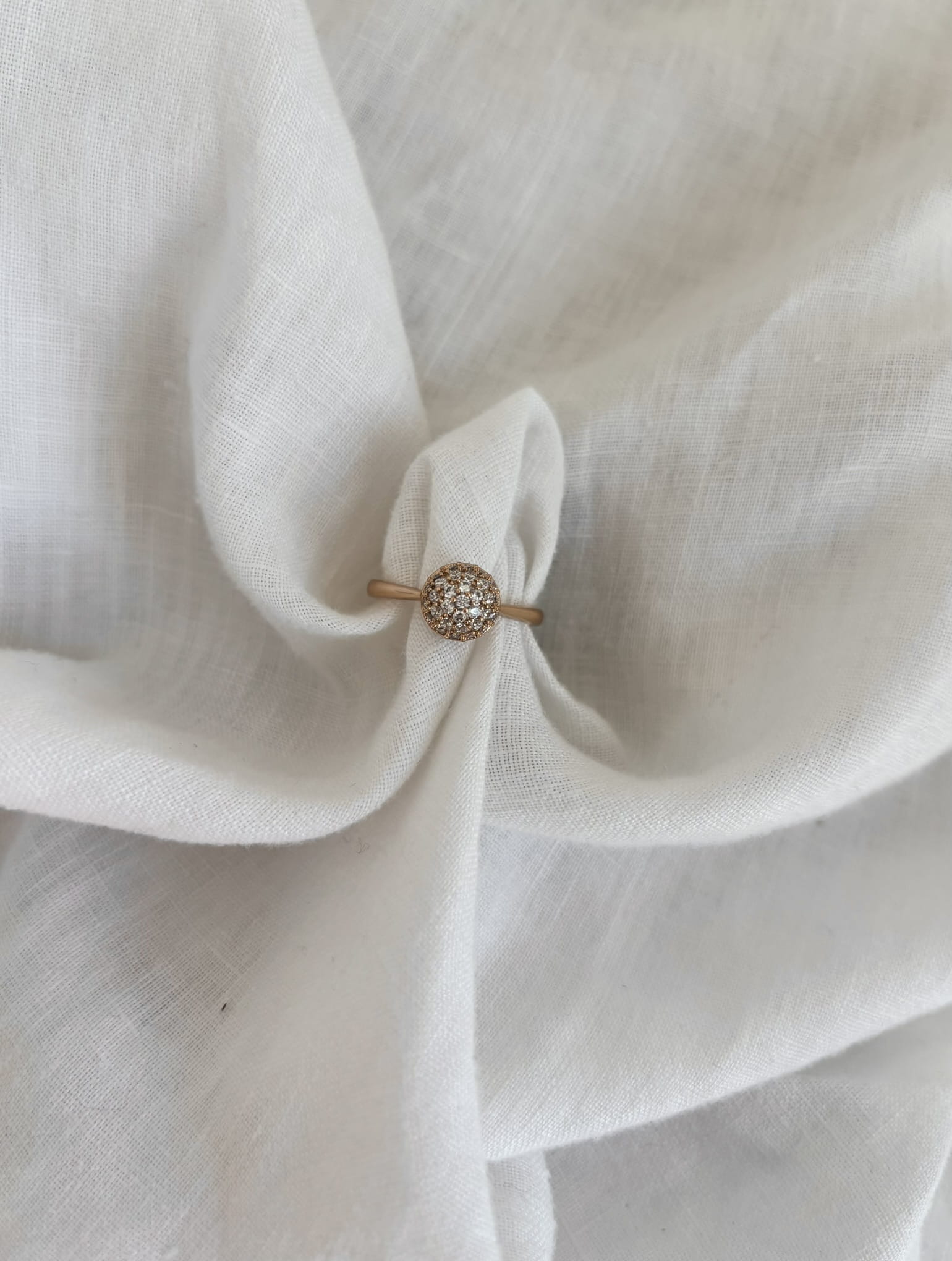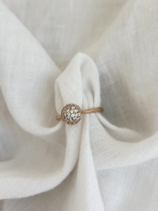 Pierścionek z ozdobnym oczkiem wykonany ze stali chirurgicznej w kolorze różowego złota.