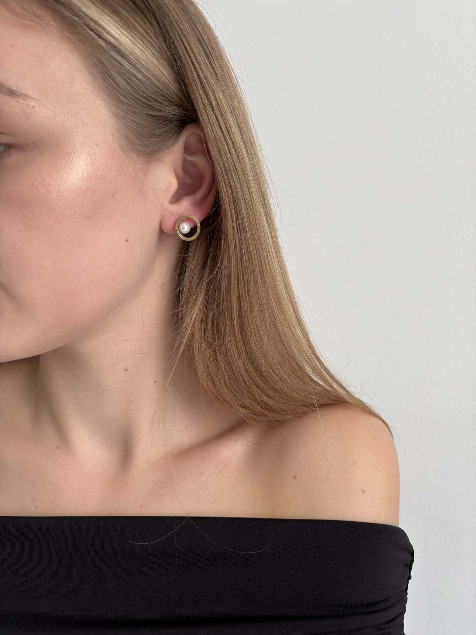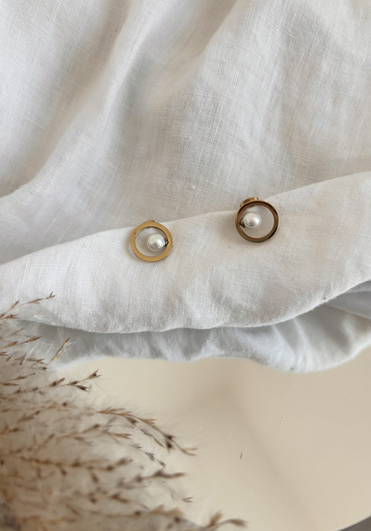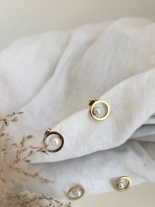 Złote kolczyki kółka z perełką wykonane ze stali chirurgicznej.