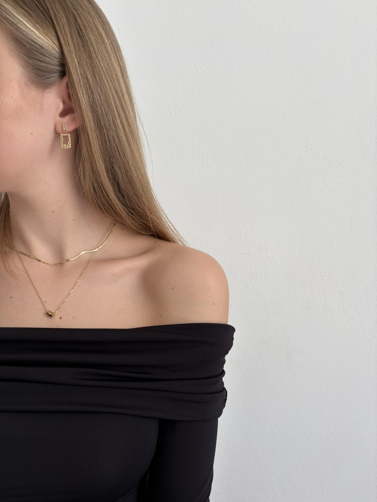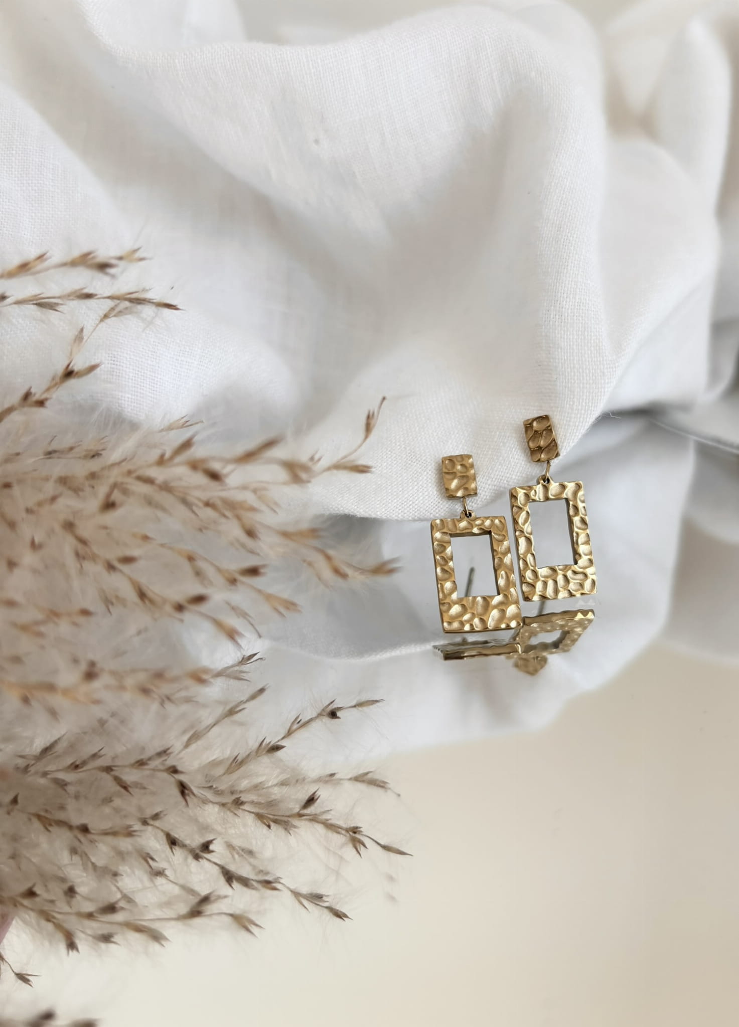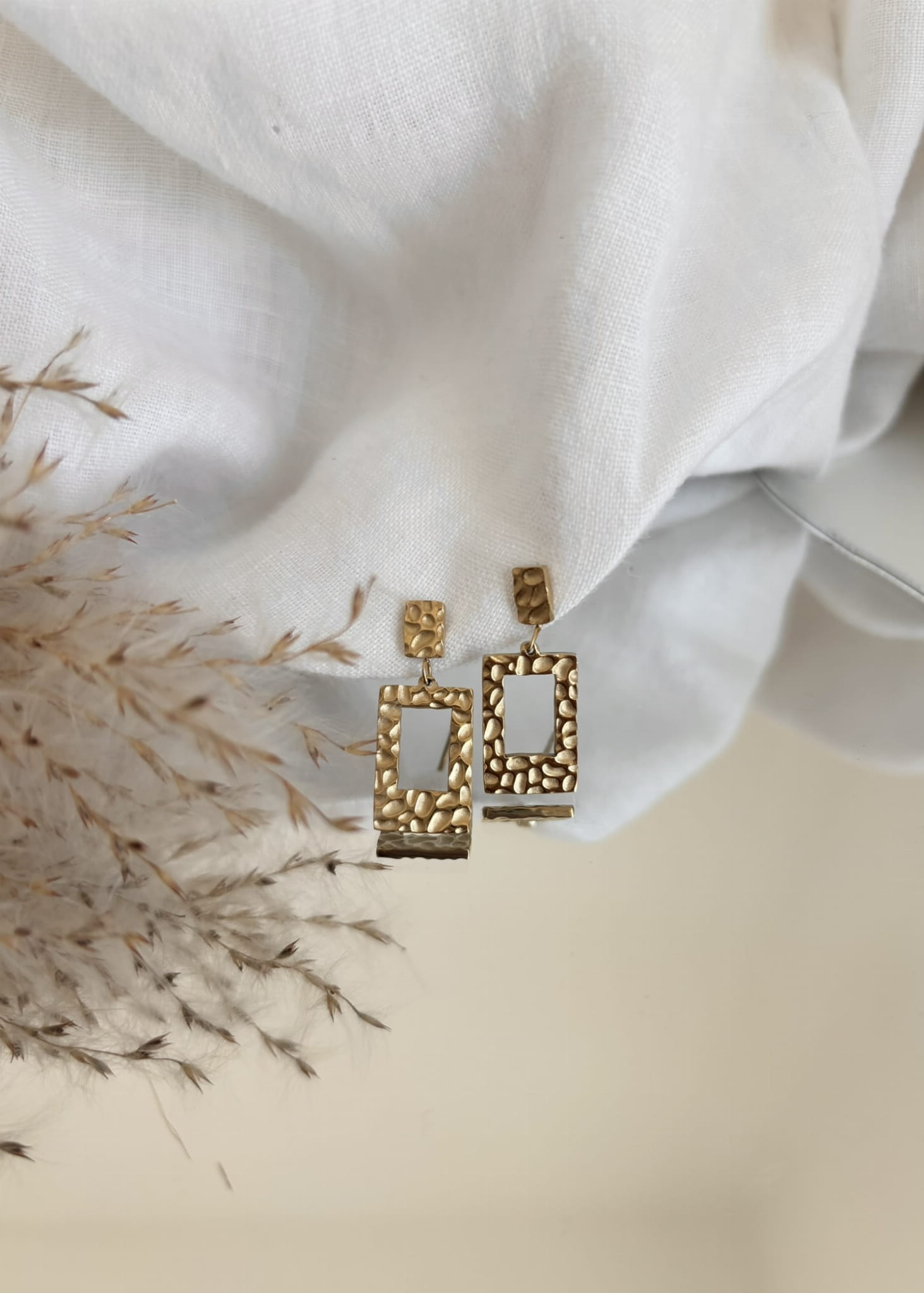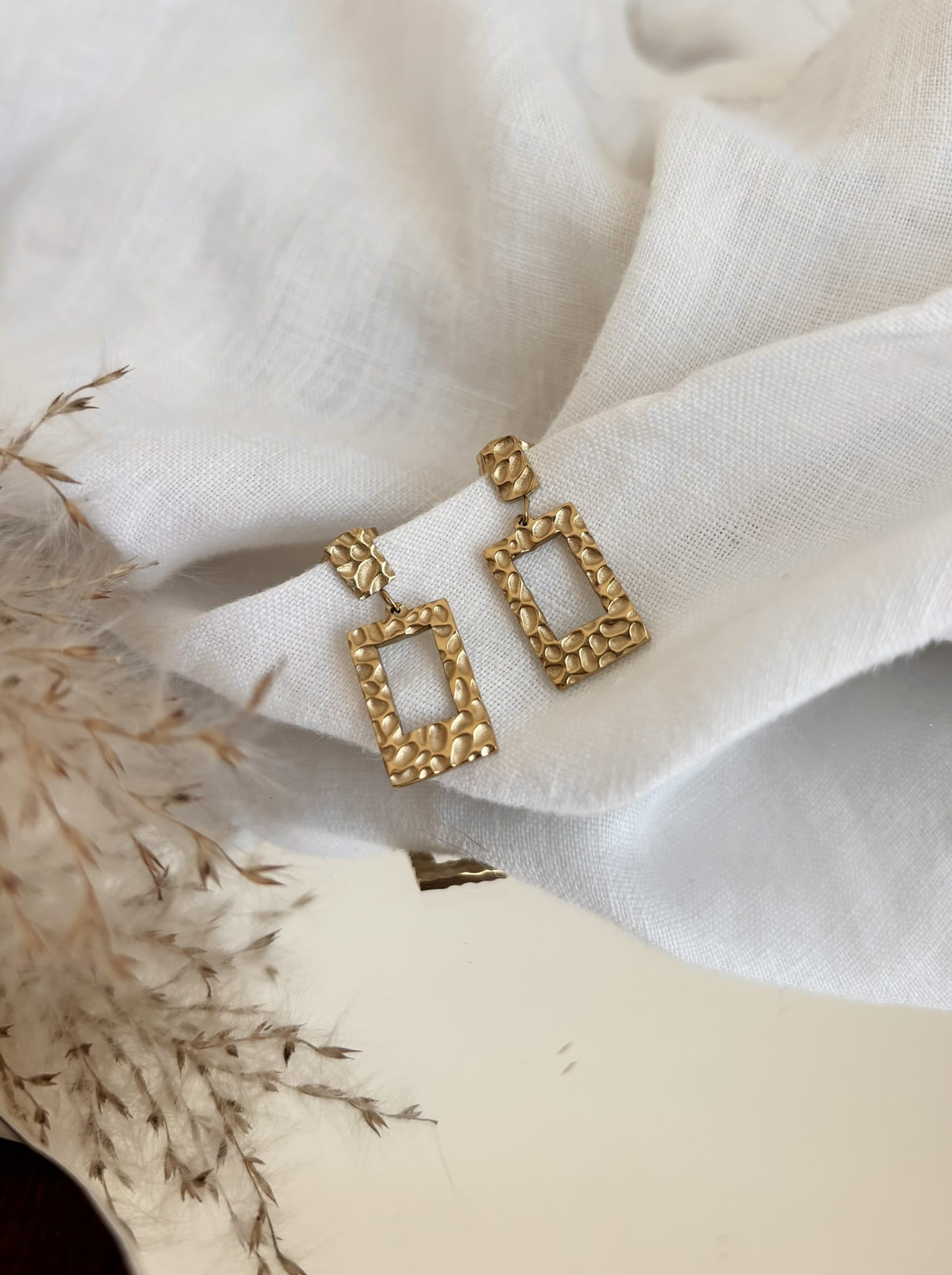 Złote kolczyki prostokątne wykonane ze stali chirurgicznej.