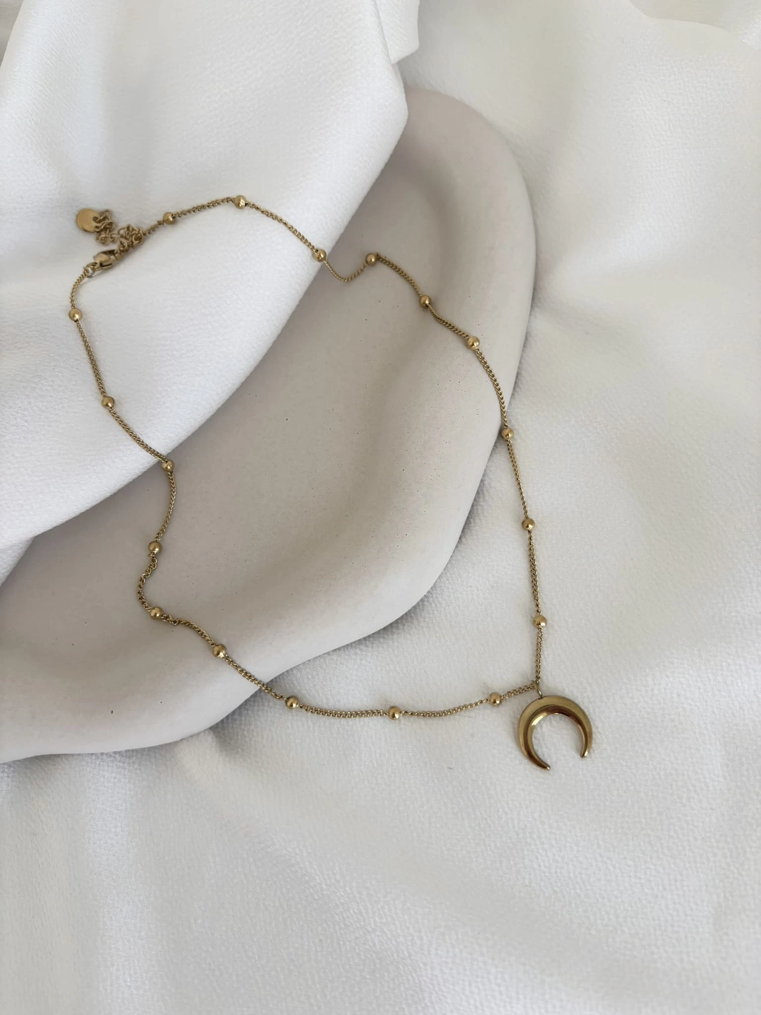 Złoty naszyjnik z księżycem wykonany ze stali chirurgicznej.