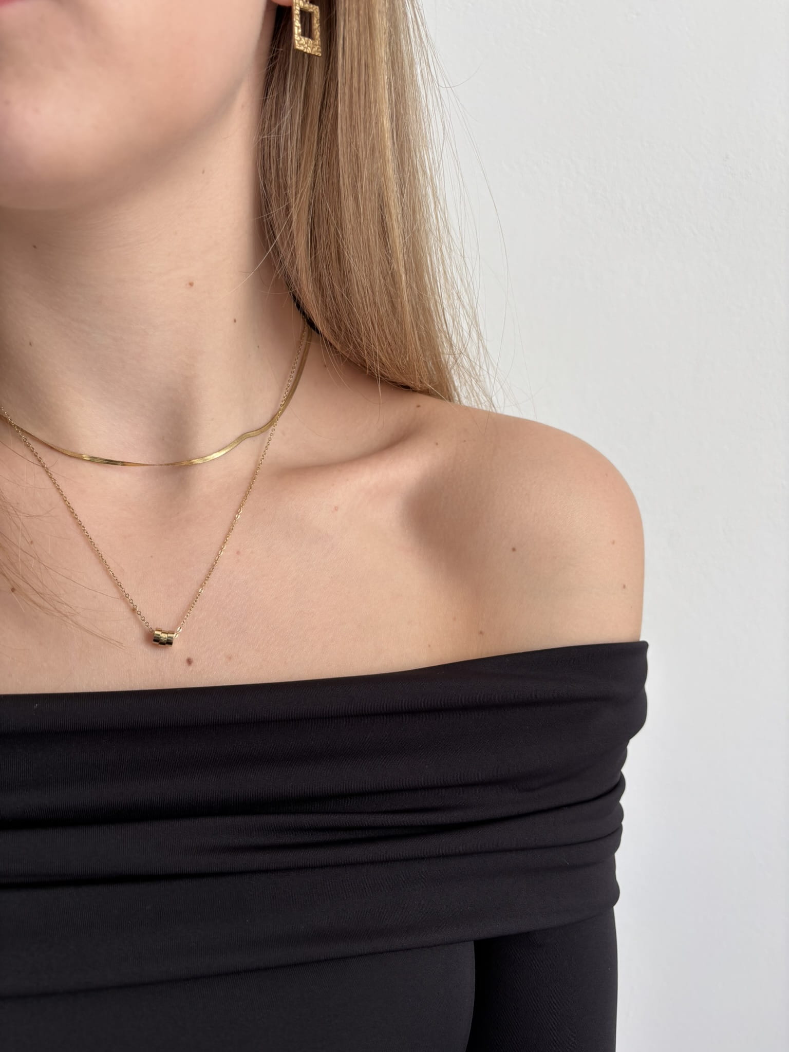 Złoty, podwójny naszyjnik wykonany ze stali chirurgicznej.