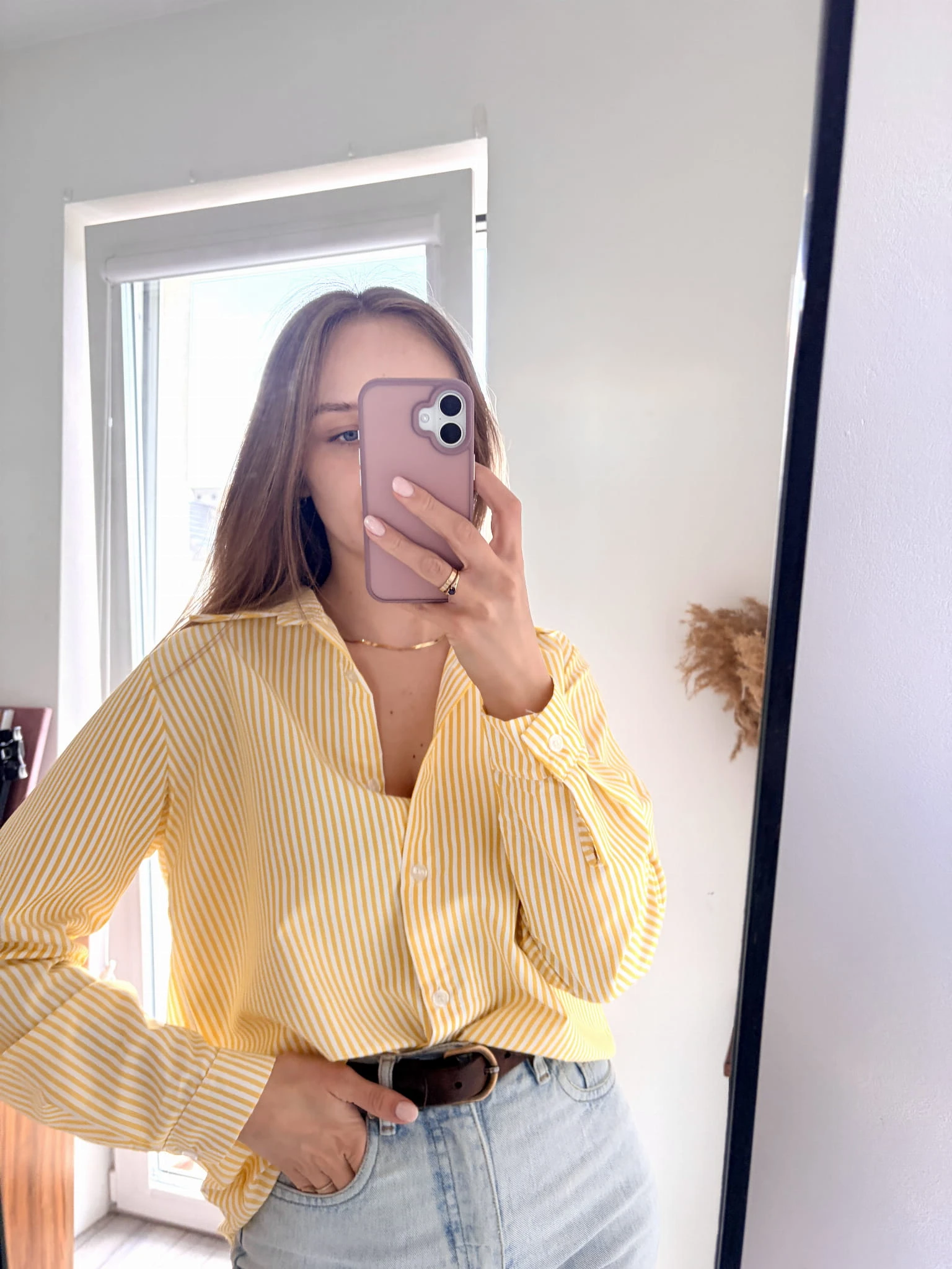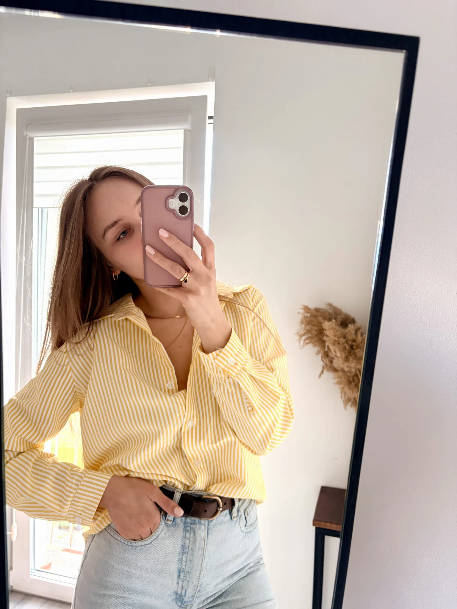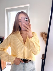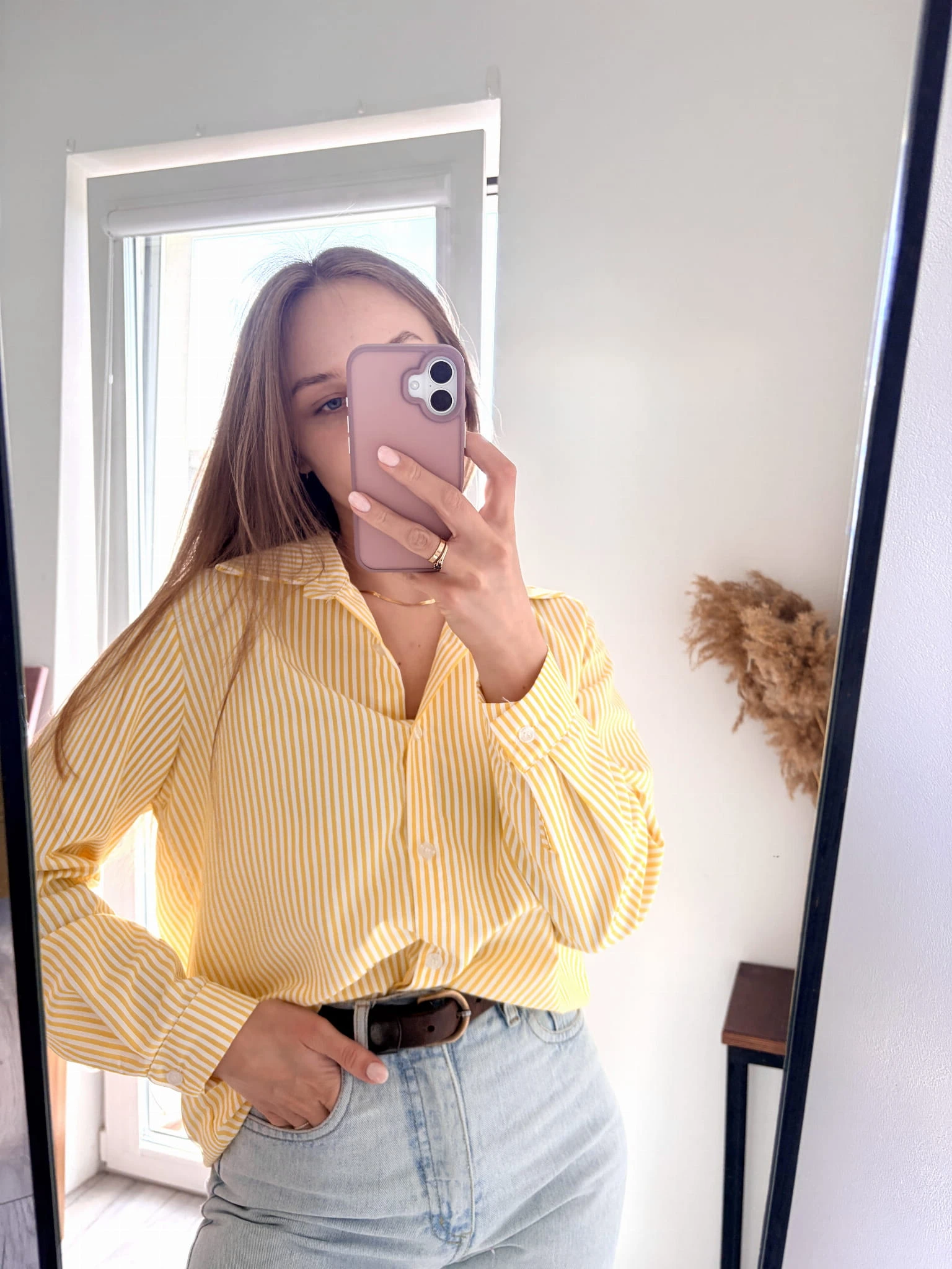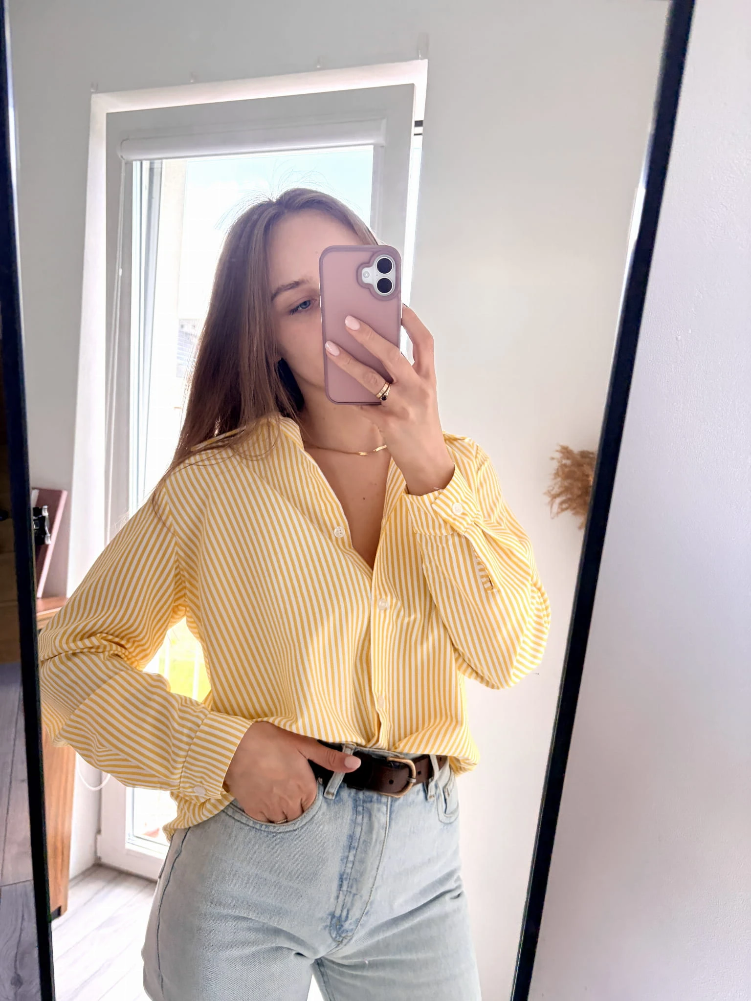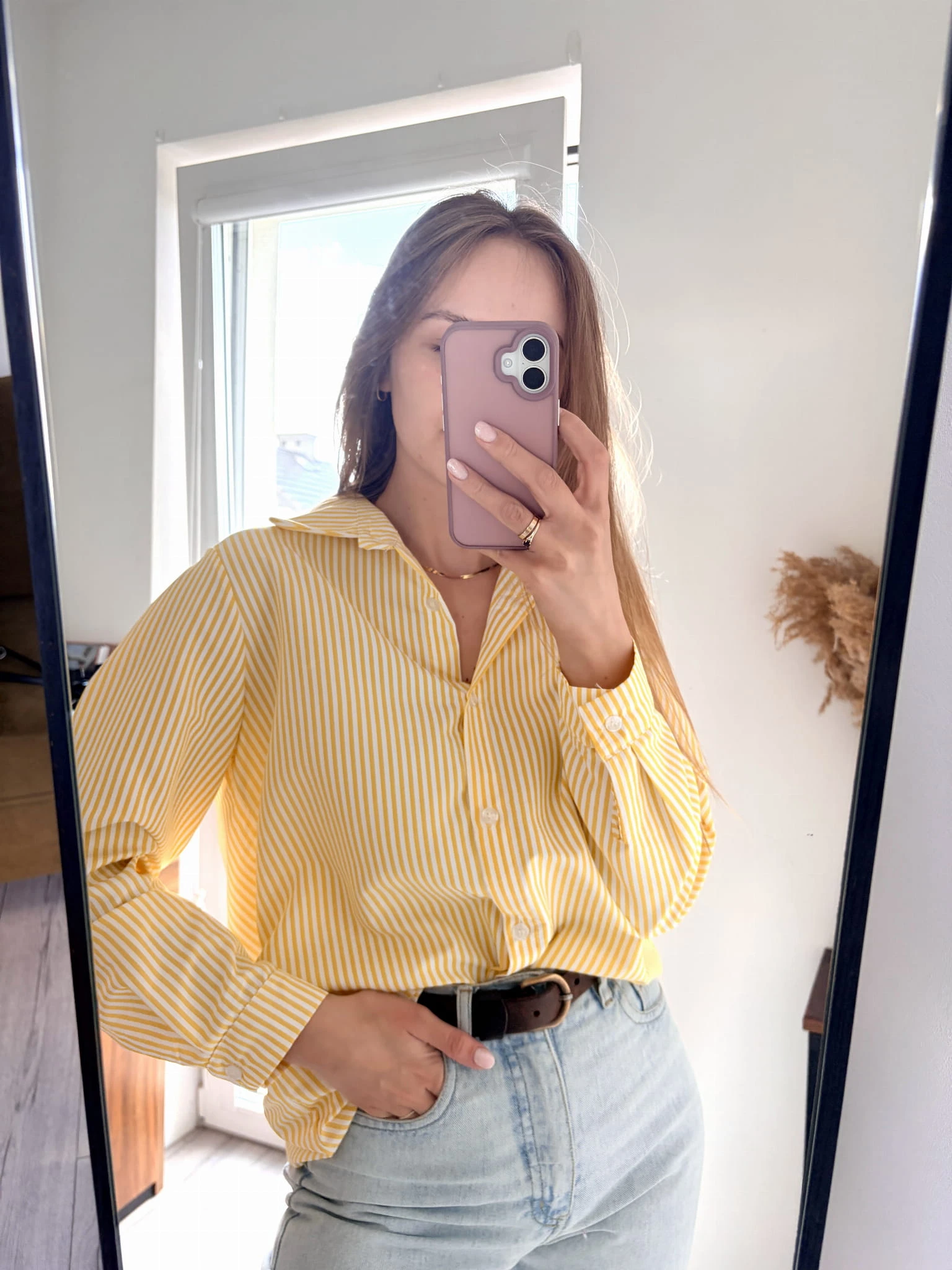 Żółta koszula letnia w paski, Maya Fashion, rozmiar uniwersalny