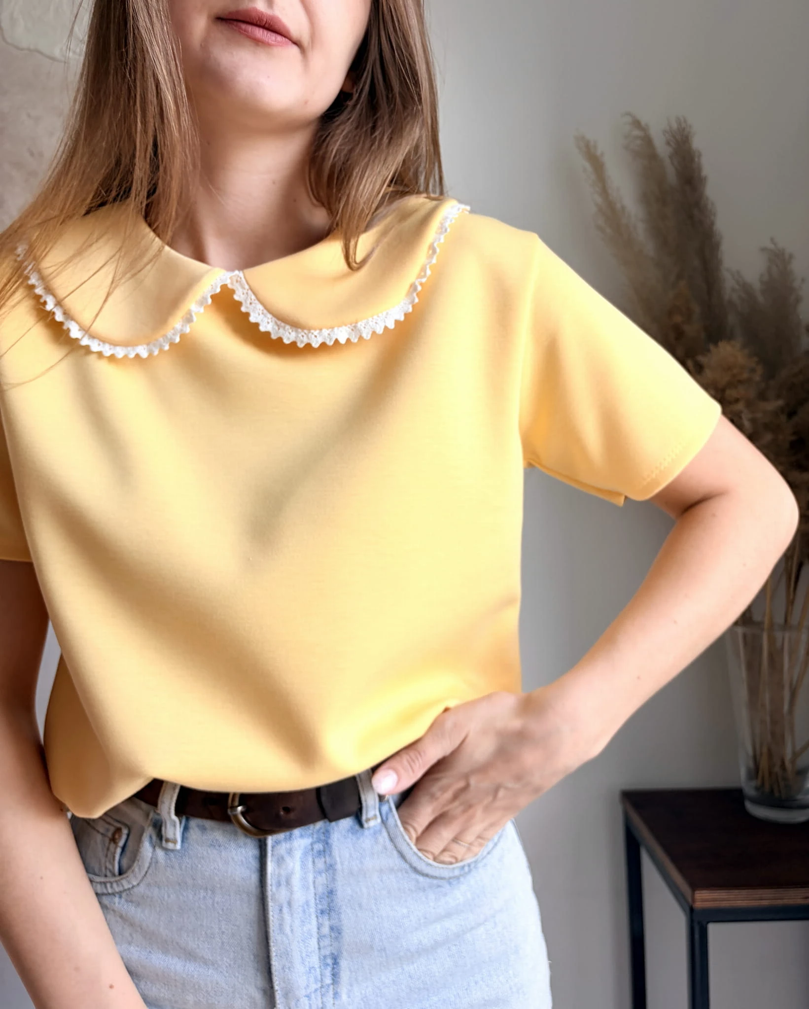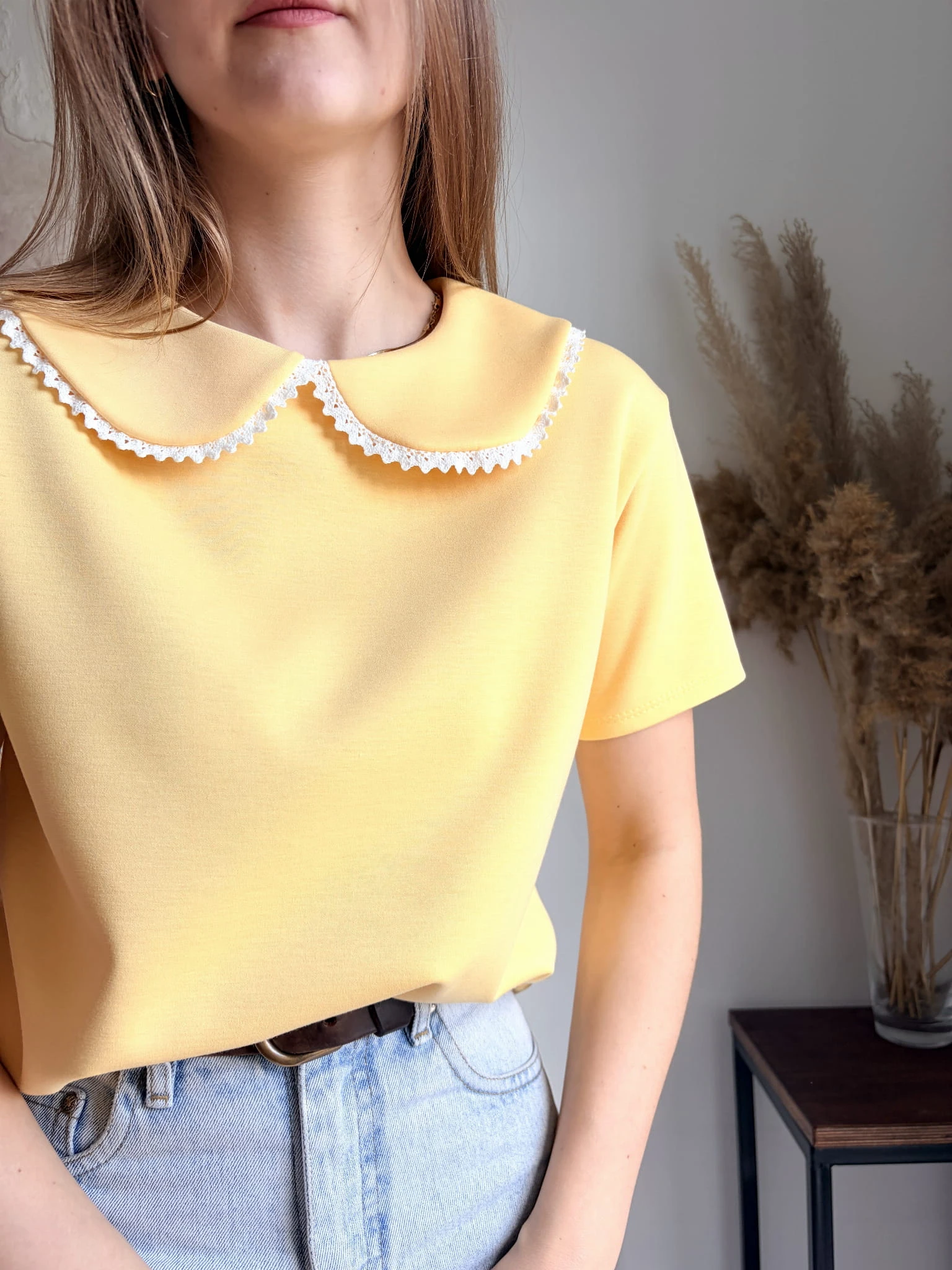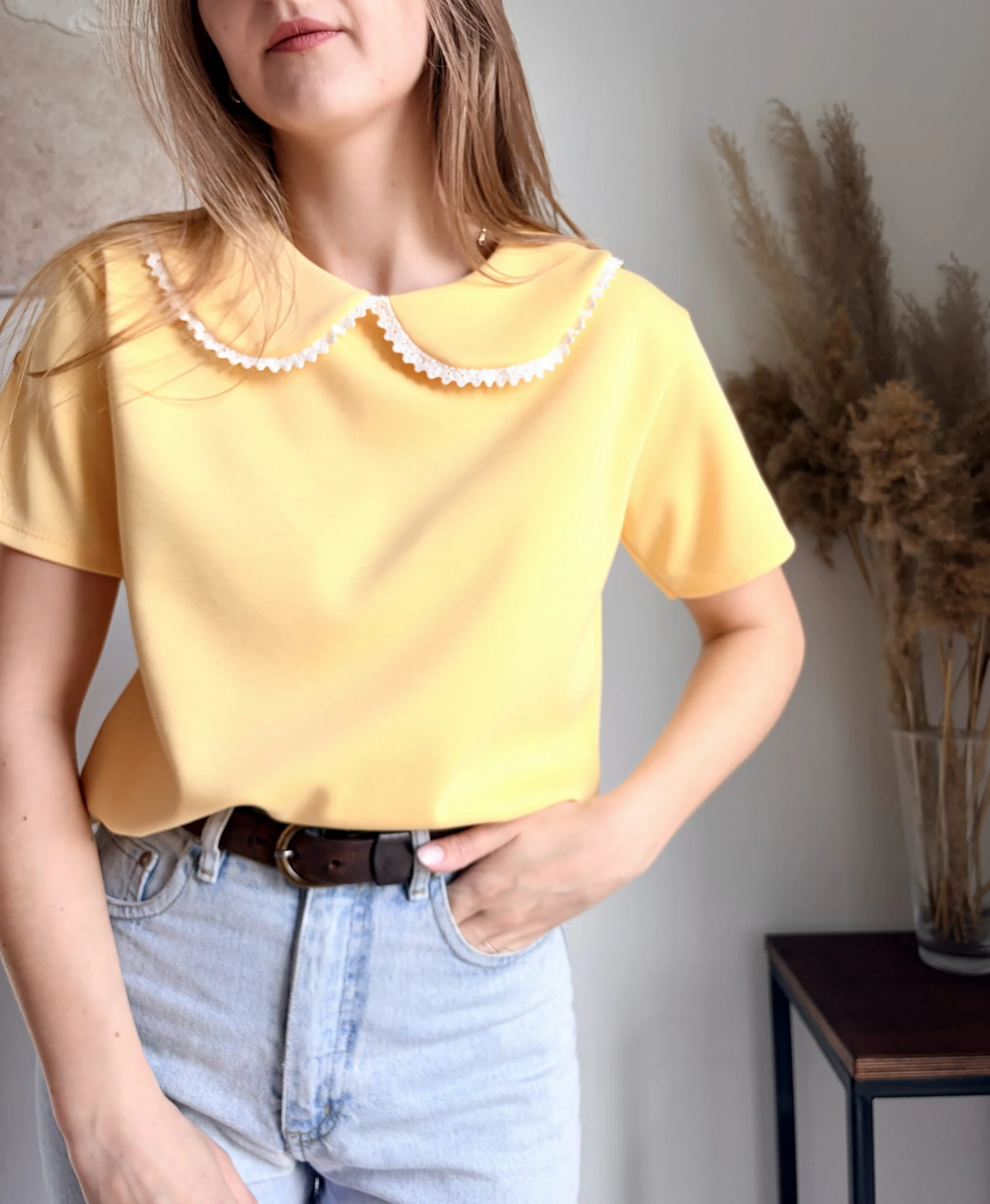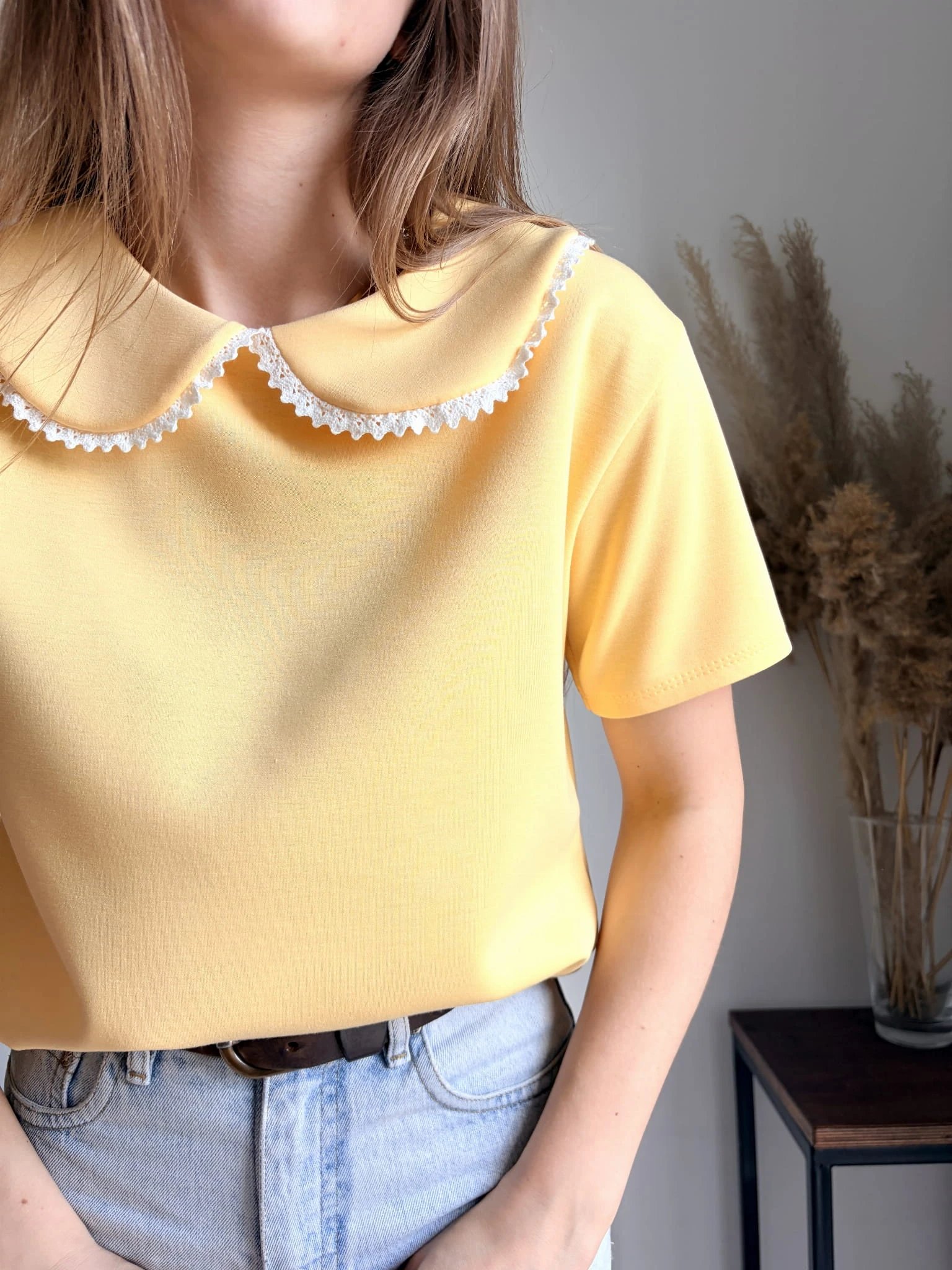 Żółty, elegancki T-shirt z kołnierzykiem, New Collection, rozmiar uniwersalny