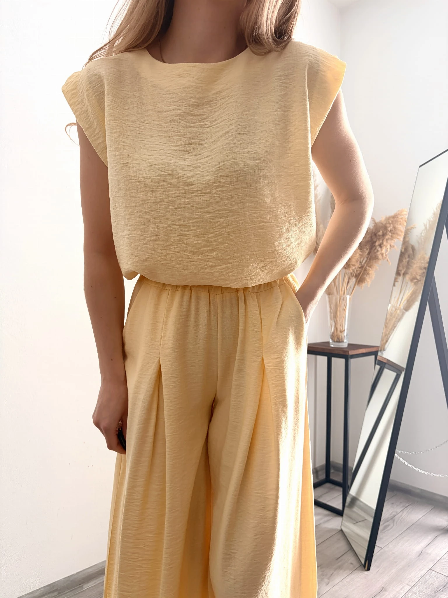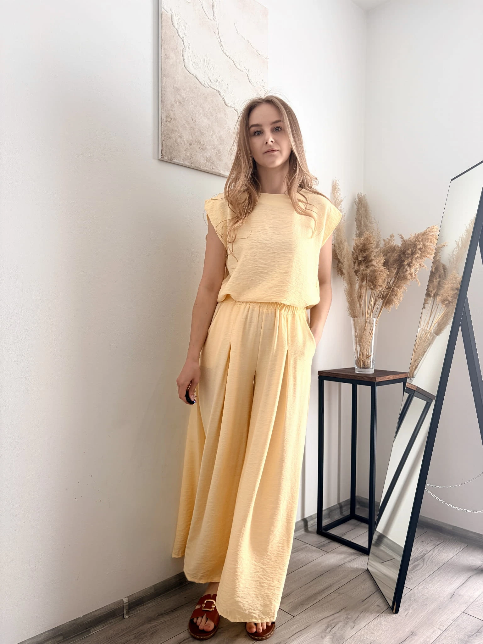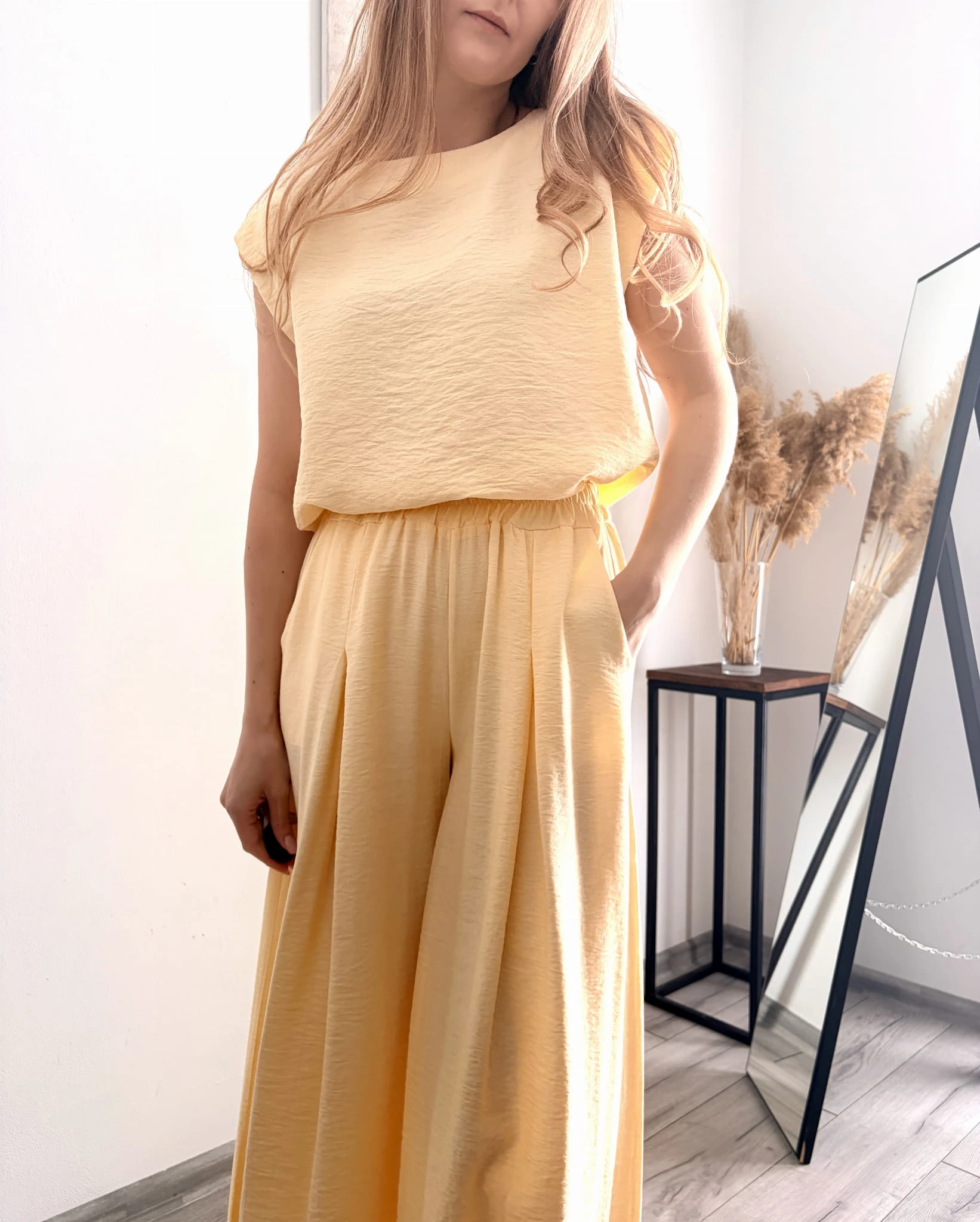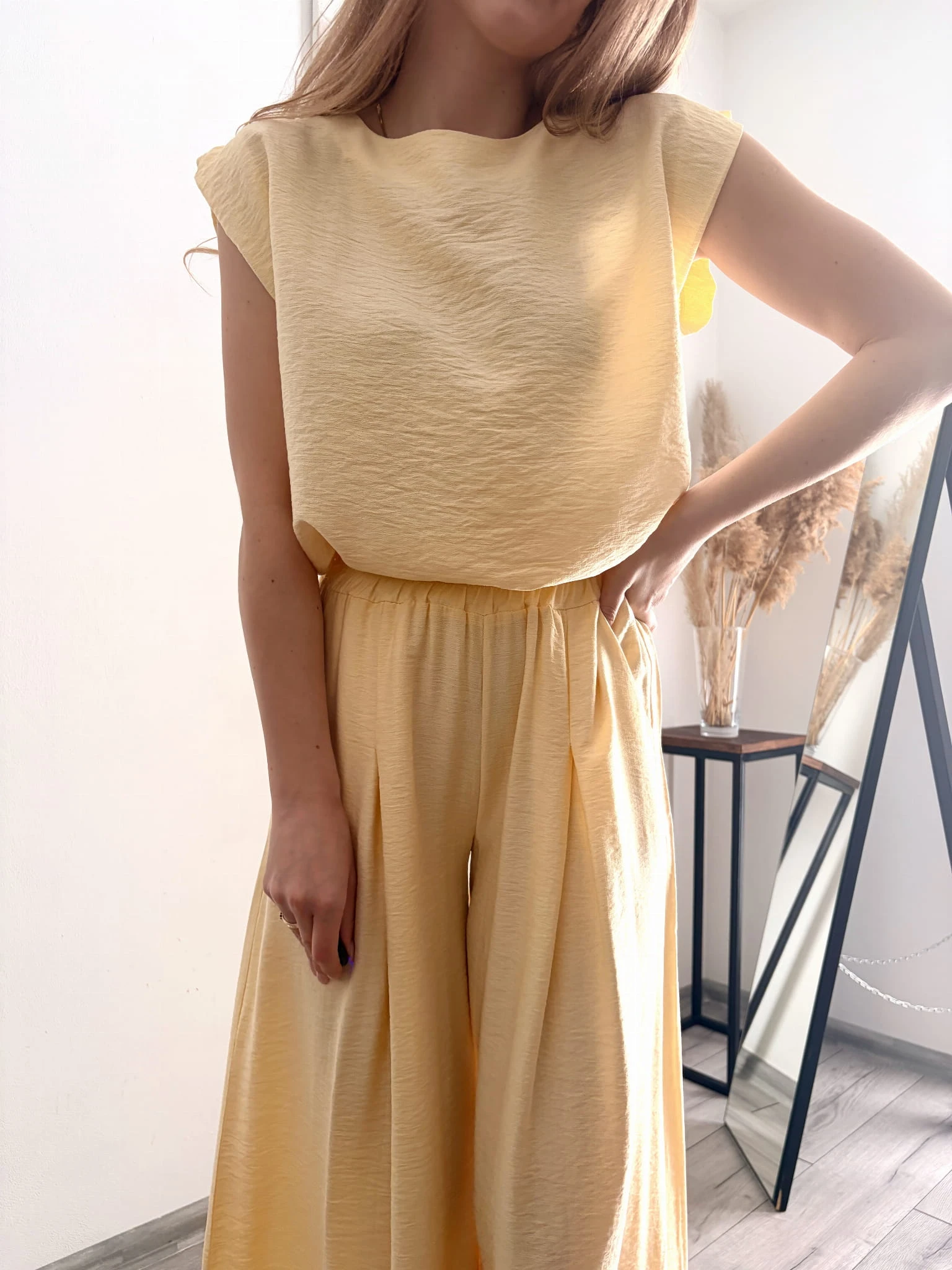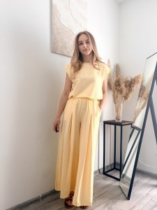 Żółty dwuczęściowy komplet z wiskozy, letni, rozmiar uniwersalny